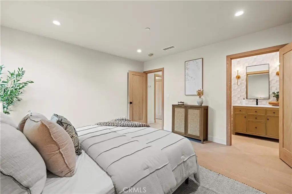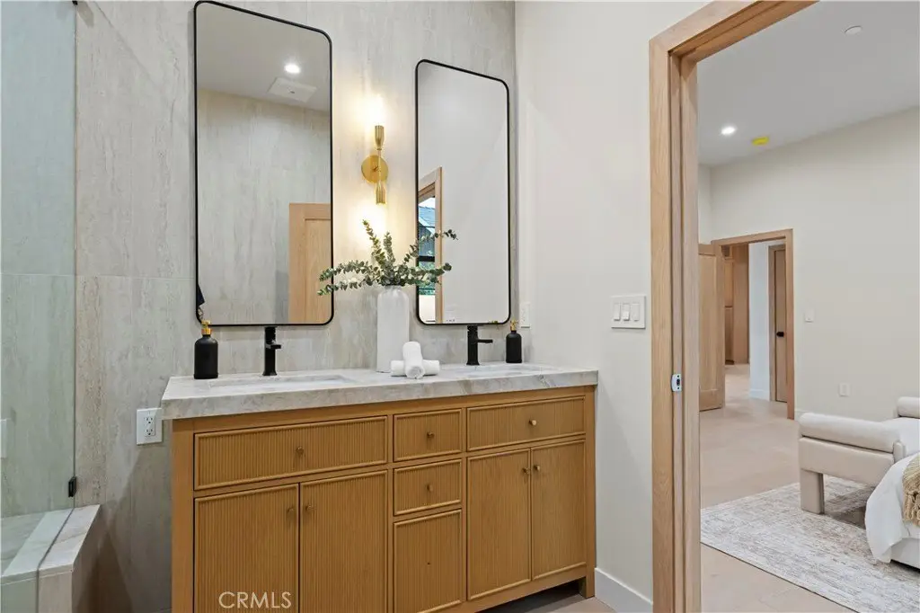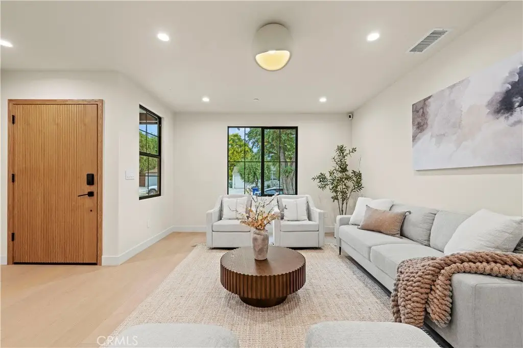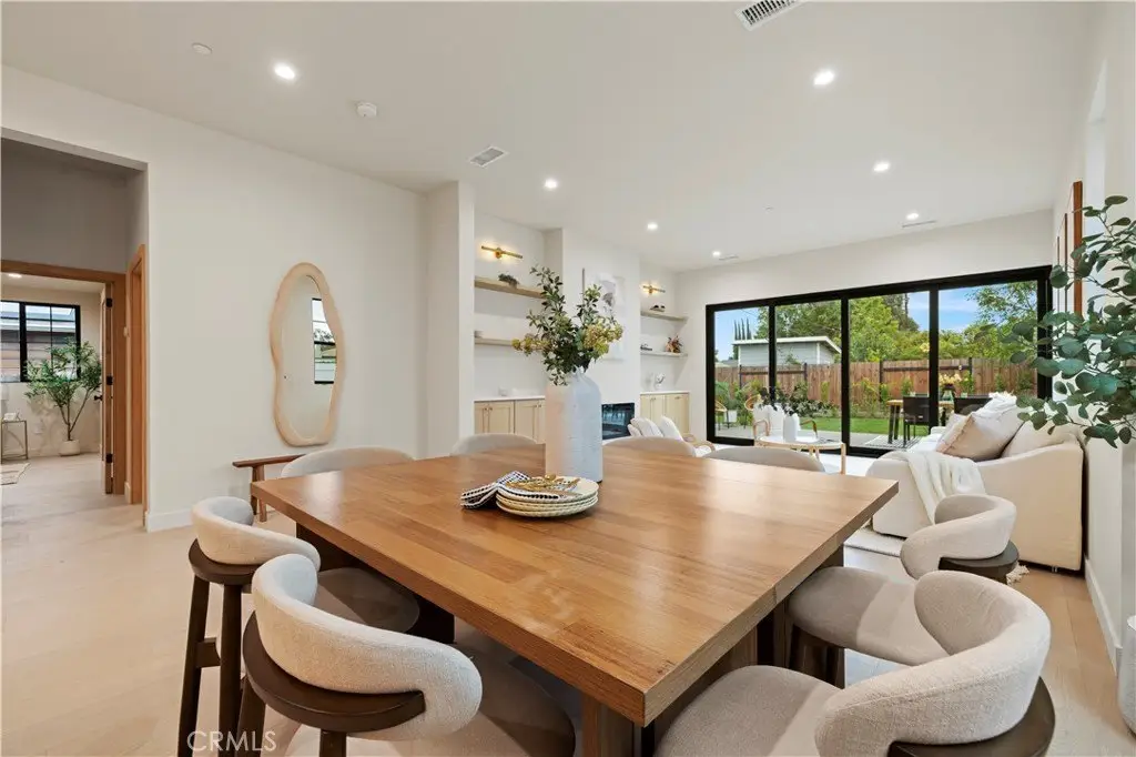 Welcome to this stunning custom-built home in Encino, perfectly situated on a generous lot! This organic modern 4-bedroom, 3.5-bath residence offers nearly 2,500 sq ft of beautifully designed living space with an open-concept indoor/outdoor layout—perfect for entertaining. From the moment you arrive, the wide frontage impresses with its expansive driveway and striking front entrance. Step inside and you’ll be greeted by a bright, airy floor plan that immediately sets the tone for sophisticated living. The formal living room at the front of the home is ideal for elegant gatherings, while the expansive great room offers the ultimate space for hosting luxurious indoor/outdoor events. The kitchen is a true showpiece, featuring floor-to-ceiling wood cabinetry, exquisite Taj Mahal quartzite countertops, and a full walk-in pantry. Adjacent to the kitchen, the sun-drenched dining area seamlessly connects to an oversized family room, where built-ins, custom shelving, and a cozy fireplace create the perfect evening retreat. Panoramic sliding doors open to a spacious deck and large backyard, creating effortless flow and extending your living space outdoors. The extra-large primary suite is a private sanctuary, complete with a walk-in closet and a luxurious spa-style bathroom featuring a double vanity and oversized shower. A secondary suite includes its own private bathroom, while two additional spacious bedrooms share a beautifully appointed bathroom at the front of the home. A separate laundry room and stylish powder room round out the interior amenities, offering total convenience and function. With thoughtful attention to detail and a well-planned layout, this home is designed to impress—featuring wood doors throughout, high ceilings, recessed and accent lighting inside and out, brand-new appliances, a finished garage, an oversized driveway, and lush landscaping. Plus, there’s plenty of space to add a sparkling pool - seller has a permit ready for you! This home truly has it all—style, space, and sophistication. ADT Alarm included with 1 year subscription. Welcome home!