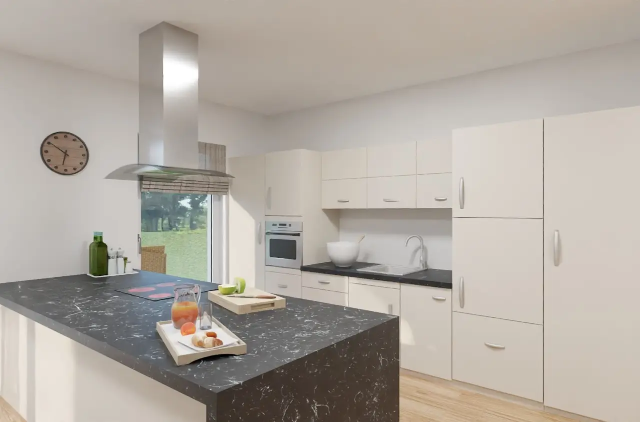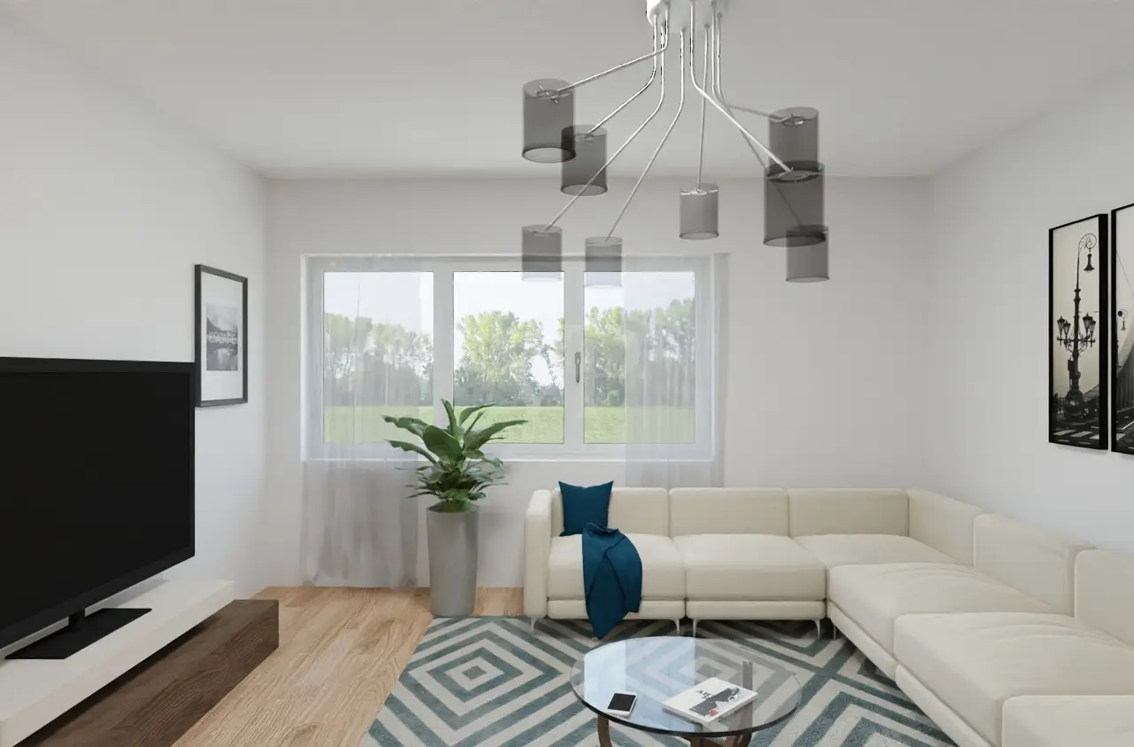 Spacious living and dining area with open kitchen
