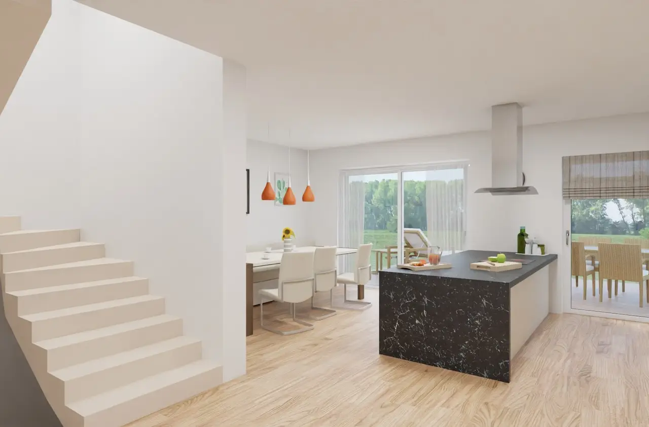 For sale is a modern semi-detached house in a new build, which will be ready for occupation in summer 2025 and still leaves design options open. This house offers you generous and well-thought-out living comfort on a living space of around 173 m². With a plot area of approx. 350 m², there is plenty of space for leisure activities and a garden area that can be designed. The property impresses with a total of seven spacious rooms, including a large living and dining area with preparation for a kitchen. An open kitchen provides the perfect setting for cooking evenings together. You will find a practical addition in the adjoining pantry, which offers additional storage space. The fittings in this property leave nothing to be desired. Underfloor heating provides pleasant warmth, while the energy-efficient air heat pump underlines the sustainable claim. The highlight of the house is the south-west-facing terrace, which is ideal for spending relaxing hours outdoors. A total of three outdoor parking spaces are available for your vehicles. A carport can be installed at the buyer's request and expense. During the construction of this property, you can still have a say according to your own wishes, otherwise attention was paid to a high quality of fittings, which is reflected in the choice of materials and workmanship. The first occupancy offers you the opportunity to move into an unused and modern living environment in which you can immediately start to realize your personal ideas and needs. In summary, this semi-detached house offers a well thought-out and high-quality living solution for families or couples who value a modern and future-oriented property. With completion scheduled for summer 2025, you can already start looking forward to your new home. The energy certificate was not yet available when the offer was made and will be submitted at a later date.