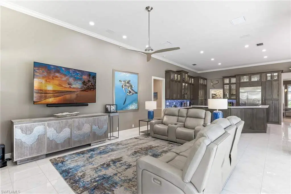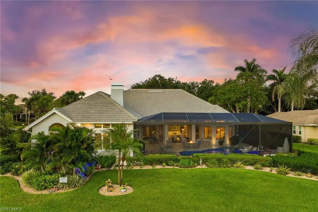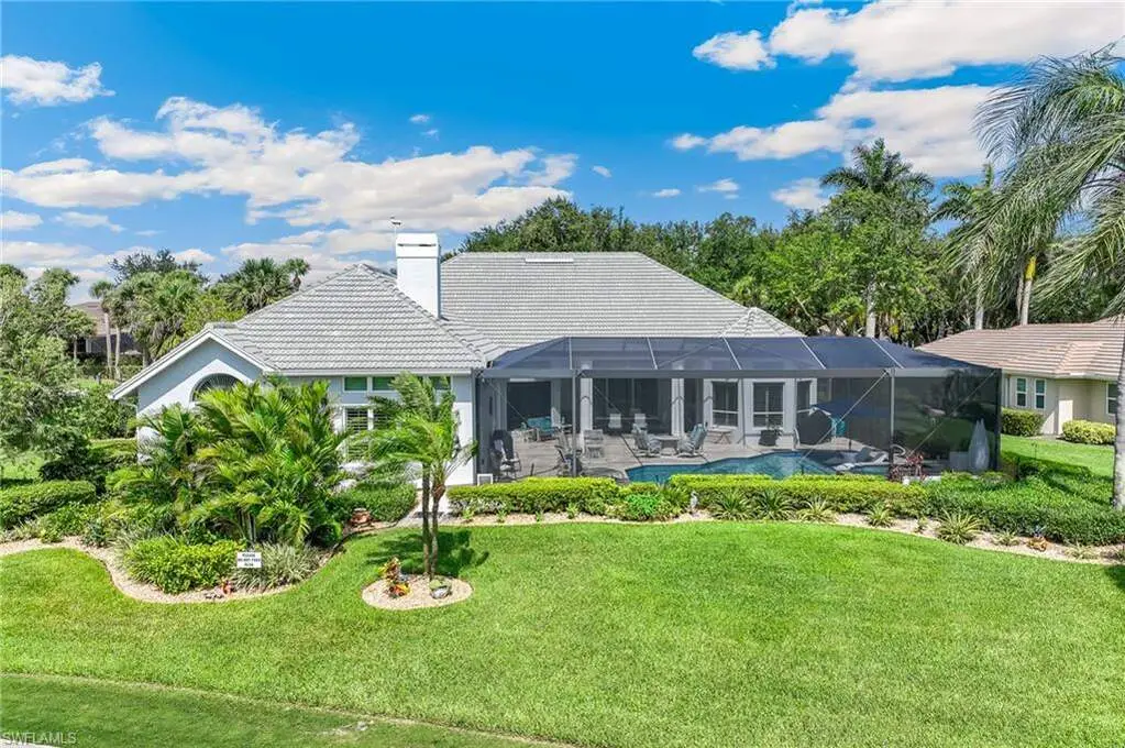 ESTATE HOME w/ IMMEDIATE GOLF AVAILABLE ON SIGNATURE HOLE IN THE VINES.....This furnished, contemporary floor plan includes over $500k in renovations and high-end interior design furnishings. Endless upgrades include new roof (2020); in-ground 500 gal propane tank (2021); new landscaping/lawn irrigation (2022); whole house generator (2023); new HVAC unit (2024); recently installed landscape stone + entire exterior of the home painted (2024). Beyond the etched glass double door, awaits a beautifully decorated living room accompanied by a sophisticated walk-in wet bar w/ wine cooler and stand alone ice maker; soaring 12-ft ceilings + an elegant dining area. Kitchen features stunning dark wood cabinetry; white quartz counters; stainless appliances and double oven. The entire left side of the home is dedicated to the massive primary suite w/ large sitting area and private ensuite. Entertain in style while guests spill out to the awe-inspiring outdoor living area w/ additional seating; completely renovated pool & spa w/ dramatic sun shelf; all new pool equipment; protective sun screen; fire-pit and pool cage with custom picture-view screen panels. In addition, a pet door is installed out of the lanai w/ an added invisible fence in the backyard. Estero Country Club social activities include a championship 18-hole golf course (golf membership optional); tennis; pickle ball; bocce; fitness center; plus casual and fine dining. Membership in The Estero Country Club is required at the Social Level. Full Golf and Sport Memberships are available with no wait list. Great location close to RSW Airport; shops and restaurants.....this home invites true resort-style living. **Be sure to click on 3D Virtual Tour Video to view this exclusive property.