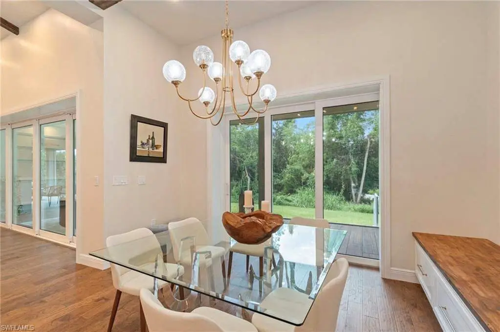 2024-BUILT ESTATE SET ON A PRIVATE 4-ACRE LOT with 200 feet of direct Gulf-access frontage along the scenic Estero River, this custom residence offers a rare opportunity to enjoy both privacy and waterfront living. Two private docks (one with a 10,000-lb covered stainless steel lift) provide effortless water access and beautiful views across to Koreshan State Park. Designed by renowned architect Dan Sater, this property combines timeless craftsmanship with thoughtful modern upgrades, creating the ideal family compound or sanctuary for those who value space, security, and nature. Spanning over 3,000 sq ft under air, this home features 4 bedrooms, 3.5 bathrooms, with soaring ceilings ranging from 11 to 16 feet. Offers wood-beamed living spaces, hardwood flooring throughout, hurricane-impact windows and doors, and energy-efficient solar panels. The gourmet kitchen showcases Cafe GE appliance package with three ovens, while the outdoor kitchen with built-in gas grill invites year-round entertaining. Step outside to more than 1,600 sq ft of porch and patio space, plenty of room to add a pool, a 950-sq-ft 3-car garage with soaring 30-foot ceilings, a gated entry, and a 200-foot private paver driveway. Conveniently located near Coconut Point, Publix, Waterside Shops, 5th Avenue, and RSW International Airport.