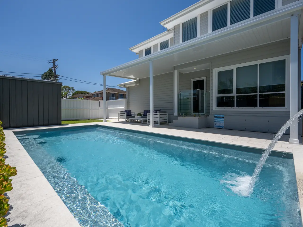 Front and centre on Ettalong Beach, this contemporary home is more than a match for its coveted waterfront setting. Built in 2018 with a high-quality design and a full suite of premium finishes, it presides over never-to-be-built out ocean views directly across from the beach. The home offers a polished, open-plan layout with three distinct living zones plus a home office/study; it's also a terrific entertainer with a deluxe island kitchen, sheltered terraces and a resort-style pool in back. Set on an easy-care corner block of 462 square meters, it's no more than five seconds from the sand and surf. • Dress-circle position; directly across from Ettalong Beach shoreline • Dual level design, open plan layout with three separate living areas • Fully gated with irrigated gardens, covered terraces on both sides • Sparkling pool with water feature and child-friendly lawns in back • Caesarstone/induction kitchen, central island plus walk-in pantry • Master suite with walk-in robe, additional bedrooms include built-ins • Home office/study, guest powder room, ducted air, plantation shutters • Solar panels, electric vehicle charger, garage with internal access