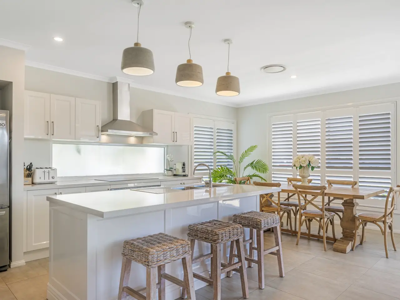 Sparkling resort-style pool Deluxe Caesarstone kitchen with island and walk-in pantry