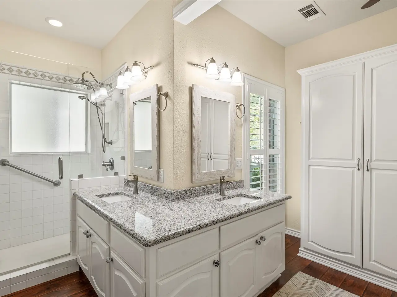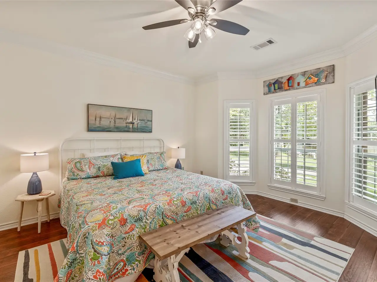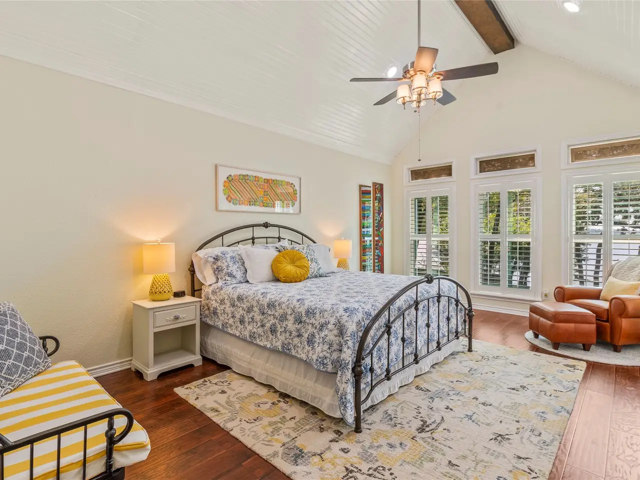 - Vaulted shiplap ceiling in main-floor waterside master suite