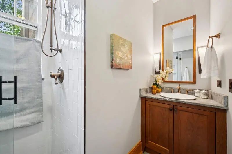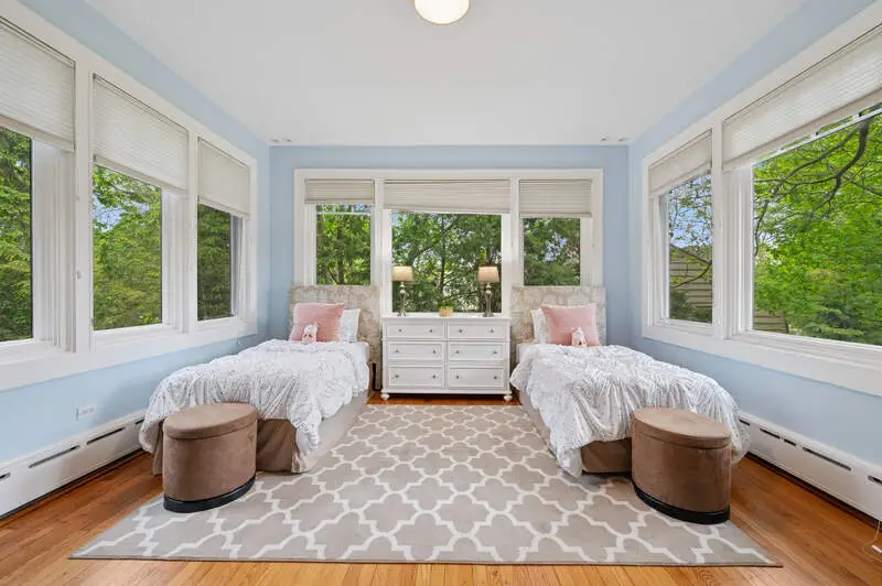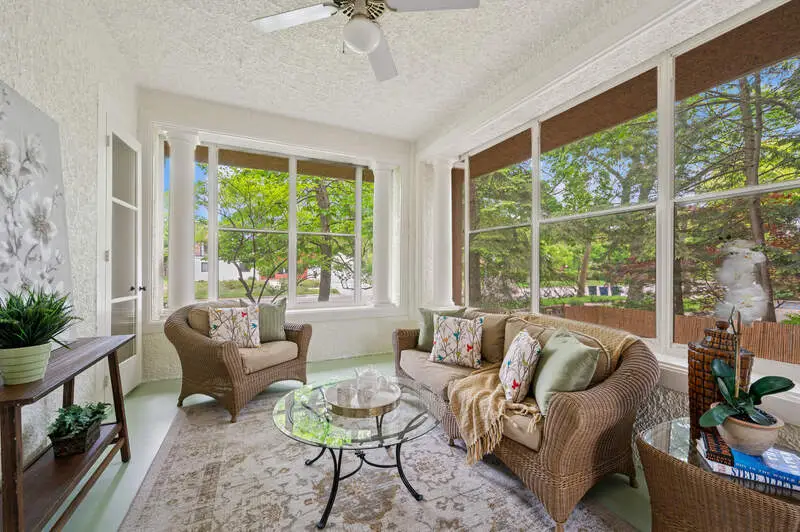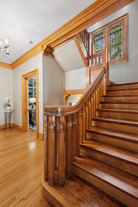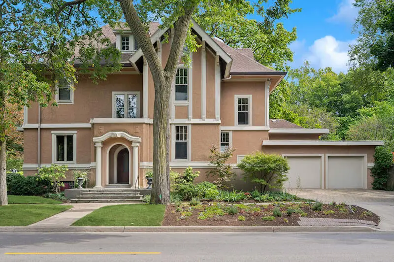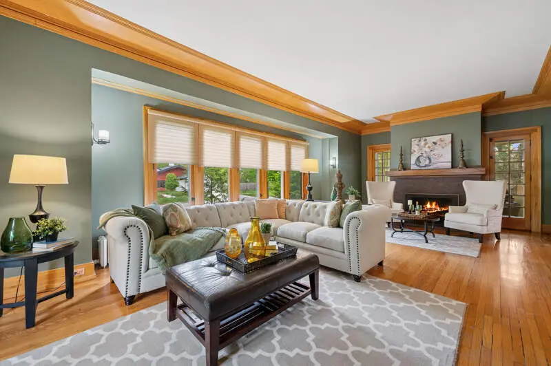 Don't miss this beauty! With 12' ceilings and beautiful original wood molding and hardwood floors throughout, this stunning home is move in ready. The layout of the house is such that rooms can be repurposed based on your lifestyle. The entry with its arched doorway steps leads up to a foyer with a stunning staircase. On one side you will find the immense living room complete with wood burning fireplace and windows on two sides. French doors flank the fireplace leading out to the sun porch. The dining room, which is large enough to hold a large dinner party, sits outside the homes pretty kitchen and flows into a generous sitting room - perfect for a casual conversation after dining. The three season sunroom is off the sitting area and overlooks a small courtyard. The kitchen overlooks the bluestone patio and has beautiful wood cabinetry and high-end appliances. Between the kitchen and garage is a fantastic mudroom convenient for unloading daily purchases. Upstairs you will be overwhelmed by the large and sunny primary bedroom complete with another wood burning fireplace, beautiful window line and walk in closet. The primary en suite bath features a separate shower and whirlpool bath and an additional custom closet. All three remaining bedrooms on the second floor have plenty of closet space and one includes a tandem sleeping porch. The third-floor family room is spacious with plenty of light and tree top views. Off the family room is a full kitchenette to save time from heading downstairs for refreshments and snacks. There is also an additional bedroom and full bath on this level. Outdoors enjoy the huge patio along with a large lawn bordered by gorgeous perennials and mature trees. Convenient parking with an attached two car garage and exterior parking spaces. Walk to downtown, the lake, trains, shops and restaurants. This home has everything one needs to call it their own!