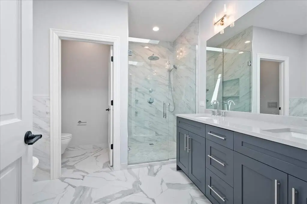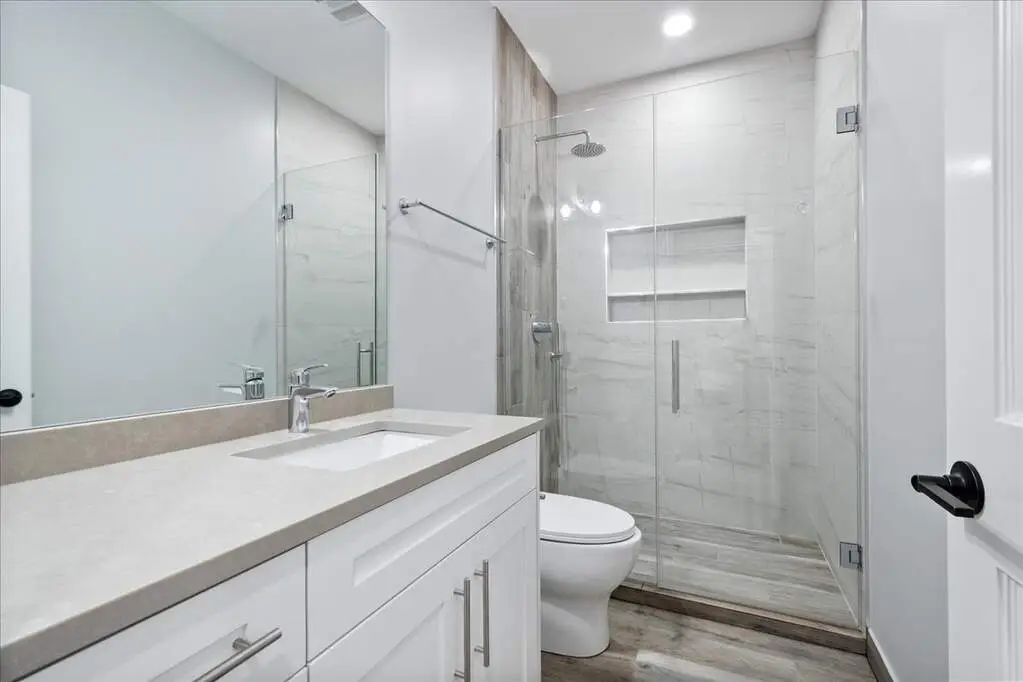 Spacious glass-enclosed shower