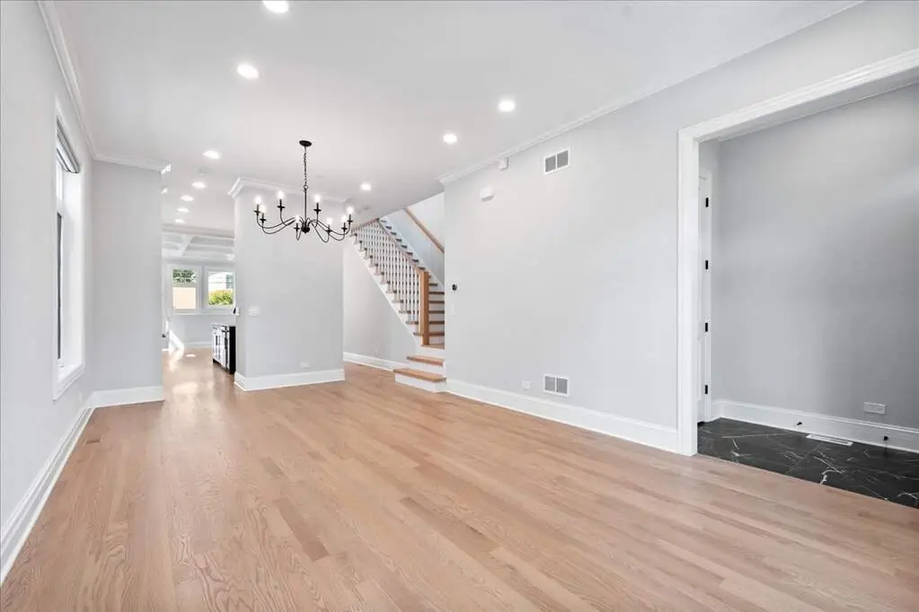 Stunning Newer Construction in Prime Evanston Location Welcome to 2012 Maple, a beautifully crafted single-family home that blends modern design with timeless details. The sharp exterior features board-and-batten siding, black-framed windows, and a charming covered front porch that sets the tone for what's inside. Step into a sun-drenched, open-concept living and dining area-perfect for both everyday living and entertaining. The chef's kitchen is a true showstopper, complete with professional-grade appliances, a large center island, butler's pantry, walk-in pantry, custom white shaker cabinetry with under-cabinet lighting, a herringbone tile backsplash, and sleek quartz countertops. The adjoining family room impresses with a coffered ceiling, custom millwork accent wall, and abundant natural light. A rear mudroom with built-in cubbies keeps everything organized. The second floor is home to a serene primary suite with designer accent wall, bedside sconces, two walk-in closets, and a spa-like bath featuring dual vanities, a spacious glass-enclosed shower, and a freestanding soaking tub. Two additional bedrooms, a full hall bath, and laundry complete this level. The finished lower level offers incredible additional living space with a large recreation room, full wet bar, spacious bedroom, full bath, and convenient laundry room. A two-car parking pad adds to the convenience. All this in an unbeatable location-just steps from the Purple Line, downtown Evanston, shops, groceries, restaurants, the lakefront, and more. 2012 Maple is the perfect blend of style, comfort, and location-ready to welcome you home.