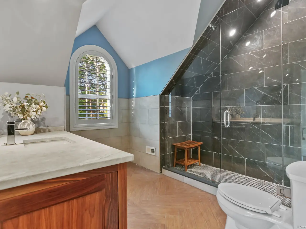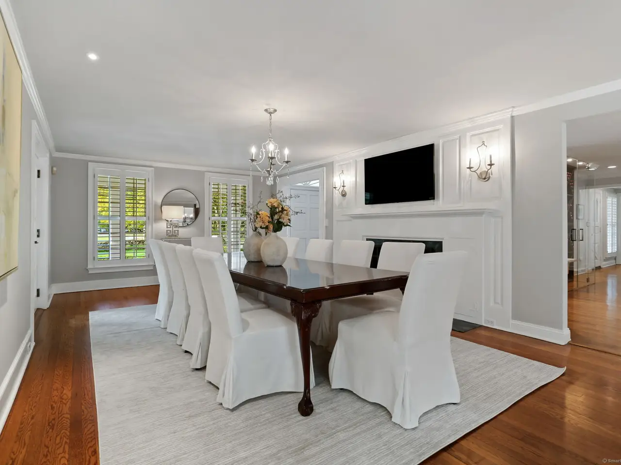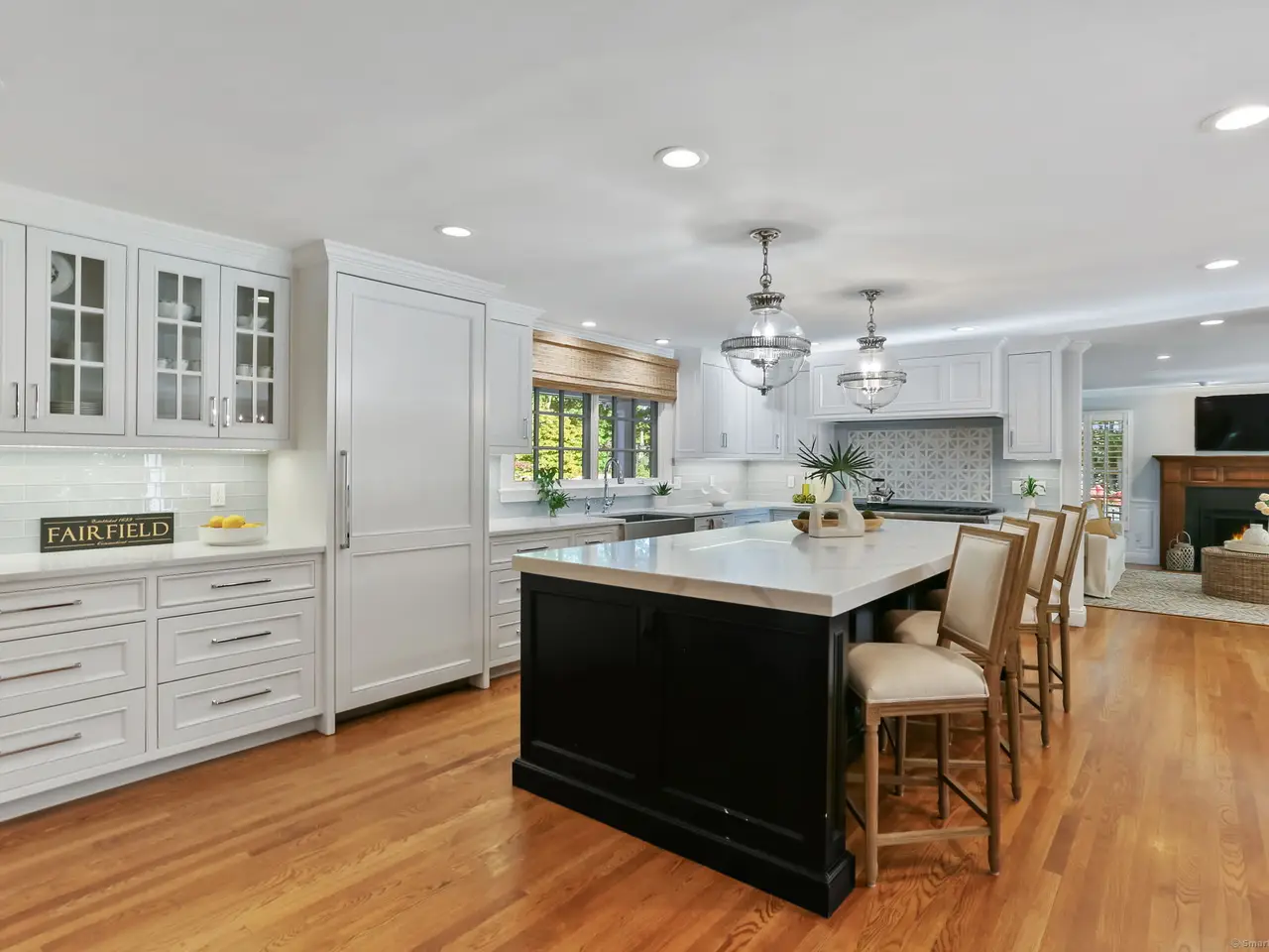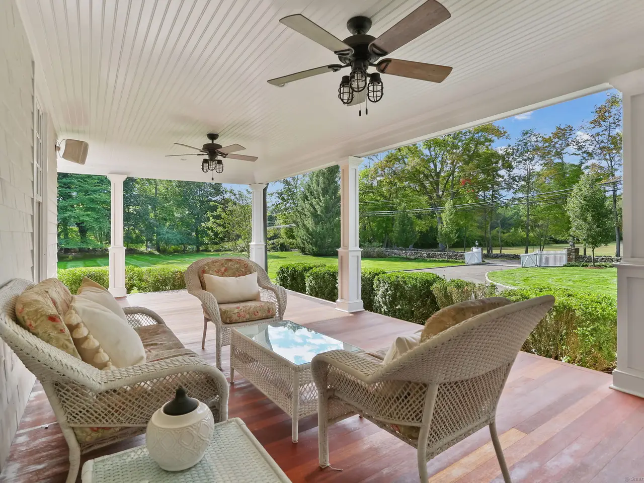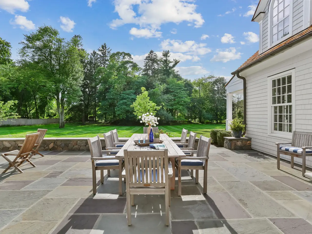 Welcome to 99 Old Academy Road, a distinguished Cape originally reimagined by local architect Richard Swann and thoughtfully expanded in 2019 by Alex Esposito. Arched-top dormers elevate the architecture, blending tradition with luxury. This residence offers 6 bedrooms plus a private two-level guest suite, 7 full / 3 half baths, all set on 2+ acres in lower Greenfield Hill. At the heart of the home, the kitchen offers an open layout with a spacious dining area, custom cabinetry, a floor-to-ceiling glass wine display, and walk-in pantry. The kitchen flows seamlessly onto a bluestone patio with a double-sided fireplace, perfect for indoor-outdoor living. The kitchen leads to the lower level, featuring a stone bar in the game room, a 10-seat cinema, and ample storage. The family room, with its built-ins, poolside views, and gas fireplace, offers an inviting year-round retreat, the main level also includes a private office. Upstairs, every bedroom is paired with its own private bath, each with a unique design. The custom mahogany library serves as a passage to the East Wing, where the main level offers a gym, poolside lounge, & outdoor shower, while the upper-level features three additional en-suite bedrooms and a second laundry room. Outdoors, enjoy wraparound mahogany decks, multiple bluestone patios, a heated pool, volleyball court, pergola gardens, and fruit trees. 99 Old Academy Road isn't just a home, it's a lifestyle of elegance, comfort, and unforgettable spaces.