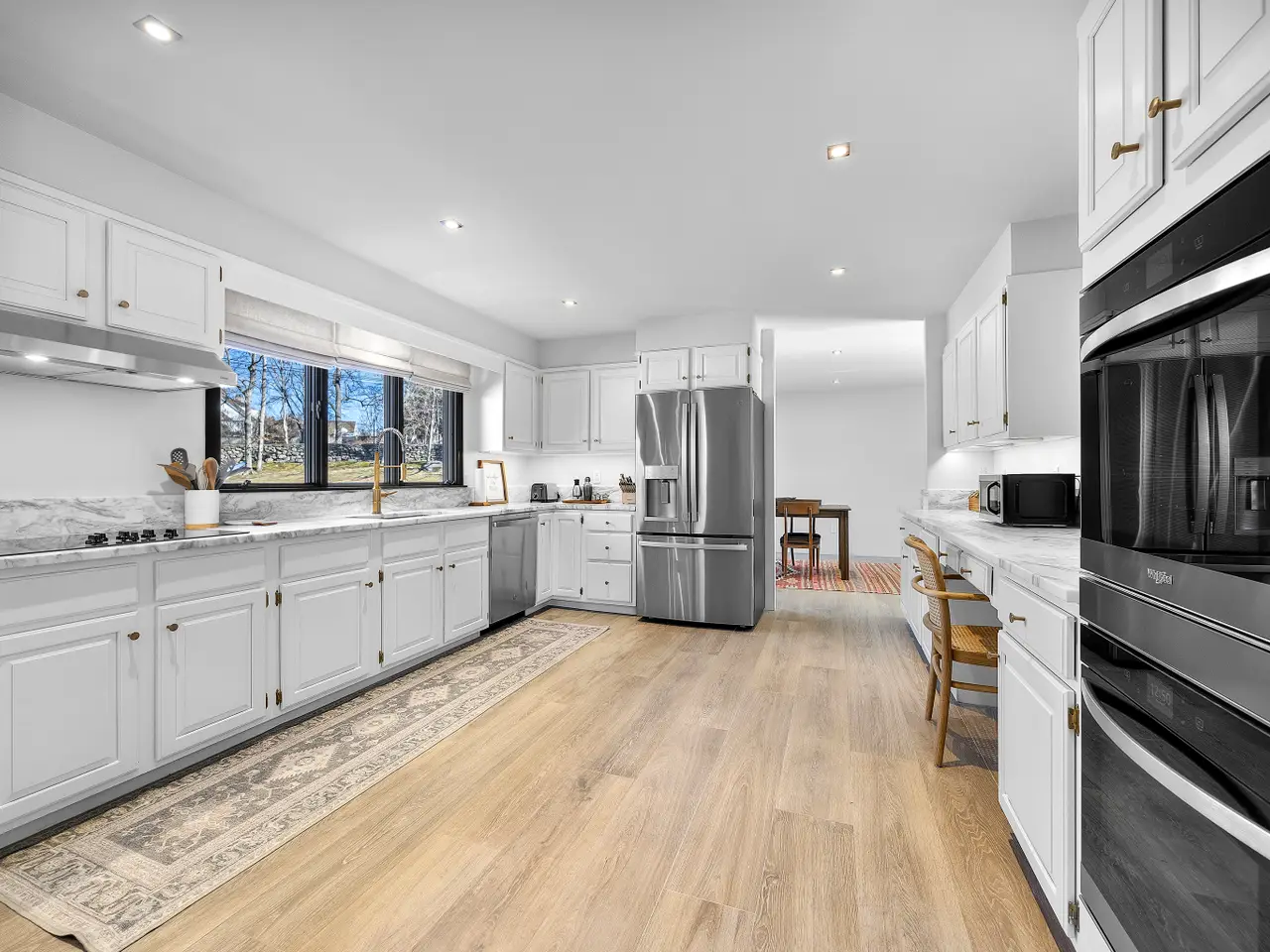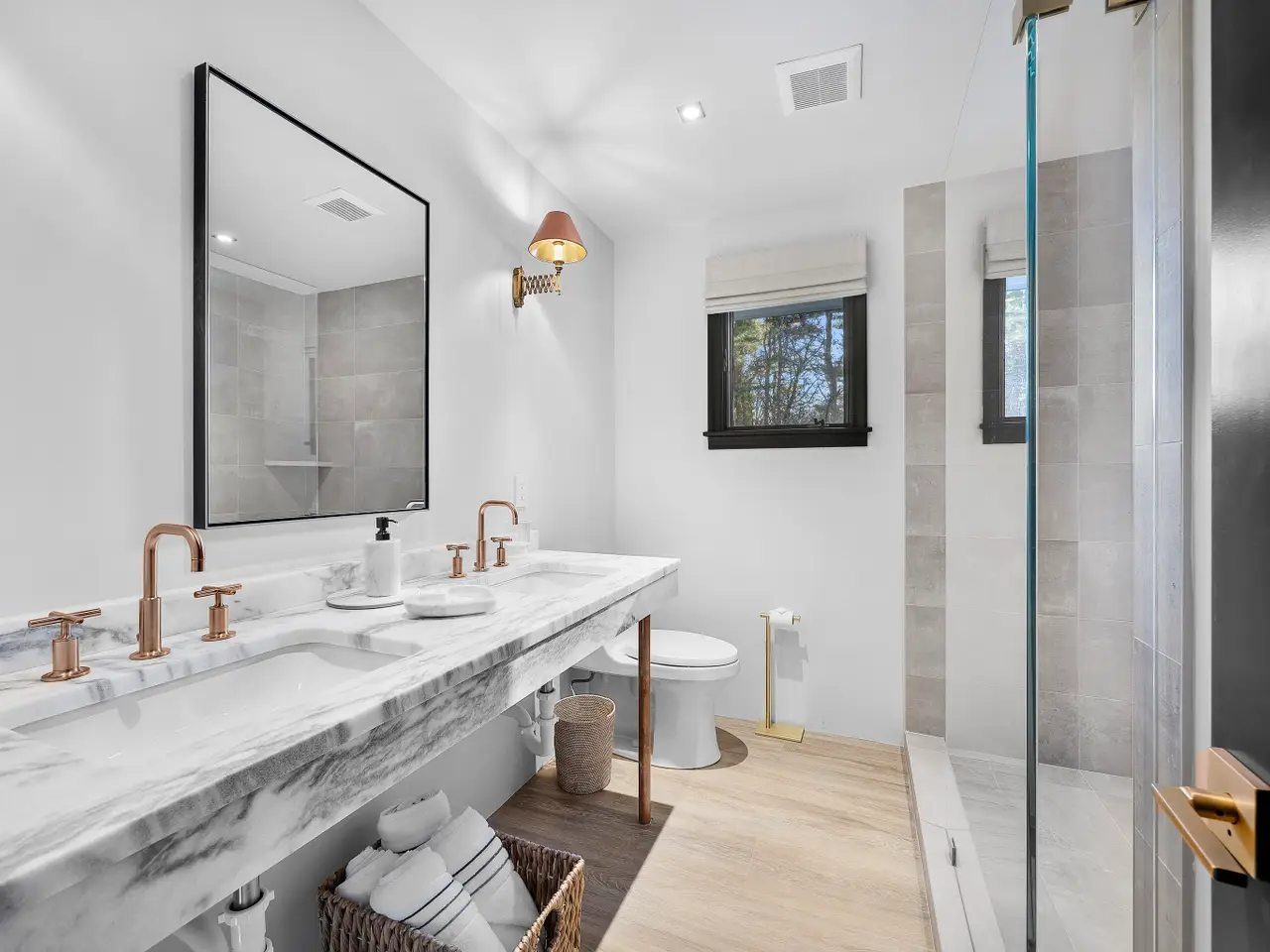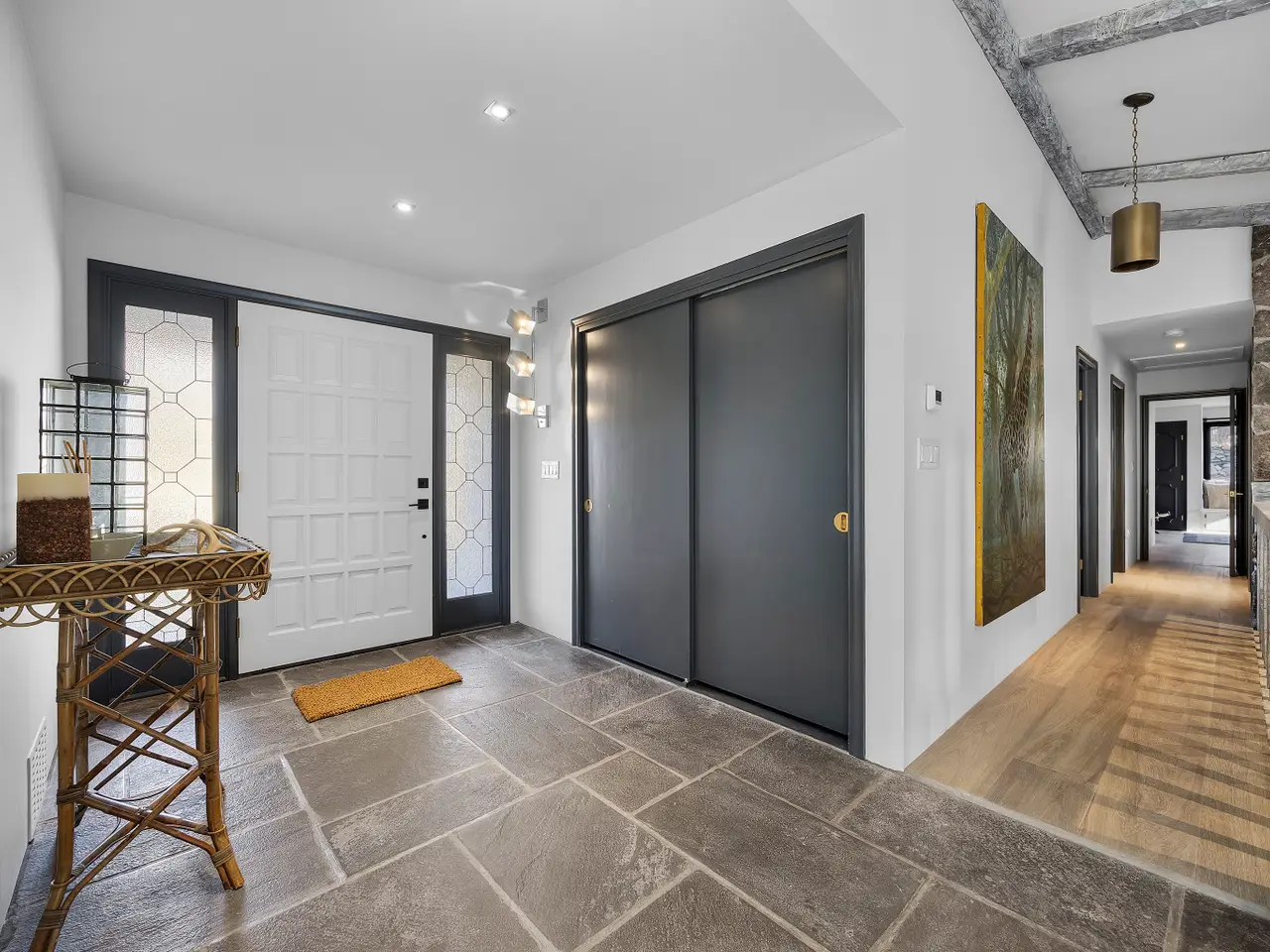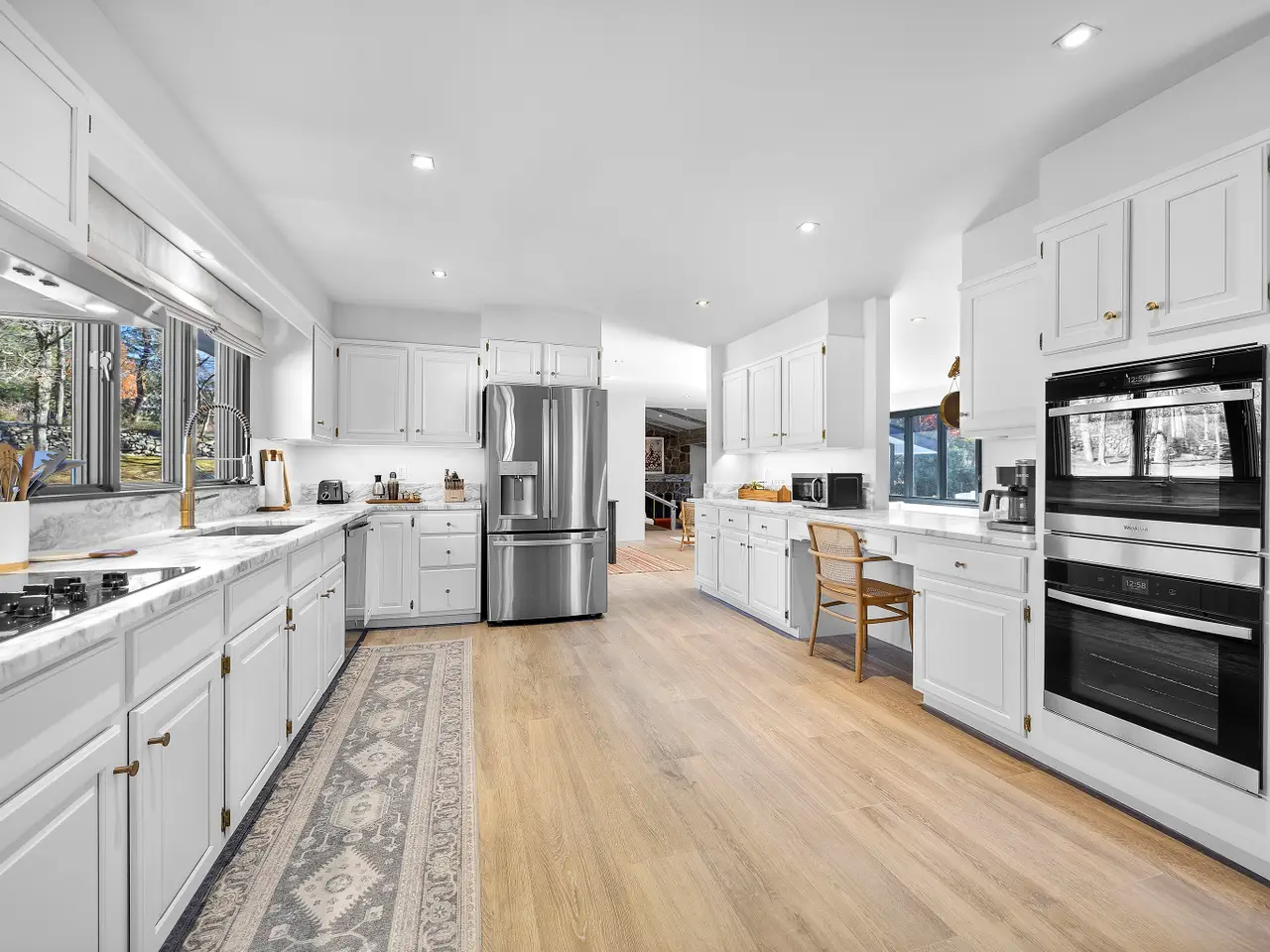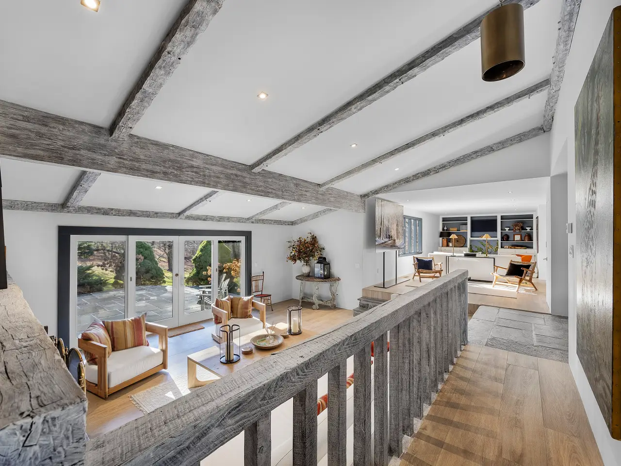 Situated on 2 manicured acres in Southport and surrounded by multi-million-dollar estates, this gated, European-inspired country home blends timeless charm with modern elegance. A white-pebble drive, stone walls, and sweeping lawns with mature trees create a private estate feel. Inside, the home balances warmth with sophistication. Offering 3 bedrooms on the main level and a 4th bedroom option in the lower level with full bath ensuite. Hand-hewn beams, slate entry, and a fieldstone fireplace pair seamlessly with crisp white walls, bold black accents, and striking designer lighting. The open yet defined layout features multiple entertaining areas, a sleek eat-in kitchen, and beautifully renovated baths. More than a home, this is an experience-an extraordinary Southport estate where modern luxury, historic charm, and a setting of rare beauty come together.