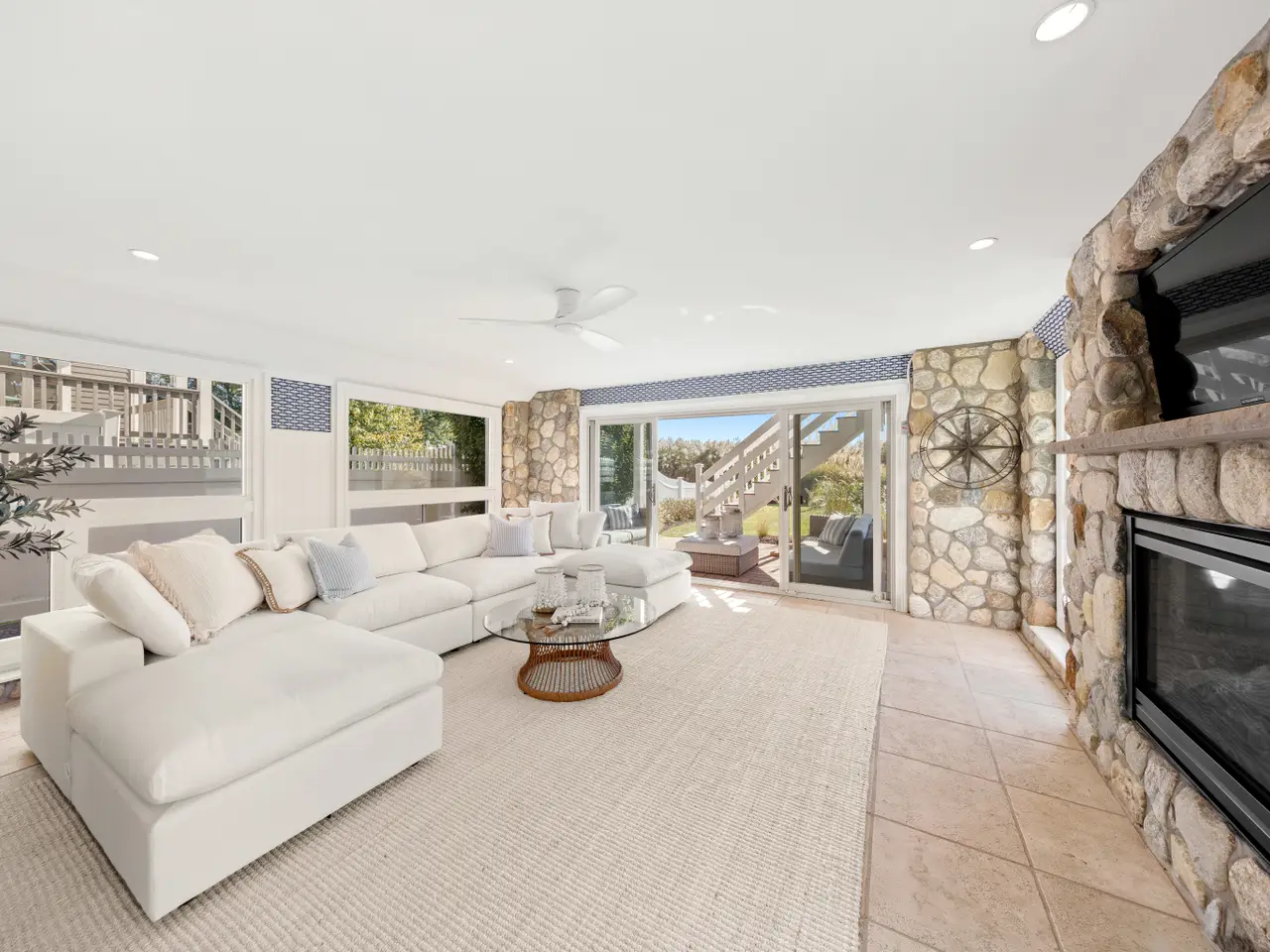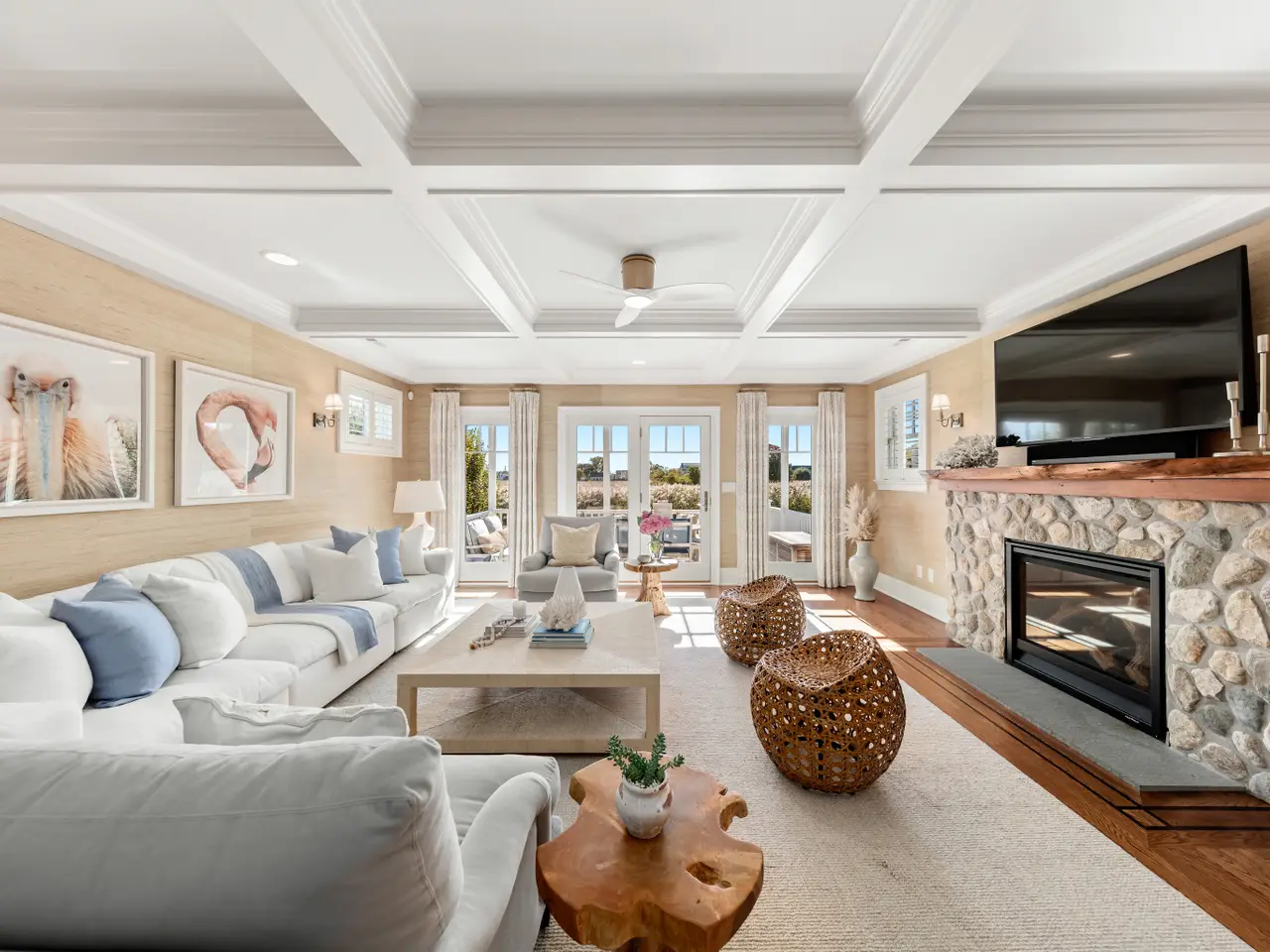 Steps from Penfield Beach via gated Fair Acres Beach Association, 748 Rowland Road is a stunning coastal retreat offering the perfect blend of luxury living & laid-back elegance. Set on a rare, private lot w/sweeping, unobstructed views of protected open space this home is a sanctuary of sunlight, serenity & sophisticated design. The main level unfolds w/an open, airy layout filled w/natural light. A gracious dining room sets the tone for entertaining while the eat-in kitchen impresses w/Thermador appliances, wine fridge & oversized marble island framed by custom cabinetry. The living room stuns w/coffered ceilings, gas fireplace w/reclaimed wood mantle & breathtaking views of the lush space beyond. French doors lead to large deck perfect for alfresco dining & soaking in the coastal breeze. 1st fl powder room & seamless indoor-outdoor flow complete the effortless beachside living vibe. Upstairs, the primary suite is a peaceful retreat w/gas fireplace, oversized walk-in closet, spa-like en suite bath & private deck where ocean breezes & morning light set the tone for the day. 2 add'l bedrooms w/Jack & Jill bath & separate dressing areas provide comfort & privacy for family/guests. Lower level loggia is a showstopper featuring stone floors, gas fireplace & access to patio & stunning professionally landscaped backyard oasis. Attached oversized garage w/epoxy floor, gas, sewer, public water, FEMA compliant.