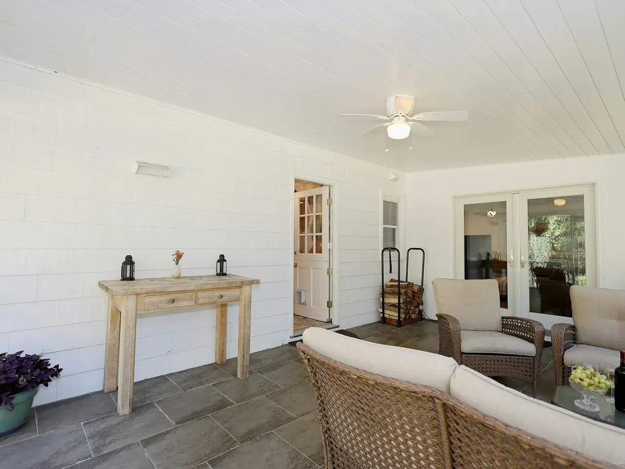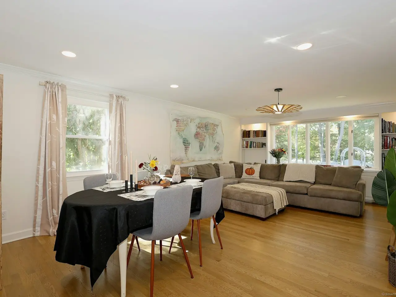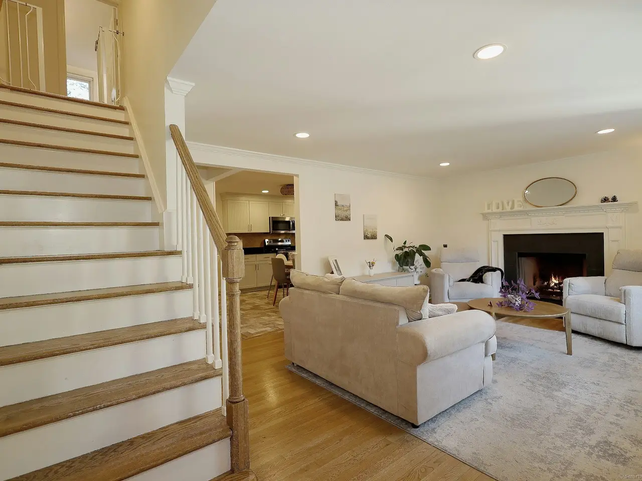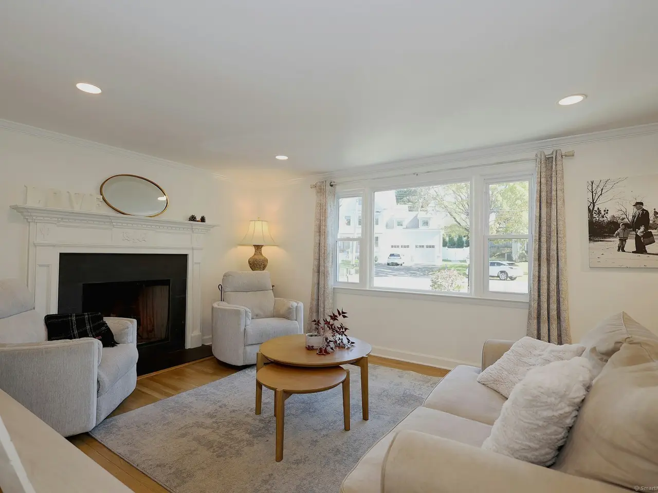Welcome to this beautifully expanded, updated Cape situated within a quiet cul-de-sac in one of Fairfield's most sought-after neighborhoods. Step into the inviting formal living room featuring a cozy fireplace, bay window, refurbished hardwood floors, new lighting, and fresh paint. The eat-in kitchen, with entry to the covered back porch, has granite countertops, SS appliances including a new Miele dishwasher, heated flooring and new light fixtures. In the large family room you'll be struck by the oversized windows with views into the backyard and neighboring pond. The room includes ample storage, built-ins, a French door with direct porch access, new light fixtures, fresh paint and refurbished hardwood floors. A large bedroom and updated full bath round out the main level, offering comfort and flexibility for guests or single-level living. Upstairs you'll find a spacious primary bedroom, a cozy guest bedroom, a versatile 4th guest room/office/nursery, and full bathroom. The finished lower level offers even more living space with endless possibilities such as a media room, home gym, rec room, or office. It also includes a full bath, a laundry area with new Miele appliances, dedicated storage, and direct access to the two-car garage and backyard patio. Enjoy a tranquil, fully fenced, level backyard with a spacious patio and covered porch that is perfect for relaxing or entertaining. Located just minutes from downtown Fairfield's vibrant shops, dining, and beautiful beaches. Please do not walk through the gate to view the pond, it is private property.
