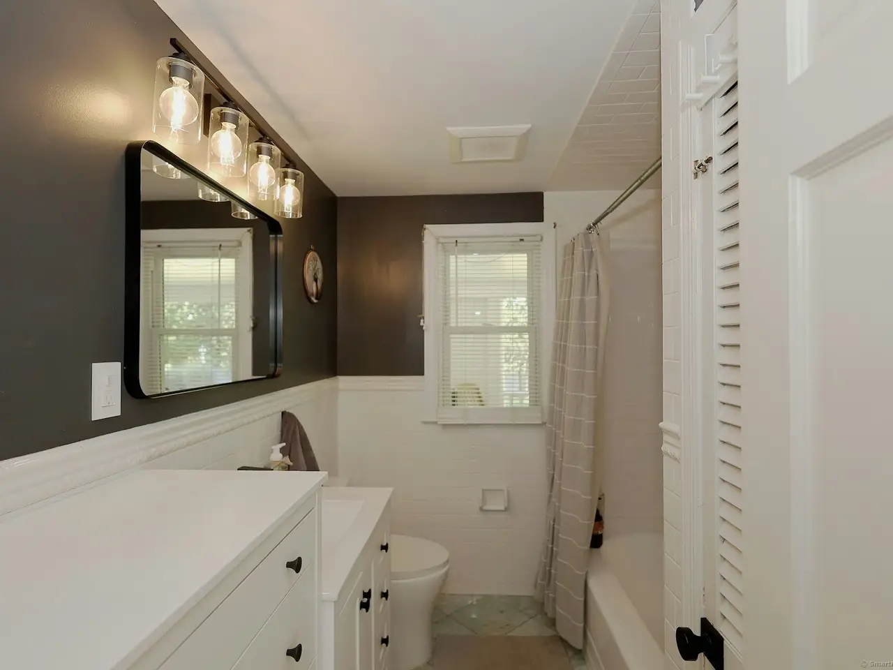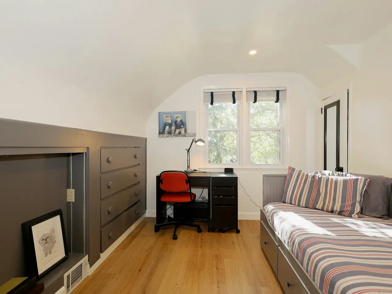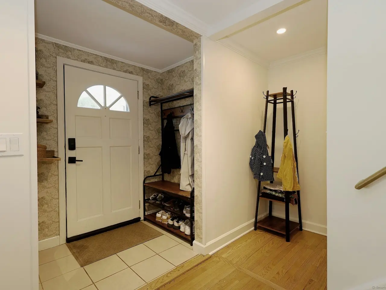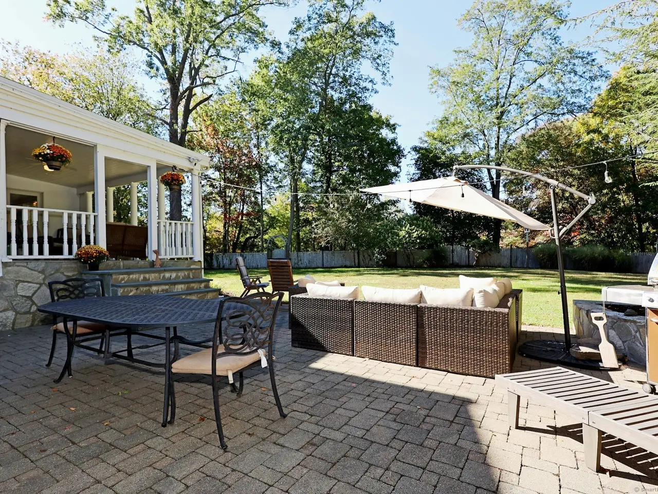 Welcome to this beautifully expanded, updated Cape situated within a quiet cul-de-sac in one of Fairfield's most sought-after neighborhoods. Step into the inviting formal living room featuring a cozy fireplace, bay window, refurbished hardwood floors, new lighting, and fresh paint. The eat-in kitchen, with entry to the covered back porch, has granite countertops, SS appliances including a new Miele dishwasher, heated flooring and new light fixtures. In the large family room you'll be struck by the oversized windows with views into the backyard and neighboring pond. The room includes ample storage, built-ins, a French door with direct porch access, new light fixtures, fresh paint and refurbished hardwood floors. A large bedroom and updated full bath round out the main level, offering comfort and flexibility for guests or single-level living. Upstairs you'll find a spacious primary bedroom, a cozy guest bedroom, a versatile 4th guest room/office/nursery, and full bathroom. The finished lower level offers even more living space with endless possibilities such as a media room, home gym, rec room, or office. It also includes a full bath, a laundry area with new Miele appliances, dedicated storage, and direct access to the two-car garage and backyard patio. Enjoy a tranquil, fully fenced, level backyard with a spacious patio and covered porch that is perfect for relaxing or entertaining. Located just minutes from downtown Fairfield's vibrant shops, dining, and beautiful beaches. Please do not walk through the gate to view the pond, it is private property.