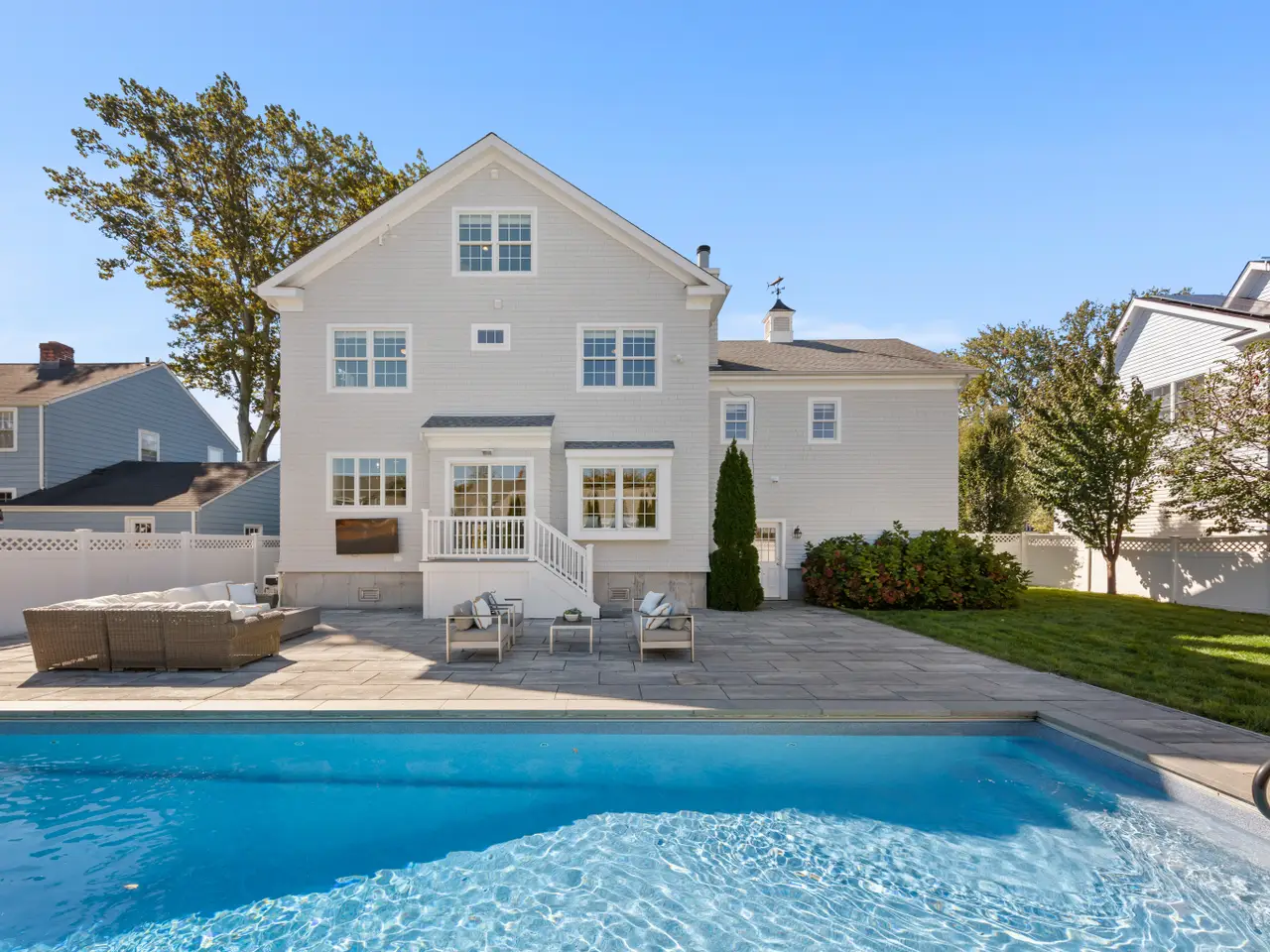 The beach house that truly has it all - light, luxury & location. Set on a nearly 1/4 acre lot on one of Fairfield Beach's most coveted, low-traffic streets where neighbors still host block parties & bike to the shore, this 4-5 BR, 4 1/2 BA home captures the spirit of coastal living w/timeless Nantucket style & effortless sophistication. Inside 9-ft ceilings & natural light define the main level. Living room w/wood beamed ceiling & gas fireplace faces dining room w/coffered ceiling that glows in afternoon light. A deep, moody designer powder room makes a bold statement while the show-stopping navy wet-bar w/warm wood counters, glass cabinetry & beverage fridge connects the dining room & kitchen - an entertainers dream. Chefs kitchen w/custom cabinetry & marble island opens to family room w/stone fireplace & built-ins overlooking the backyard retreat: heated pool w/automatic cover, expansive patio & lush landscaping. 2nd level offers a stunning guest suite, home office & large laundry room. Above, the primary suite is a sanctuary w/large walk-in closet & sublime bath redesigned by celebrated Fairfield County designer w/dual vanities, window seat, soaking tub, oversized marble shower & water closet. Two add'l BRs share a chic Jack-and-Jill bath. Top floor delivers huge finished flex room w/full bath perfect for home gym, playroom or guest suite. Oversized attached 2 car garage, mudroom w/custom built-ins, irrigation, tons of storage, gas, sewer, FEMA compliant. A coastal dream!
