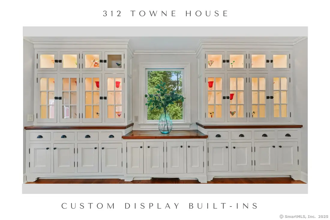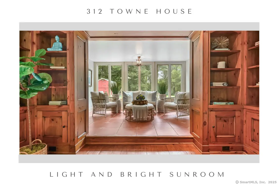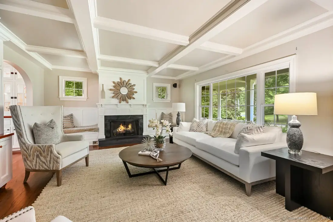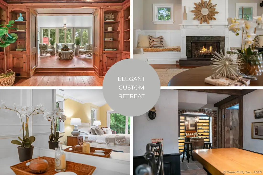 A gracious front porch welcomes you to this sophisticated colonial where comfort and luxury abound. The entry hall with striking floor to ceiling picture frame molding, setting the tone for the refined details found throughout the home. The family room greets you with many carefully curated features including book shelves framing the entry, coffered ceiling, gas fireplace flanked by built in window seats and an entertainment cabinet. The paneled den/library offers a cozy retreat with a wood burning fireplace, exposed beams, custom built ins and inset desk. Relax in the sunroom with barn door style trim and a wall of windows overlooking the private yard. The kitchen is a masterpiece with its bespoke cabinetry including a wall of glass front upper cabinets and walnut trim, curved island with walnut top, bar sink, and wine frig, granite countertops, high end appliances with pot filler at the cooktop, oil rubbed bronze hardware and built in desk area with walnut top, recessed cabinetry and framed bulletin board backsplash. The kitchen opens into the dining room featuring a tray ceiling, built in hutch and buffet, wall of windows, and french door leading to a stone patio and yard, as well as family and sun room providing great flow for entertaining. The primary suite features a cedar lined walk in closet, fireplace, balcony, a wall of custom built ins with vanity and mirror, and two wardrobes and a sitting area with vaulted ceiling and sliders to a covered balcony. (see addendum) The primary bath features travertine tile flooring, corner seat, floor to ceiling subway tile and glass enclosure in the shower, hand crafted vanity with inset doors and granite top. A built in linen closet with pull out hamper, shelving and oil rubbed bronze plumbing fixtures complete the picture. There are 5 additional second floor bedrooms all with hardwood floors two with built in cabinetry and desks, two full baths and a bonus wing to the left of the stairs. This area would make a great in law, au pair, guest or office suite. Currently used as an exercise room it features hardwood flooring, oversized windows overlooking the front yard, vaulted ceiling, ceiling fan a wall of built in cabinetry and a bedroom. The lower level accessed through hidden door, consists of a pub room with hand made bar and wall cabinet with mirror and open shelving, picture frame wall molding, ceiling beams, stucco walls and wide board reclaimed wood floor from a Vermont barn, a wine tasting room also with stucco walls and custom made shelving and bluestone flooring. The home theater has seating for six, picture frame and sound proofing walls, wide movie screen with projector and luxury vinyl plank flooring All lower level furniture and movie equipment are included in the sale. There is a oversized side loading garage with built in shelving and the second door to the lower level and door leading to a generous mudroom with six built in cubbies, hanging area with hooks, drawers and centered window seat with two long casement windows, a glass door leading to the side yard and driveway and a glass door to the sunroom. The level rear yard with a beautiful bluestone patio, sitting wall and barn with electric service is the perfect place for leisure activities. The peaceful retreat offered by scenic Greenfield Hill while being minutes from School, Merritt Parkway and Black Rock dining and shopping experiences make for the perfect house in the perfect location, Welcome home.
