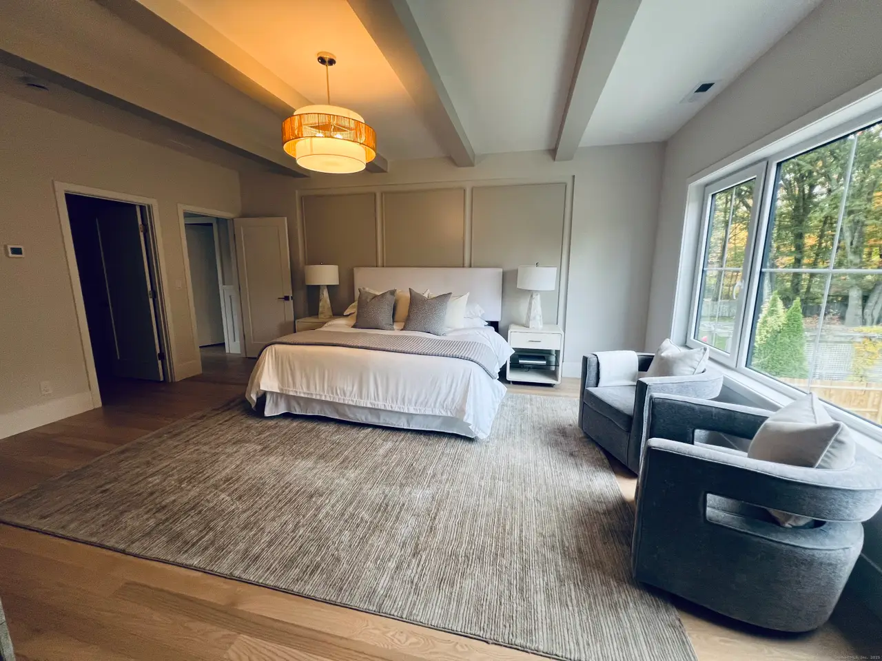 Gorgeous new construction on a private tree lined cul-de-sac . Absolutely amazing level yard on almost a half acre w sprinkler system, substantial patio and room for a pool and in addition, space for many other outdoor toys. This 5 bedroom, 4.5 bath home is spectacular from top to bottom. Over 3000 sq. ft on two levels. First level with living room w stunning New Mont Blanc quartzite natural stone fireplace /gas logs plus stunning custom window and sliding doors, dining rm/office, generous mud room with plenty of storage, half bath. In addition this home offers a FIRST FLOOR spacious bedroom with full bath and lg walk-in closet which can be utilized as a primary bedroom. Slight changes can be made to convert this space into an in-law apt w private entrance. Open floor plan with high ceilings plus a spectacular kitchen with seated island and lots of storage. High end Taj Mahal Quartz countertops, plus BOSCH appliances. 3 bedrooms and laundry room on second level plus over 1000 sq feet in the basement with full bath, bedroom, and spacious playroom with fireplace with gas logs plus plentiful storage and additional multi -purpose room. Hardwood floors throughout, Custom European Windows, beautiful trim everywhere, ring doorbell and flood lights w camera. Fabulous area, close to everything. Walkable location. Nearby you will find, golf, highways, shopping, schools and everything Fairfield has to offer.