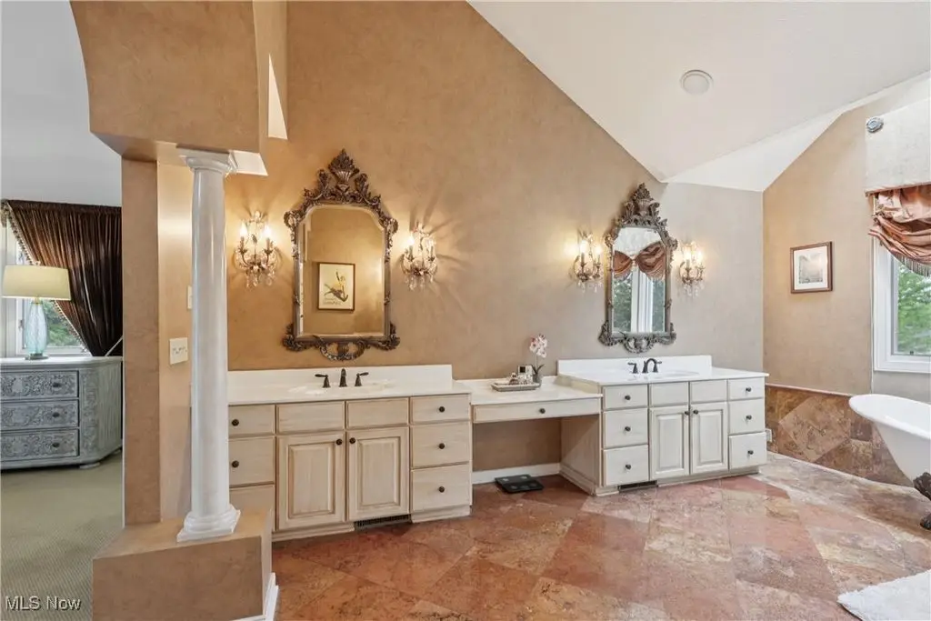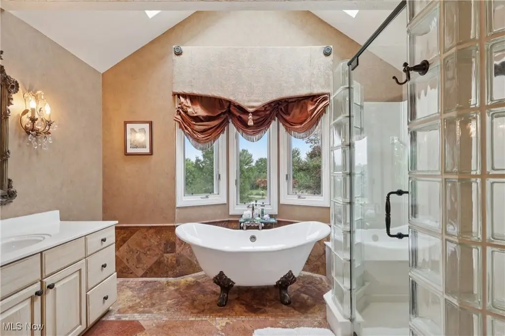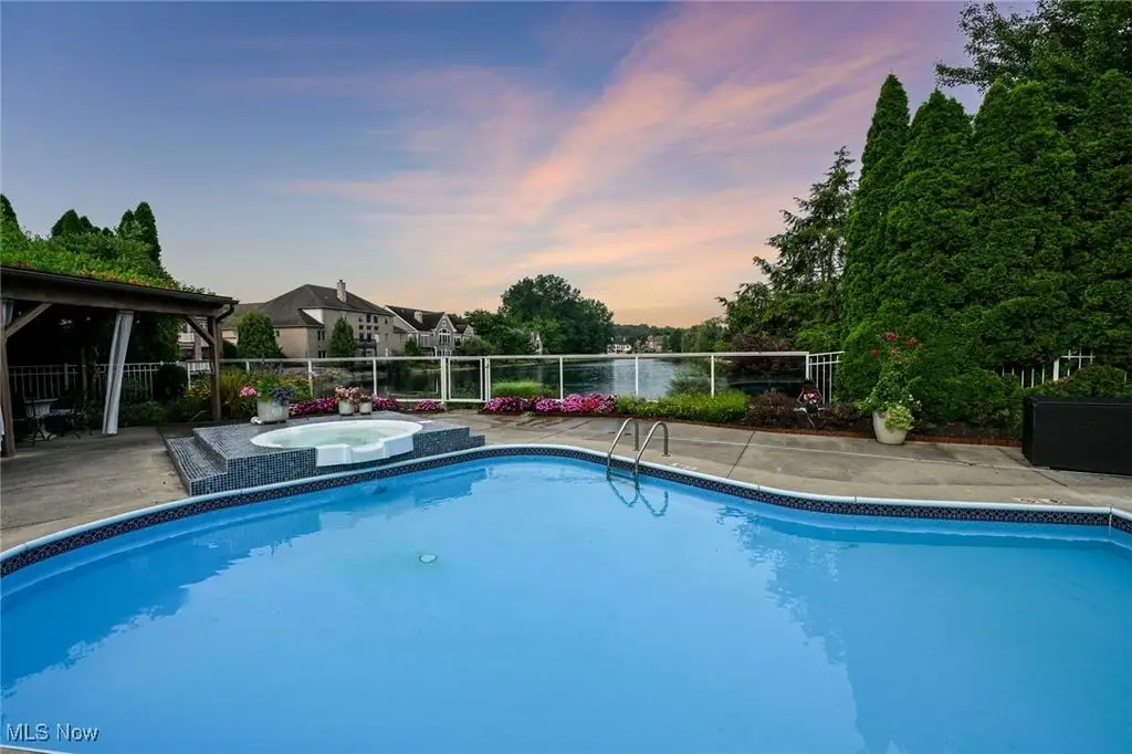 Location, Location, Location. Welcome to your dream home in an idyllic setting at the end of a tranquil Lake in Rosemont. This remarkable residence offers stunning water views and a complete private resort-like atmosphere including gazebo, in-ground pool, hot tub and cabana. The expansive foyer with 24' ceiling open to floor-to-ceiling windows in great room that frame picturesque vistas of the lake and pool area, creating a serene backdrop for everyday living. The FF is adorned with beautiful new herringbone designed ceramic wood flooring. Spacious great room seamlessly flows into the dining area and gourmet kitchen, designed for both functionality and entertaining. The impressive kitchen features abundant of counter space, walk in pantry, stainless steel appliances, and a large island, perfect for gatherings. A private study provides a quiet retreat, ideal for work or relaxation with built ins and bayed window. For added convenience, a first-floor en suite bedroom welcomes guests with comfort and privacy. The first floor is complete with Laundry room and three-car garage. The owner's suite is a true sanctuary, boasting generous space, a cozy fireplace, built-in shelving, and expansive closet space, ensuring a luxurious living experience. Master bath has a stunning claw foot tub in the bay window, stand-in shower with double shower heads, double sinks with a make-up vanity and limestone flooring. 3 additional bedrooms are spacious with built-ins and walk-in closets. This home harmoniously blends elegance and comfort, making it perfect for those who appreciate both style and tranquility. Don't miss the opportunity to make this extraordinary property your own.
