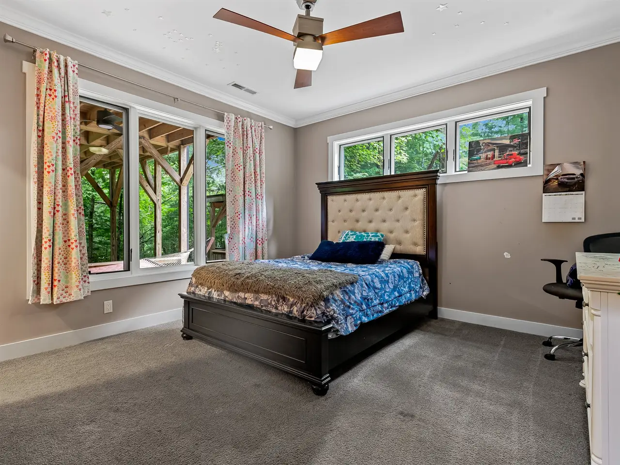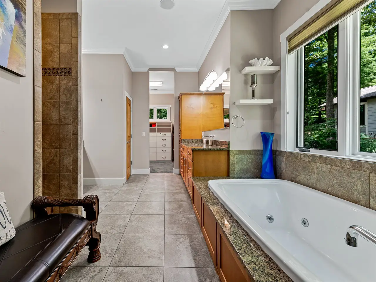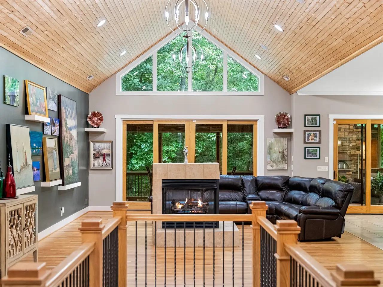 Discover elevated mountain luxury at 105 Blackberry Lane a private retreat where sophistication meets serenity. Enter through a custom arched Italian door into a gallery-style foyer with soaring ceilings and custom lighting. Entertain effortlessly in the chef's kitchen, great room, and music nook and large second living area, or host memorable evenings on the tree-top covered deck with an Earth stone pizza oven and artisan wood-burning fireplace. Enjoy 2,400+ SF of outdoor living with a spa-grade hot tub, pergola grilling area, and forest view firepit deck. The primary suite offers a spa-inspired bath, private balcony, and infrared sauna. Most of the home was updated in 2016, and the separate storage building was also added in 2016. Curated gardens, stone paths, water features, and seamless indoor-outdoor living enhance the experience of this beautiful property. It's not just a home, it's a mountain sanctuary.