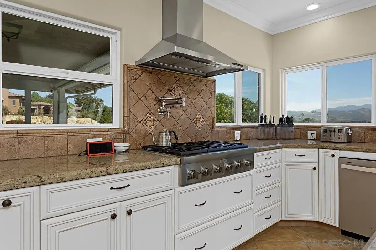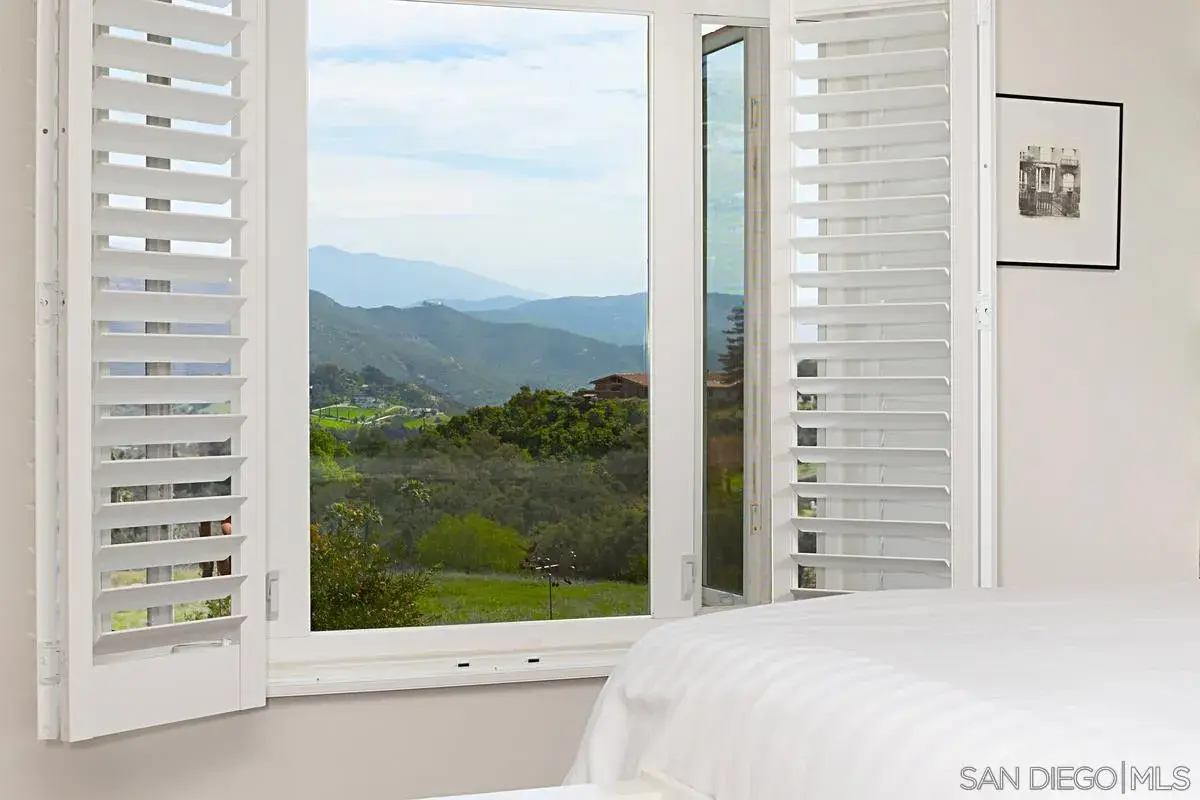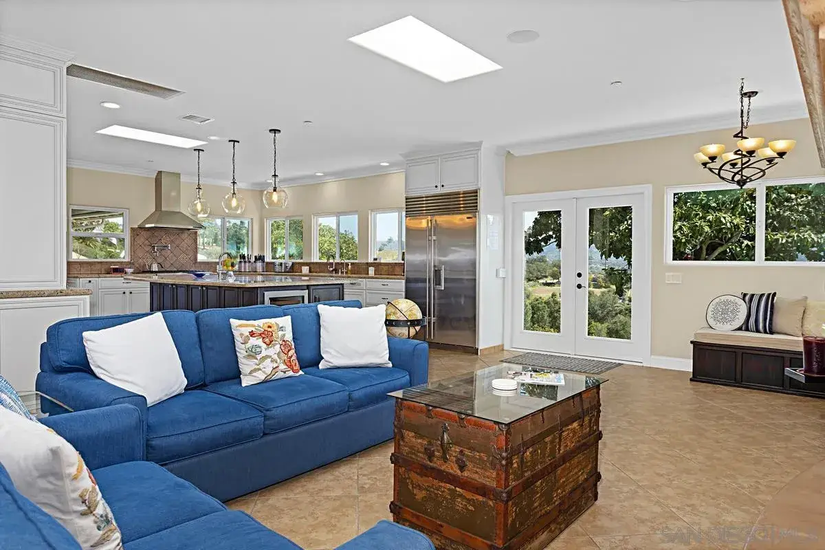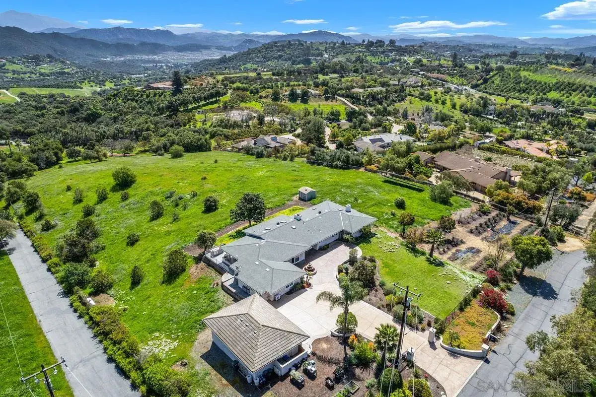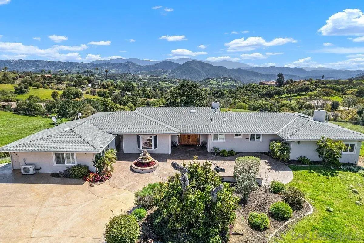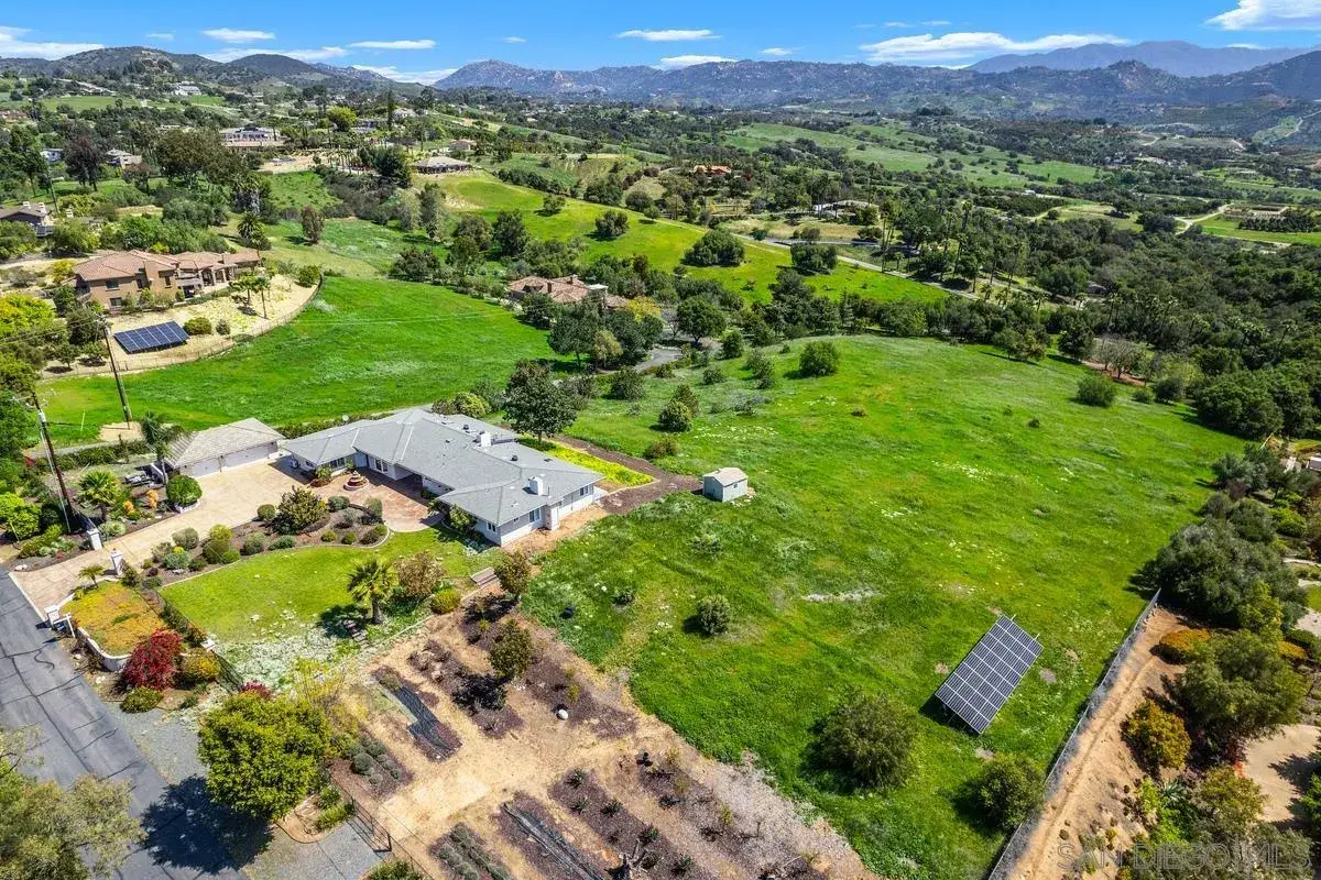 Welcome Home to Serene Country Living with Panoramic Views! Experience the perfect blend of luxury and tranquility in this stunning single-story gated home. Step through custom double wooden doors into spacious great room featuring a cozy fireplace w/custom mantle and french doors, seamlessly flowing into the gourmet kitchen. Designed for the culinary enthusiast, the kitchen boasts high-end stainless steel appliances, including a Sub-Zero refrigerator, Thermador 6-burner range w/hood, convection double ovens, wine chiller and a convenient pot filler. Granite countertops, a large island, soft-close cabinets w/pullouts, and ample storage complete the space. The main house offers a den with bay window and built-ins. 3 generously sized bedrooms, each w/ensuite bath and walk-in closet. The primary suite is a private retreat, featuring an extravagant spa-like bath w/ jetted tub, chandelier, dual-sided fireplace, separate walk-in shower, and dual quartz vanities. Throughout the home, you'll find distressed hickory wood plank and tile flooring, crown molding, plantation shutters, and newer windows. Solar tube lighting enhances a bright and airy ambiance. Paid Solar Electric w/backup. For added flexibility, a separate 1-bedroom potential ADU w/ 3/4 bath and covered courtyard provides additional living space, ideal for guests or rental income. Det. 3-stall garage offers ample storage w/available RV Parking. Covered patio w/powered shade screen w/breathtaking views, all while living in a home designed for comfort and elegance. Seller pays no electric bill!