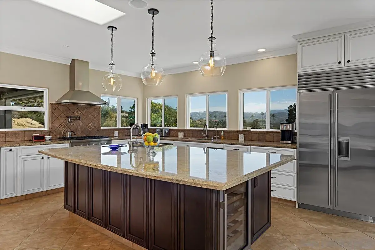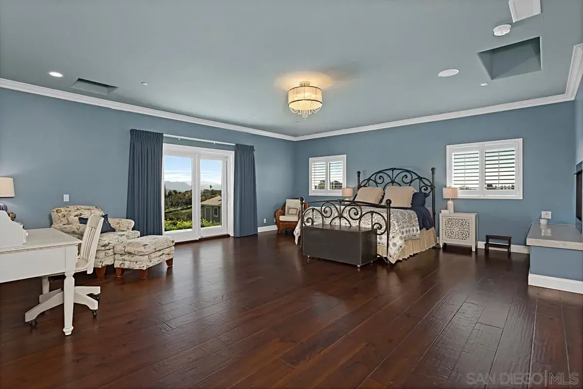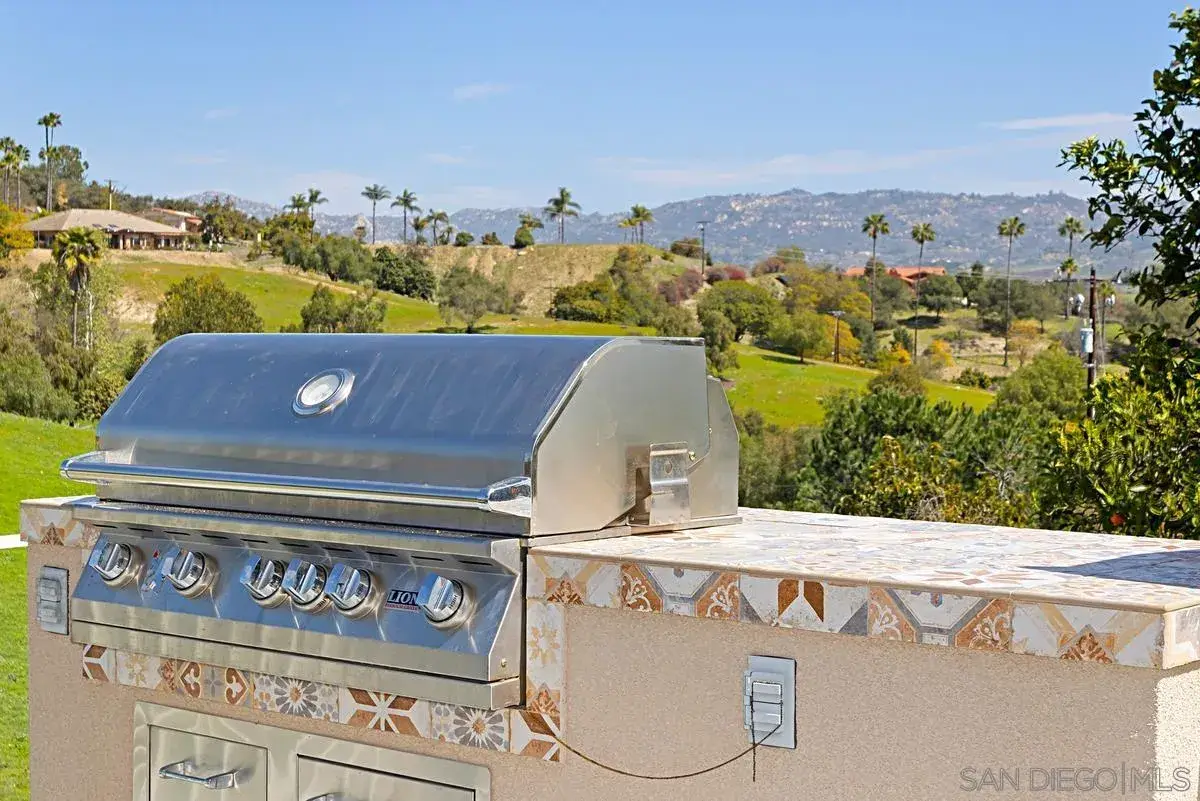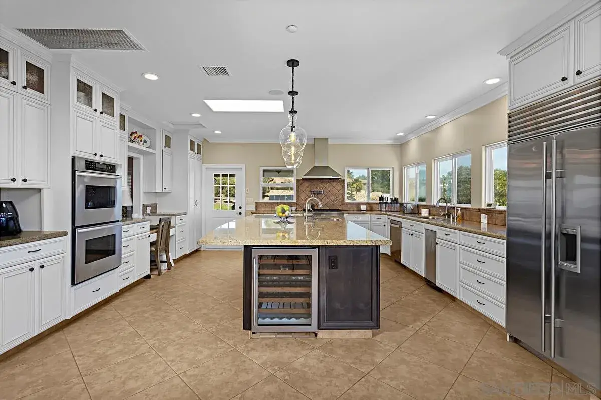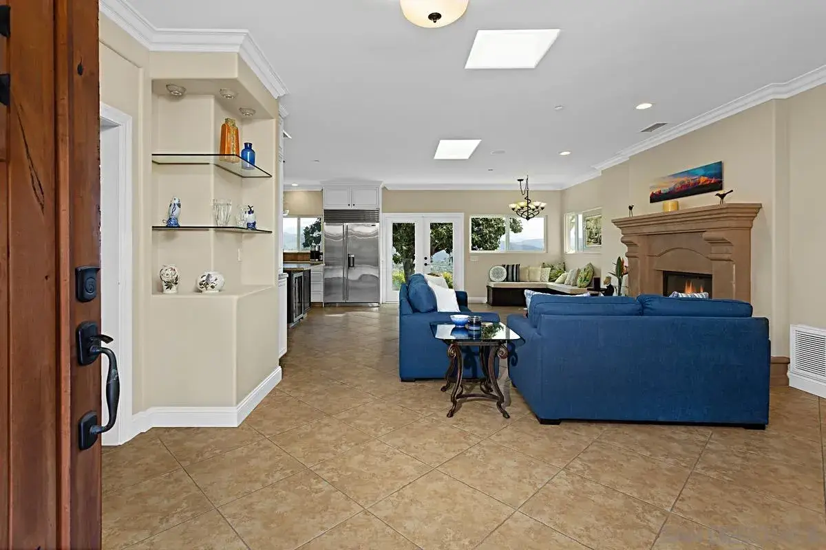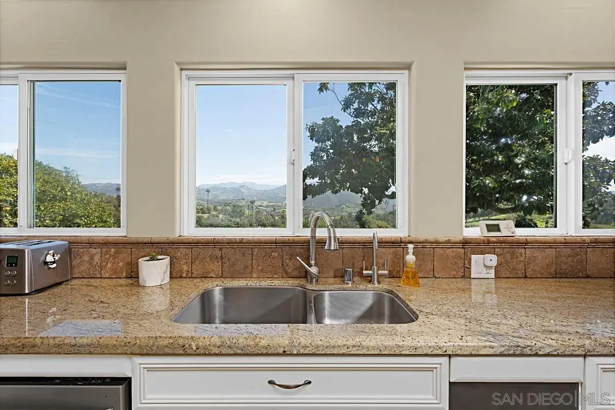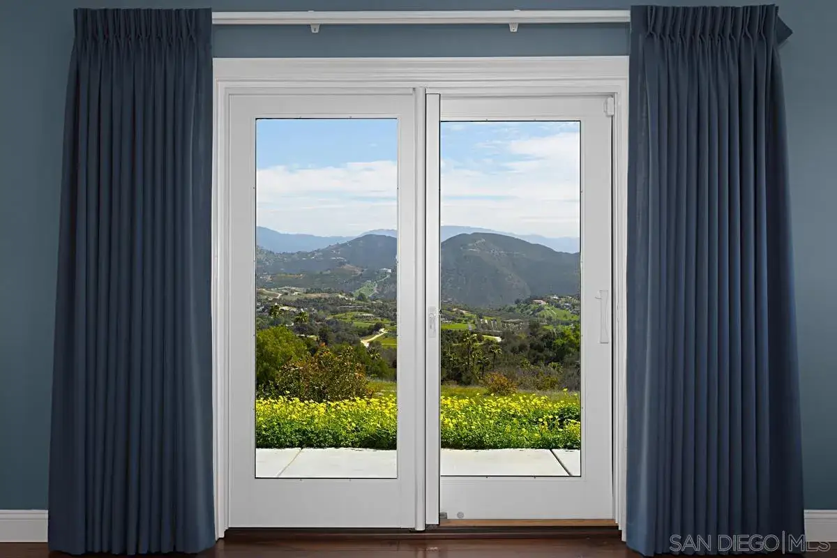 Welcome Home to Serene Country Living with Panoramic Views! Experience the perfect blend of luxury and tranquility in this stunning single-story gated home. Step through custom double wooden doors into spacious great room featuring a cozy fireplace w/custom mantle and french doors, seamlessly flowing into the gourmet kitchen. Designed for the culinary enthusiast, the kitchen boasts high-end stainless steel appliances, including a Sub-Zero refrigerator, Thermador 6-burner range w/hood, convection double ovens, wine chiller and a convenient pot filler. Granite countertops, a large island, soft-close cabinets w/pullouts, and ample storage complete the space. The main house offers a den with bay window and built-ins. 3 generously sized bedrooms, each w/ensuite bath and walk-in closet. The primary suite is a private retreat, featuring an extravagant spa-like bath w/ jetted tub, chandelier, dual-sided fireplace, separate walk-in shower, and dual quartz vanities. Throughout the home, you'll find distressed hickory wood plank and tile flooring, crown molding, plantation shutters, and newer windows. Solar tube lighting enhances a bright and airy ambiance. Paid Solar Electric w/backup. For added flexibility, a separate 1-bedroom potential ADU w/ 3/4 bath and covered courtyard provides additional living space, ideal for guests or rental income. Det. 3-stall garage offers ample storage w/available RV Parking. Covered patio w/powered shade screen w/breathtaking views, all while living in a home designed for comfort and elegance. Seller pays no electric bill!
