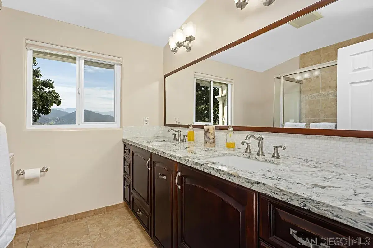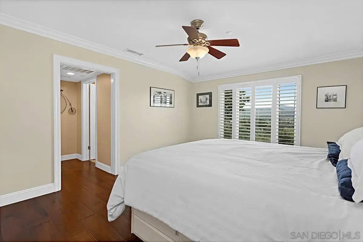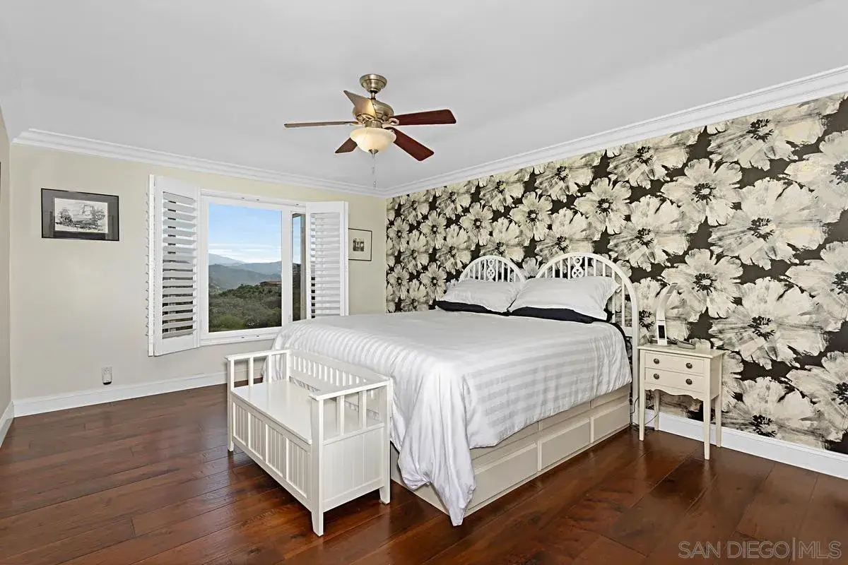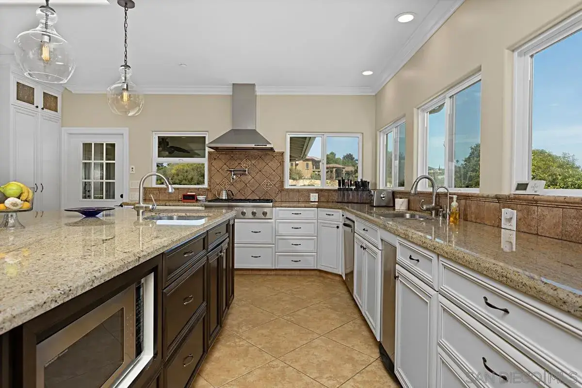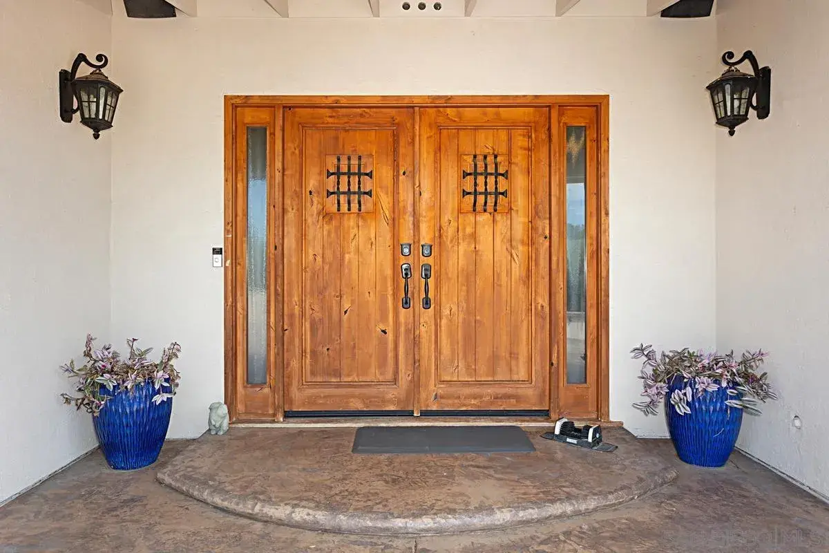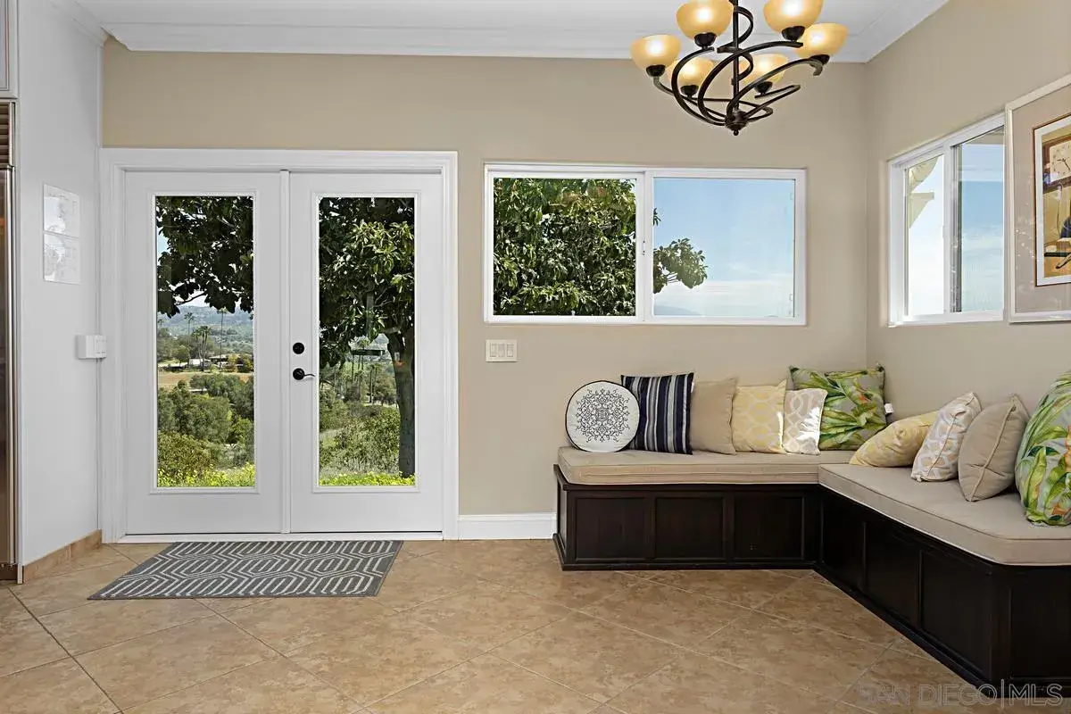 Welcome Home to Serene Country Living with Panoramic Views! Experience the perfect blend of luxury and tranquility in this stunning single-story gated home. Step through custom double wooden doors into spacious great room featuring a cozy fireplace w/custom mantle and french doors, seamlessly flowing into the gourmet kitchen. Designed for the culinary enthusiast, the kitchen boasts high-end stainless steel appliances, including a Sub-Zero refrigerator, Thermador 6-burner range w/hood, convection double ovens, wine chiller and a convenient pot filler. Granite countertops, a large island, soft-close cabinets w/pullouts, and ample storage complete the space. The main house offers a den with bay window and built-ins. 3 generously sized bedrooms, each w/ensuite bath and walk-in closet. The primary suite is a private retreat, featuring an extravagant spa-like bath w/ jetted tub, chandelier, dual-sided fireplace, separate walk-in shower, and dual quartz vanities. Throughout the home, you'll find distressed hickory wood plank and tile flooring, crown molding, plantation shutters, and newer windows. Solar tube lighting enhances a bright and airy ambiance. Paid Solar Electric w/backup. For added flexibility, a separate 1-bedroom potential ADU w/ 3/4 bath and covered courtyard provides additional living space, ideal for guests or rental income. Det. 3-stall garage offers ample storage w/available RV Parking. Covered patio w/powered shade screen w/breathtaking views, all while living in a home designed for comfort and elegance. Seller pays no electric bill!
