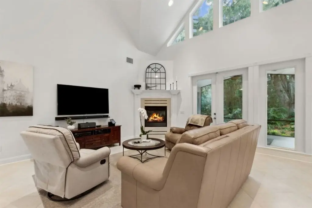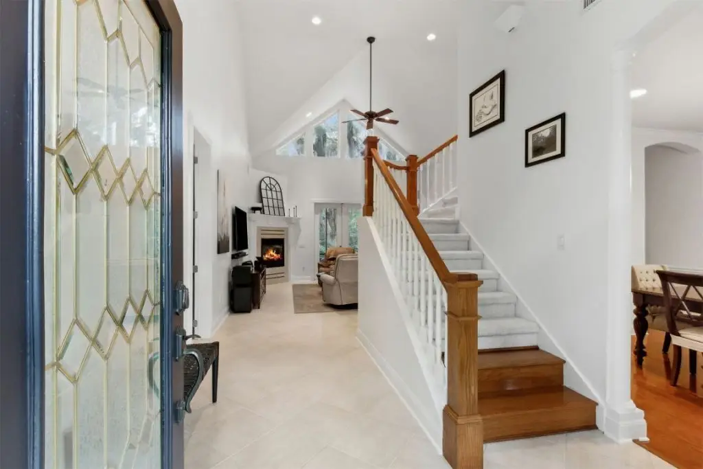 - Main level master suite with high ceilings