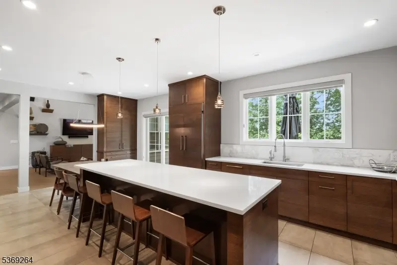 The ultimate in luxury and performance, this custom home in one of Florham Park's most desirable neighborhoods is loaded w/high-end upgrades and distinctive benefits rarely found at any price point. Approx. 7000 + sq. ft including the LL and featuring 4+ spacious bedrooms and 6 baths, it also offers a separate lower-level guest suite w/full bath and direct garage access, ideal for guest or remote work space. A first-floor office, finished basement w/gym and wet bar, and a heated 3-car gar complete the flexible layout. What sets this home apart is its blend of luxury, efficiency, and wellness. Geothermal heating/cooling, fully owned solar panels, and participation in NJ's SREC program resulted in a net energy profit in 2024. Solid wood flooring and molding (no MDF), mineral wool insulation, and low-VOC finishes meet EPA Indoor airPLUS standards for healthier living. Air is continuously refreshed by a HEPA-ready ERV system, and a whole-house water filtration system removes PFAS, heavy metals, and more. Smart home wiring (Cat5e), wine refrigerators in the dining room and basement, and an instant hot/filtered water tap elevate convenience and entertaining. The kitchen features a Wolf dual-fuel range, Miele combi-steam oven, Bosch dishwasher, and KitchenAid built-in fridge. Additional highlights include radiant heat in kitchen and baths, steam shower, whole-house generator, EV plugs, motorized shades, fenced yard with fire pit, and solar-equipped shed.