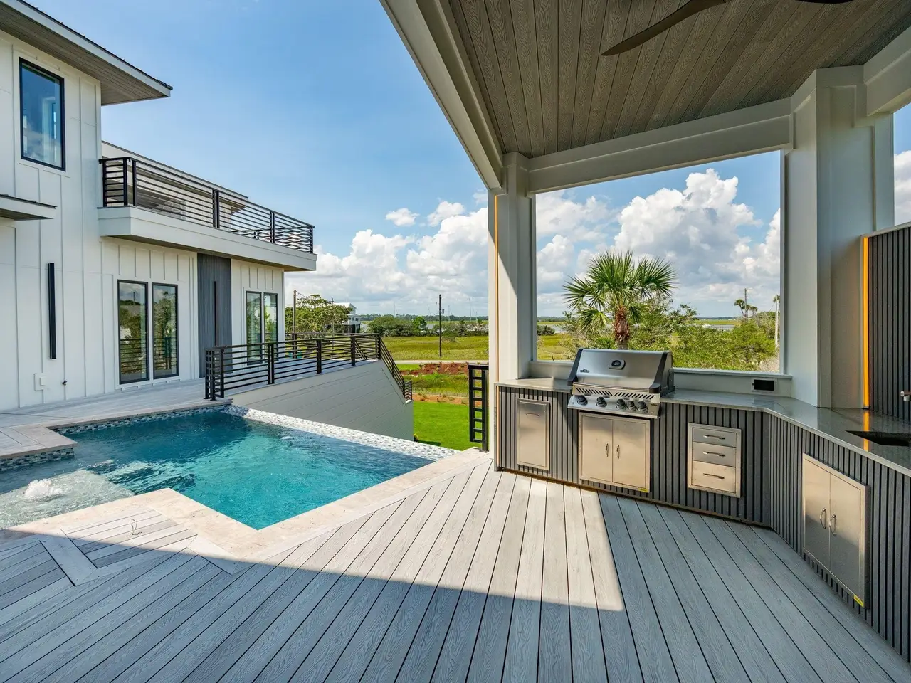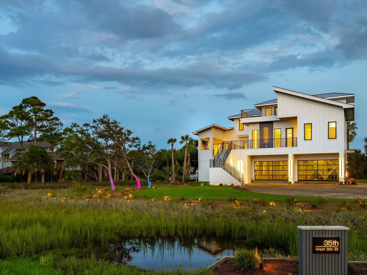 Welcome to 35 West 9th Street - Your dream coastal retreat at iconic Folly Beach is awaiting! This one of a kind property is nestled on the quiet west end of Folly and on a pristine .56 acre lot overlooking the serene views of the Folly River while also boasting spectacular ocean views as well. The home is stunning and offers a rare blend of sophistication and tranquility. Custom built and meticulously crafted, this home offers an array of upscale amenities including an outdoor kitchen, an amazing elevated pool heated by natural gas and a rooftop deck perfect for entertaining or simply unwinding from the end of the day.The home spans 3822 square feet and offers the perfect blend of luxury, comfort, and breathtaking views. There are 3 spacious bedrooms, 4 full bathrooms, a flex room that can serve as an additional guest room or a perfect home office and a bonus poolside room in the design. You will be greeted by an open-concept main floor with sprawling 11-foot ceilings where a spacious family room, dining area, and the chef's kitchen seamlessly flows together. Floor-to-ceiling windows bathe the space in natural light while offering uninterrupted views of the river, the sprawling marshes, the elevated pool and the outdoor kitchen. No detail has been overlooked in this home's design. The Chef's Kitchen features gorgeous stone countertops, custom cabinets and a high end stainless steel appliance package, including a 6-Burner gas stove top range & oven. The perfectly designed bar seating at the kitchen island allows plenty of room for family and friends to relax, spread out and enjoy this magical kitchen space & its wonderful views. The expansive 1st floor primary bedroom suite boasts custom built-ins, vaulted ceilings, a walk-in closet, and a luxurious steam shower with a soaking tub. This bedroom suite also has its own climate controlled cooling & heating system allowing for whatever specifically maintained temperature you prefer. Additionally, a vanity studio adds a touch of indulgence to your daily routine. The main floor also features a versatile flex room with its own full bathroom, perfect for creating a home office or accommodating guests. An elevator ensures accessibility throughout all levels of this gorgeous home and the large butler's pantry with its 2nd full refrigerator and laundry room provide convenience and ample additional storage. A mudroom provides a practical entry point, keeping the rest of the home pristine. Upstairs, a loft-style family room offers wonderful views and access to a large rooftop deck where you can entertain guests or just unwind while taking in the panoramic water vistas and gorgeous ocean views. The second bedroom functions as a 2nd primary suite, complete with its own en-suite bathroom and incredible river views. The third bedroom, which has sweeping ocean views, provides additional comfort and privacy for family, friends and guests. Outside, the stunning raised pool, complete with bench seating areas are perfectly complemented by the aforementioned outdoor kitchen, and are ideal for hosting events of any size. There is even a pool house entertainment room to watch your favorite sports team while enjoying the pool and jaw dropping river views. The grand garage below the home has four over sized bay doors and will accommodate multiple cars. This massive garage space adds 2200 additional square feet of dry storage below the home ideal for your at-home gym, boat storage and general storage. All of your beach and boat toys, your golf cart, surf boards and bikes store easily. From the pre-wired gas Generac whole house generator to the 2 Tesla superchargers and the pre-installed Starlink home internet system, this home's dynamic and unique high end finishes are unmatched. The home is just steps from the Sunset Cay Marina and a very short walk to the 9th street beach access. Folly Beach is a laid back Bohemian style beach town with miles of beautiful beaches, a teeming commercial district with restaurants, bars and cute shops. A short 20 minute drive will get you to downtown historic Charleston where you can enjoy all that the Holy City has to offer. This stunning custom built home and its private location makes it an ideal coastal sanctuary. Don't let this one of a kind opportunity pass you by!