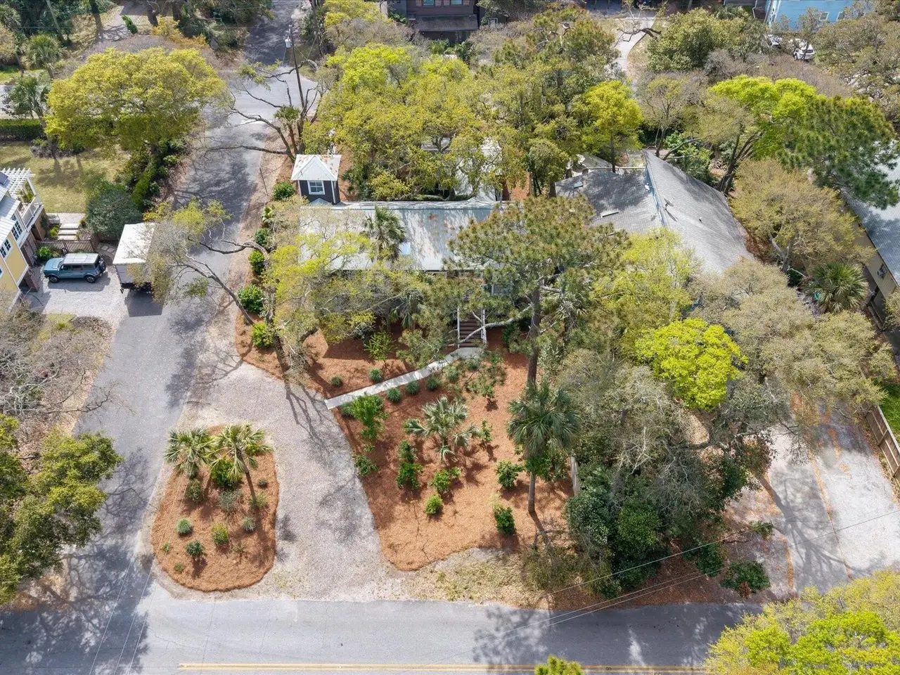 Looking for that special beach home to call your own? Ocean Oak cottage was built as a fisherman's cottage in the 1920s and has been thoughtfully restored and incorporated into a one of a kind residence built around a prized Live Oak. As you enter the home, the living area with oversized windows is open, spacious, and bright. And yet, the home is cozy enough to feel like your own private escape. Recent updates and renovations to the kitchen and baths add to the comfort and relaxed feel of this island home. Now, over 1845 sq ft, the home boasts 3 bedrooms, 3 full baths plus a study or additional bedroom (no closet). The cathedral ceiling found in the original cottage is repeated not only in the grand living area but throughout the home.The kitchen with stainless steel appliances (gas oven), adorable cathedral ceiling and mint green cabinets marry the vintage and contemporary vibe. A metal roof, tile and wood floors, shiplap, and corrugated metal detail enhance the home's unique appeal. Multiple outdoor spaces including a large deck and private screened porch off the cottage offer indoor/ outdoor flow. Rinse off in the outdoor shower after a fun day at the beach. Sitting on a double corner lot, the property is within 2 short blocks of the beach or 7 blocks to Folly's shops and restaurants. Bert's Market, the areas funkiest and best 24 hour grocery is only 4 blocks away. Cottage bedroom has its own private screen porch and entrance. Exterior improvements include new decking and handrails, new concrete walkways, and added landscaping (fruit trees, lighting, irrigation system). Enjoy everything Folly Beach and the Charleston area has to offer or just spend time in your island retreat. This is the perfect place to call home.