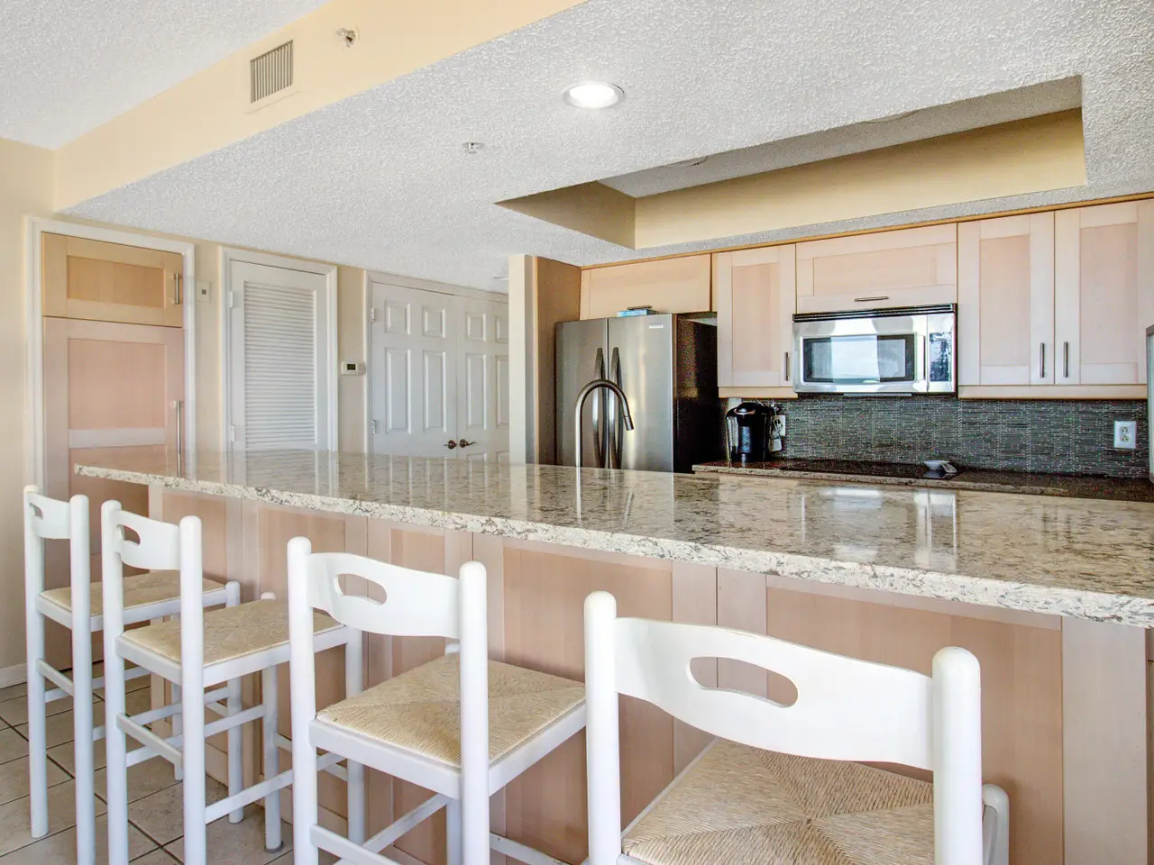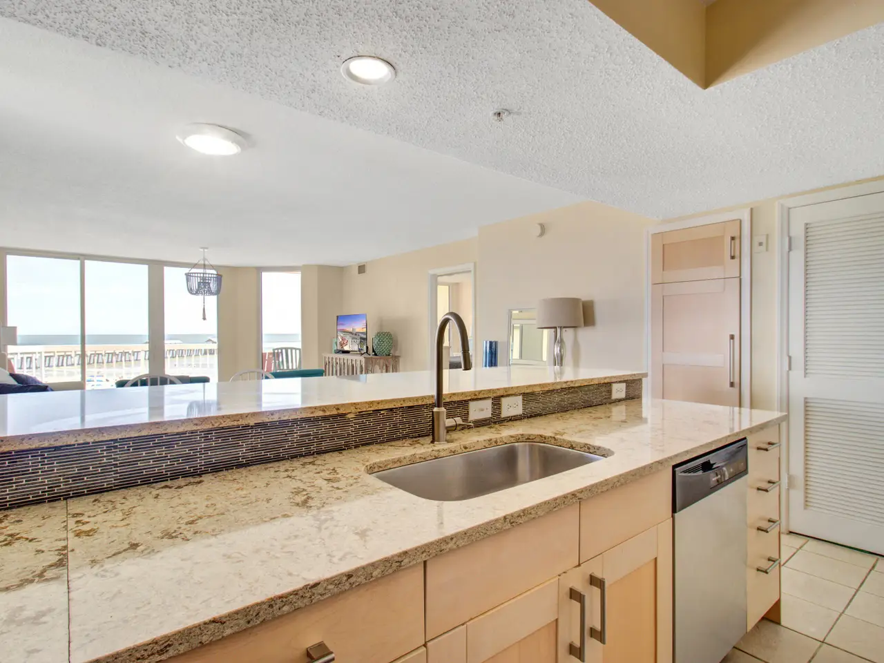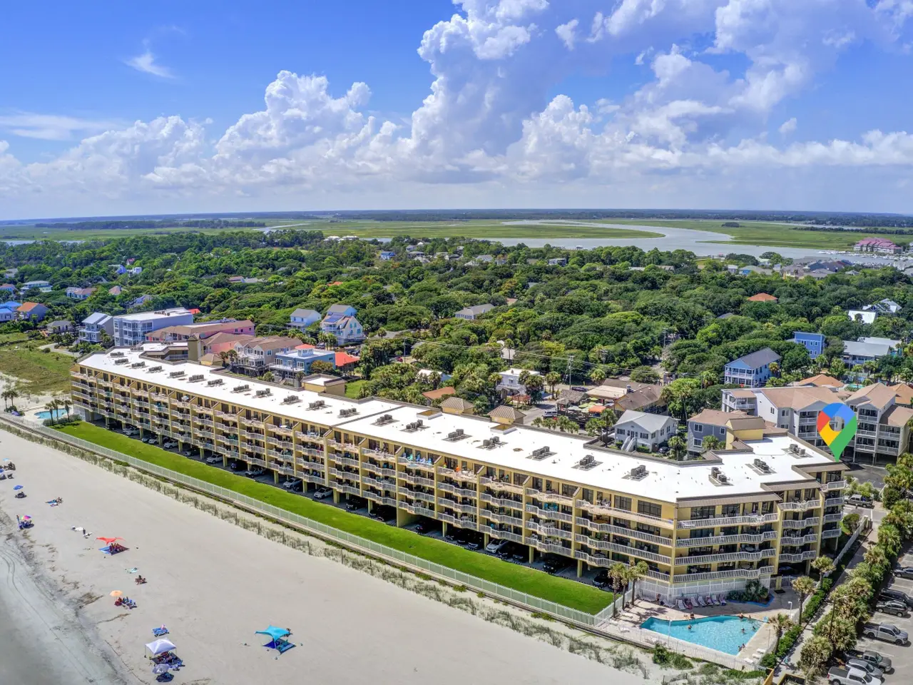 Welcome to Charleston Oceanfront Villas, the premiere condominium complex on Folly Beach. #401 is an elite top floor end unit offering unique and sweeping views of the beach, the Folly Pier and portions of the interior island. The floor plan is large & spacious. Beautiful ceramic tile flooring leads you back to the gorgeous kitchen and main living area. Tons of natural light fill this incredible property and you simply just automatically relax knowing you're home. The kitchen has been wonderfully remodeled with gorgeous stone counters, custom cabinets and stainless steel appliances. Complete with bar seating as well, the kitchen blends seamlessly to the wide open main living room and out to your private and large balcony with stunning beach views. The Primary Bedroom suite is just off to the right and also has direct access out to the balcony. Wow, what a magical view to wake up to everyday. 3 additional bedrooms, one with its own en-suite bath, plus a 3rd full bath complete the floor plan of this spacious property. Charleston Oceanfront Villas is a secure & gated community complete with two beautiful swimming pools, two elevators, direct front beach access and is easily walk-able to everything that downtown Center St with all of its great restaurants & shops have to offer. New high impact windows and sliding doors on the ocean side have just been recently installed in all units at COV. Plenty of covered & uncovered parking and 24-hour security surveillance are just some of the wonderful features of this complex. Want to enjoy downtown Charleston SC? Folly Beach is a quick 15-20 minute drive to easily enjoy all that the Holy City has to offer. This property is priced to sell and certainly will go quickly. Don't let this incredible property pass you by!