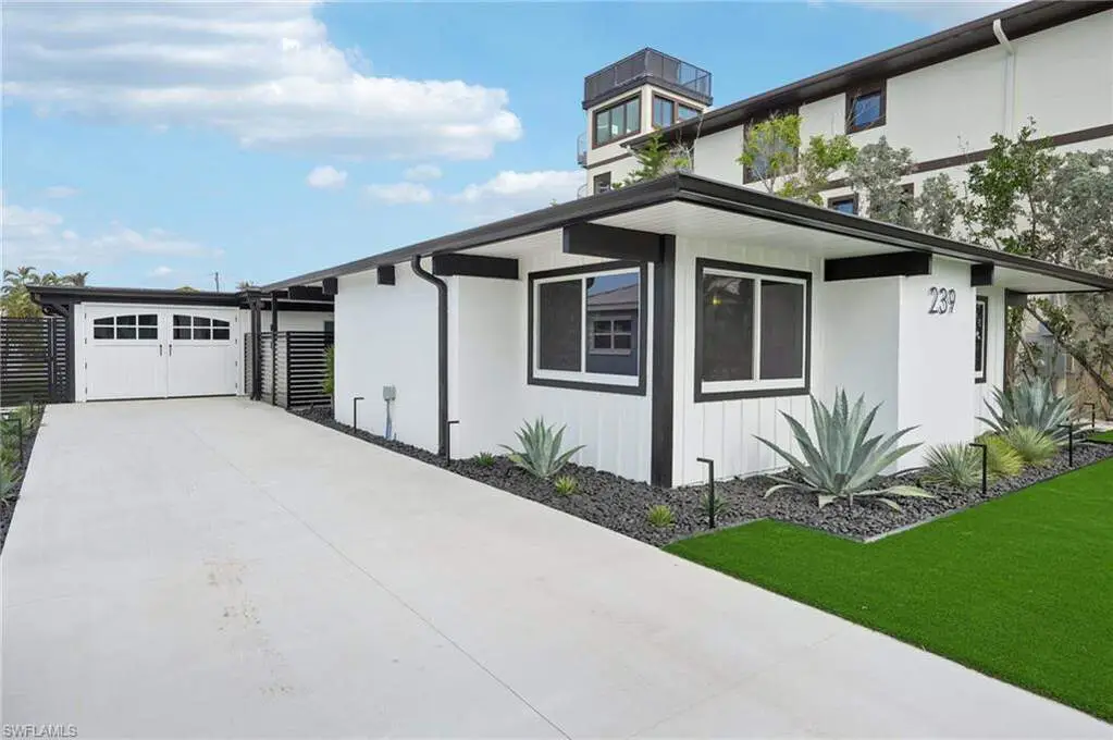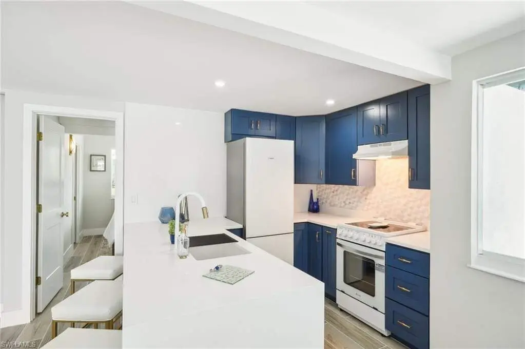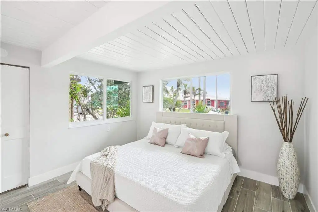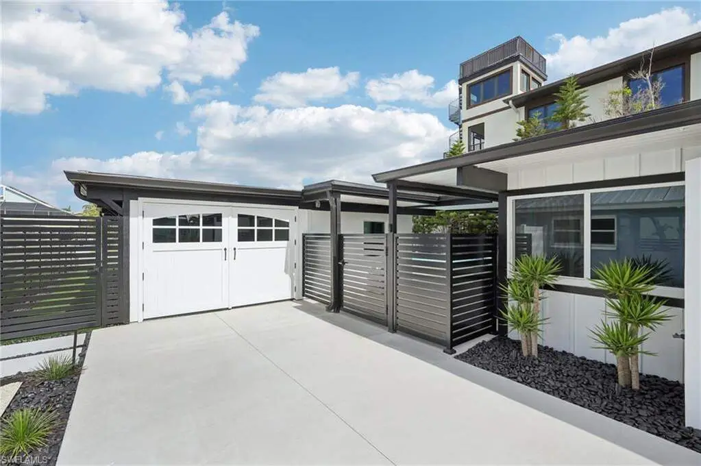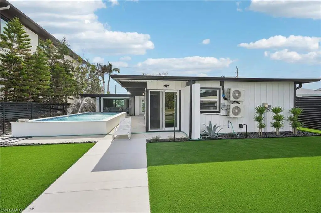 Modern elegance best describes this newly remodeled direct gulf access pool home with detached bonus guest house on Fort Myers Beach. With a total of four bedrooms and three full bathrooms, there is plenty of room for your extended family. The main home features custom cabinetry and tile work throughout the entire residence. The kitchen features not only stunning quartz counters, but a quartz wall, designer Bosch appliances, and ample size breakfast bar. While you relax in the living area, you can open your panoramic sliding doors to enjoy the breezes off the water. As you step into your detached one-bedroom guest home, you can enjoy the same level of workmanship and detail, inclusive of custom cabinetry, tile work, and modern finishings. In addition to a one and a half car garage, custom aluminum fencing and additional parking, the exterior has been meticulously zero scaped with fresh stone and a beautiful synthetic lawn for ease of maintenance and a sleek appearance. As you relax by your pool, you can enjoy Bay views and watch the Dolphin and the Manatee as they play right in your backyard complete with a brand-new seawall and dock. Why wait for new construction when everything here was fully permitted, inclusive of plumbing, electrical, impact doors and windows, roof, and so much more. Jump on your boat right in your backyard or take a short stroll to the white sands to explore all that southwest Florida has to offer!