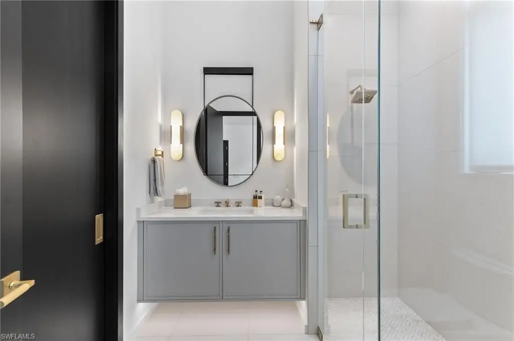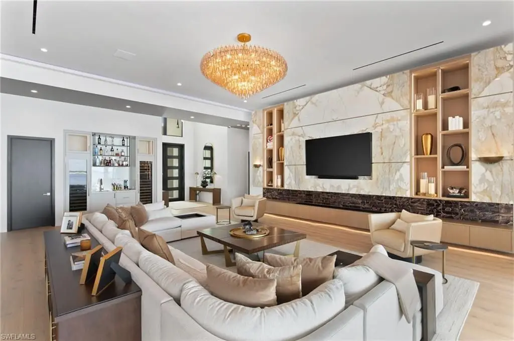 Extraordinary, Turnkey offer- Sports Membership, 50Ft Boat slip in prestigious Marina located on D-21 and custom designed fully furnished all Included! Embark on a journey of exquisite living in this unparalleled waterfront residence, a sanctuary of luxury within Gulf Harbour's prestigious Edgewater subdivision on sought-after Longwater Chase Court. This residence exudes opulence at every turn, and it will impress even the most discerning buyer. Wide-plank White Oak floors guide you through grand spaces adorned with Italian marble and refined finishes. The great room features a built-in bar with backlit Onyx, dual Sub-Zero wine storage systems, and a stunning 12-foot water vapor fireplace, all illuminated by a hand-blown Restoration Hardware chandelier. The chef's kitchen boasts top-tier appliances from Wolf, Sub-Zero, and True, paired with a marble butler's pantry that includes a coffee station, dual lazy Susans, second dishwasher, microwave, and Franke sink system. The private primary suite offers sweeping water views and a luxurious spa-like bath. Three ensuite guest rooms and a spacious bonus room with water views and flexible sleeping arrangements ensure ample space for guests and family. Modern smart home technology is seamlessly integrated, including Loxone-powered Ketra lighting, a Bowers & Wilkins in-ceiling speaker system with eight Sonos Amps, and intuitive controls for lighting, climate, and security. Outdoors, enjoy 110 feet of private white sand beach, 1,400 square feet of covered lanai, and a saltwater pool with spa, sun shelf, fire features, and lush landscaping. Perfect for boating and golf enthusiasts, the Gulf Harbour community offers a world-class marina with access to destinations from Sarasota to Marco Island, and an impeccably maintained private golf course, with membership available for purchase immediately. Built by Frank Jenkins Custom Homes, this residence is a rare opportunity to own a refined waterfront oasis in Southwest Florida. The walk-through videos are breathtaking!
