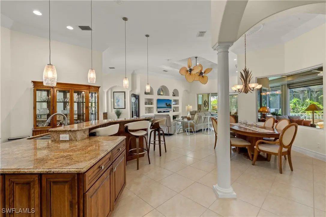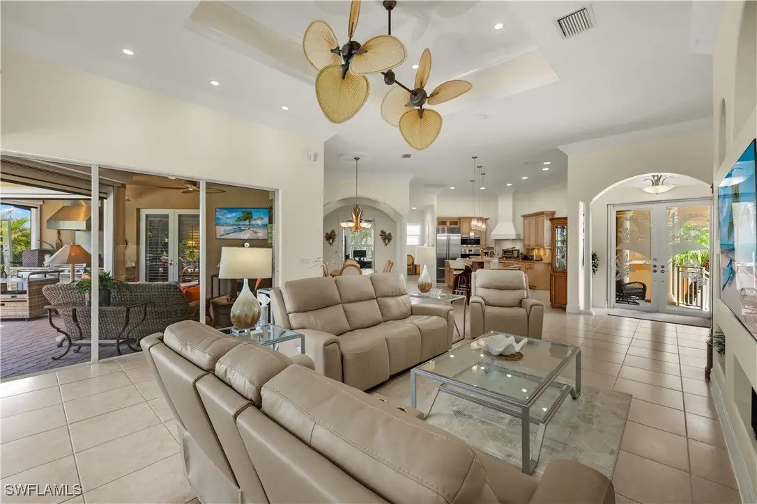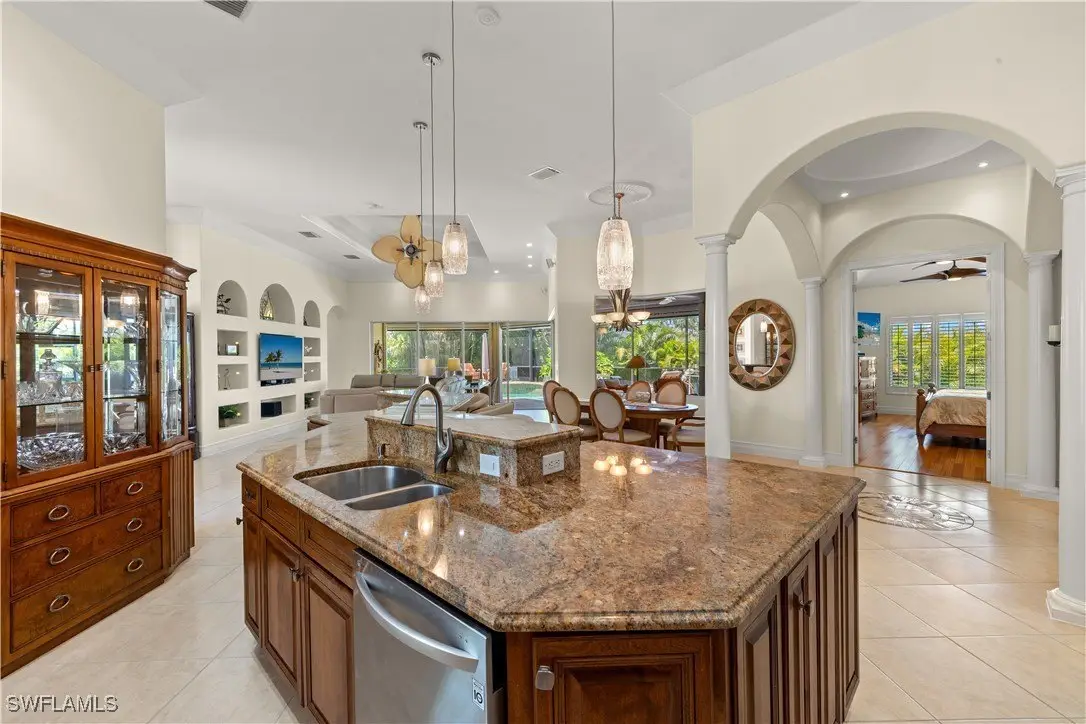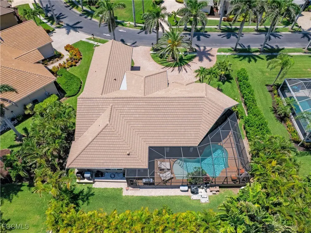 Welcome to Catalpa Cove, a private gated boating community just minutes to the Gulf and Bay waters. With this home you can enjoy all the perks of waterfront living with added peace of mind and protection at a more affordable price! This beautifully maintained custom home includes a deeded boat slip with a 10,000 lb lift, offering direct Gulf access just minutes away, ideal for those who love to be on the water. Step inside through the glass double doors to an open and airy layout filled with natural light, high ceilings, and Impact Rated windows and sliders throughout. The kitchen is as functional as it is welcoming, with custom birch cabinetry, granite countertops, Sub-Zero and Wolf appliances, and an oversized island perfect for gathering with friends and family. Just off the kitchen, the spacious living area features built-in shelving and Zero Corner sliders that open completely to the lanai, creating a seamless indoor-outdoor lifestyle. Outside, enjoy a private backyard retreat with a sunshelf pool, outdoor kitchen with built-in grill (connected to a 500-gallon buried propane tank), covered dining and lounging spaces, and a convenient pool bath. Freshly updated landscaping, a newly sealed paver driveway, and a fully fenced backyard add to the appeal. The VIP suite offers a peaceful escape with great natural light and direct lanai access. A separate den with dedicated office space is perfect for working from home or added flex space. Two additional bedrooms on the main level each include their own full baths with custom tile and finishes. Upstairs, a large bonus room with an attached bath makes a perfect studio, gym, or junior VIP suite. This home also features a newer roof (2023), a Halo 5 whole-house water filtration system, and a full-house generator, making it the perfect home for those who want the boating lifestyle with added security and convenience. Don’t miss your opportunity to own in one of Fort Myers’ most desirable boating communities, close to World Class Beaches, Incredible fishing and boating, and all of the amazing things SWFL has to offer!