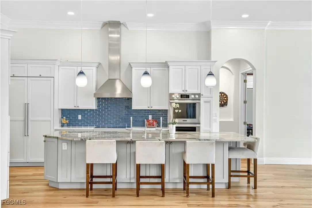 Discover luxury living in one of Fort Myers' most sought-after gated communities, Devonwood Estates. Situated on a meticulously landscaped 1.15 corner acre high and dry lot surrounded by 32 royal palms, this 4-bedroom, 4-bath estate has been thoughtfully renovated with high-end finishes and features throughout. A full interior remodel was completed in 2021, including the kitchen, all living areas, and bedrooms. The gourmet kitchen showcases custom cabinetry, a large Macaubas Fantasy Granite island, and top-tier Viking and Signature appliances. Additional updates include two new AC units and ductwork (2021), new roof (2024), remodeled pool, deck, and fencing (2022), and new pool equipment with a Jandy WiFi remote. Enjoy the elegance of ornate vintage chandeliers sourced from Palm Beach and Port Royal estates, soaring ceilings, rich wood flooring, and a seamless indoor-outdoor flow. The oversized lot offers privacy with preserve views, perfect for entertaining or relaxing in the custom pool and spa. Devonwood offers residents tennis, a community boat ramp with Gulf access, and serene privacy all while being just minutes from beaches, shopping, dining, and RSW Airport. This is one of the best kept secrets in all of SWFL.