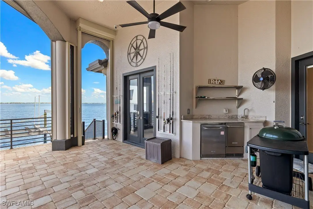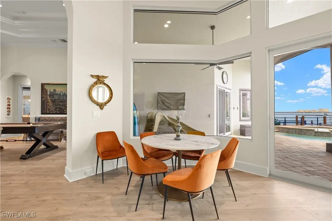 Luxurious Waterfront Living in the Prestigious Gated Community of Catalpa Cove. This beautifully updated estate offers over 3,500 square feet of refined living space with 4 bedrooms, 4.5 bathrooms, plus a private 1 bedroom, 1 bathroom guest suite with a partial kitchen-perfect for visitors, or a secluded workspace. From the moment you step through the front door, the home welcomes you with soaring ceilings, Great natural light, and stunning river views that stretch across the formal living and dining areas. The gourmet kitchen is both spacious and functional, featuring extensive counter space and an open layout that flows seamlessly into the family room-ideal for entertaining or everyday living. The VIP suite is thoughtfully positioned for privacy and showcases expansive water views, a spa-inspired bath, and generous closet space. Each additional bedroom includes its own ensuite bathroom, creating a private and comfortable space for family and guests alike. Outdoors, the home truly shines. An oversized paver lanai frames a saltwater infinity-edge pool and spa, offering a peaceful escape surrounded by breathtaking waterfront scenery. The attached guest suite, located just off the lanai, can also serve as a convenient pool bath. Boaters will love the private dock outfitted with a 16,000 lb. lift, power, and water connections, alongside a raised seawall and approximately 80 feet of direct river frontage. Recent updates add to the home's value and peace of mind: a 2022 roof, 2-zone HVAC with dehumidifier and UV purification (2021), Storm Smart Kevlar storm screens, new exterior and interior paint, upgraded irrigation running on a private well, and a dual propane tank setup with generator-ready electrical panel. Best of all, this home remained high and dry-no water intrusion in either the main residence or garage during any storms. Located just minutes from fine dining, marinas, and the white-sand beaches of Sanibel and Captiva, this is a rare opportunity to own a truly turn-key waterfront residence in one of Southwest Florida's most sought-after communities.