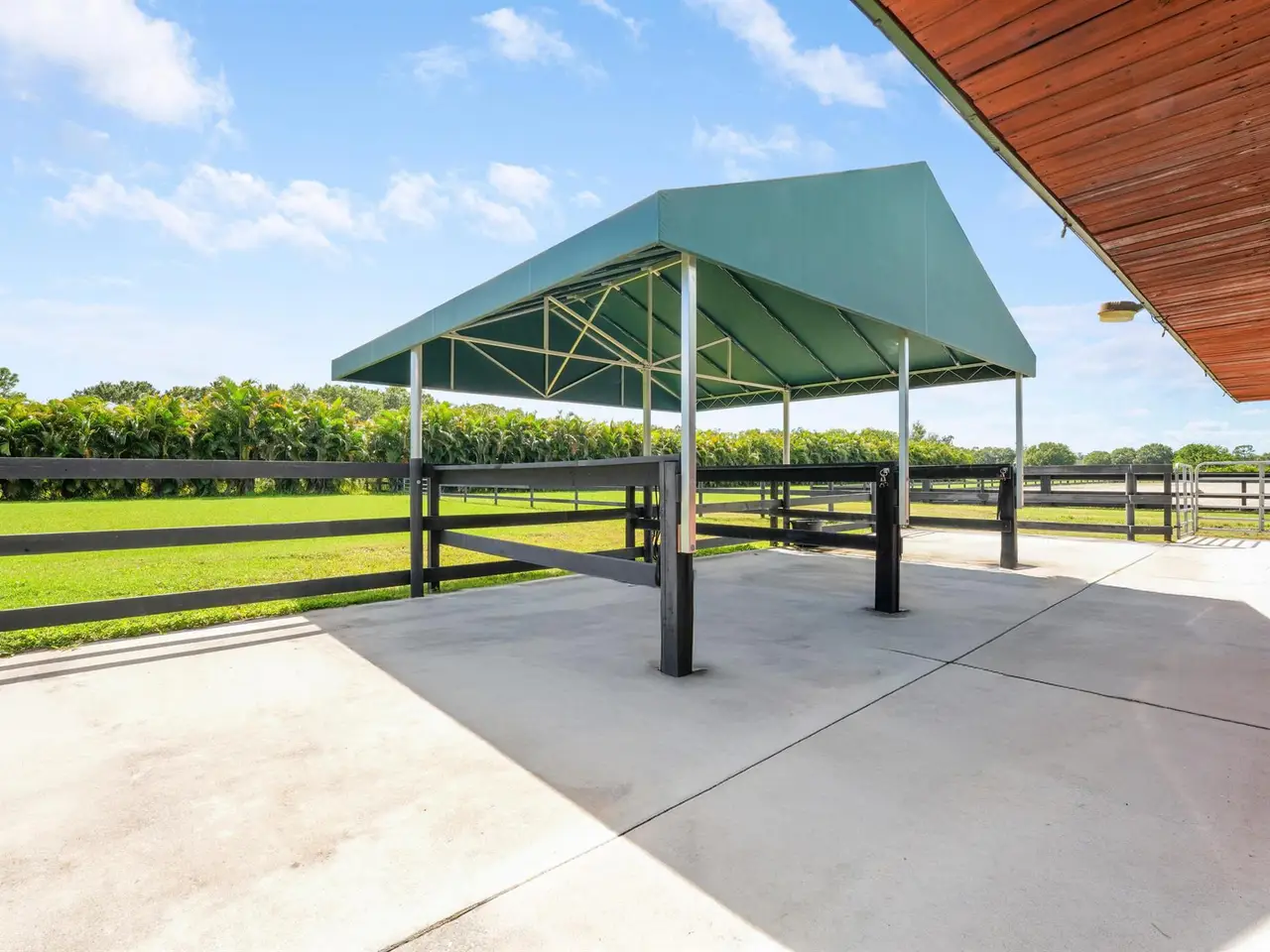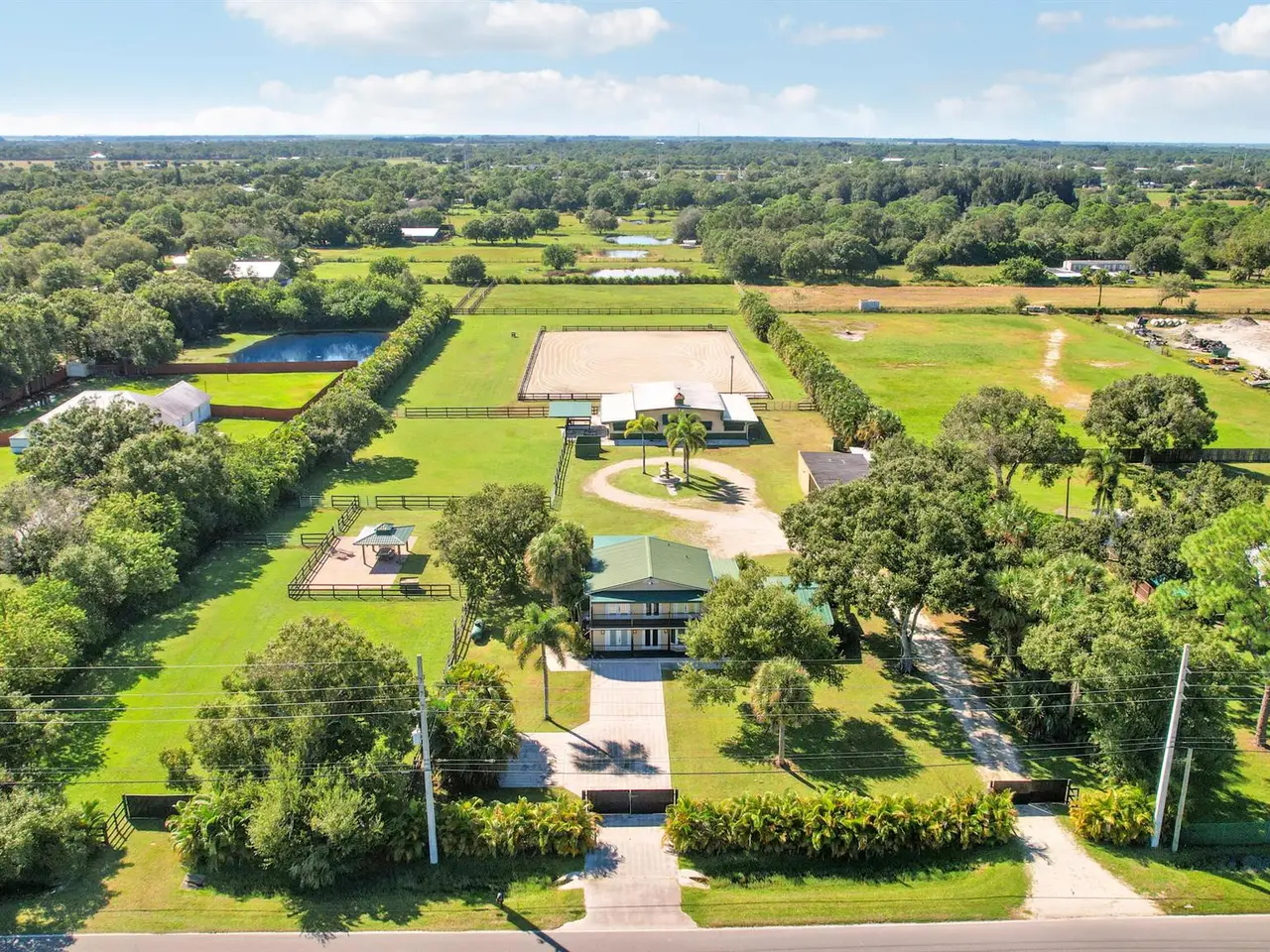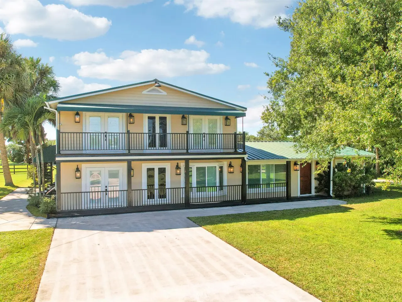Tucked behind mature Areca palms, this 5.34-acre estate offers total privacy and top-quality equestrian amenities. Fully fenced with an 8-stall barn featuring 14x14 stalls, fly spray system, fans, auto waterers, AC tack room, feed room, hayloft, and barn bath. The 200x300 sand arena has a clay base, water system, and two viewing decks. Includes five paddocks, cookhouse, gazebo, fountain, shaded turnaround, and ample trailer/RV parking with 100-amp and 50-amp hookups. The 5BD/3.5BA Key West-style home has a 2017 metal roof, impact windows, quartz kitchen, sauna, and generator. Minutes to I-95, Turnpike, 8 miles to St. Lucie Inlet, 7.5 miles to Treasure Coast Airport. - click on See More for more details.