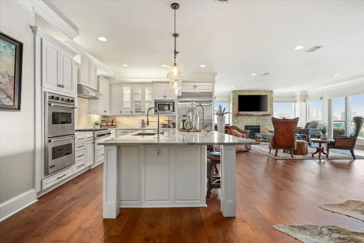 Rare 4-Bedroom Luxury Home in Villa de Leon, Fort Worth’s Riverfront Gem! Welcome to one of Fort Worth’s most exclusive residences - a rare 4-bedroom, 4.5-bath luxury condo in the iconic Villa de Leon, a premier boutique community with only 23 residences nestled along the scenic Trinity River. With just a handful of four-bedroom homes in the building, this is a truly an exceptional community. Step into a spacious, light-filled interior where floor-to-ceiling windows frame panoramic views of the river and downtown skyline. The open-concept living space features an elegant gas fireplace and opens to a private balcony - perfect for morning coffee or enjoying Fort Worth's fireworks and holiday lights. At the heart of the home is a chef's dream kitchen, showcasing an oversized island, custom-painted cabinetry, farmhouse sink, wine bar, and premium stainless-steel appliances - designed for entertaining in style. Each of the four bedrooms includes its own ensuite bath, ensuring ultimate privacy and comfort. The primary suite serves as a peaceful retreat, adorned with luxury finishes and spa-like amenities and beautiful views of downtown Fort Worth. Community Amenities Include: Resort-style pool and spa, Outdoor grilling & dining area, State-of-the-art fitness center, Elegant social lounge for private events, Secure underground parking & gated access, Located just minutes from Downtown Fort Worth's best dining, shopping, and cultural attractions, this home offers the perfect blend of urban sophistication and riverside serenity. Schedule your private showing today.