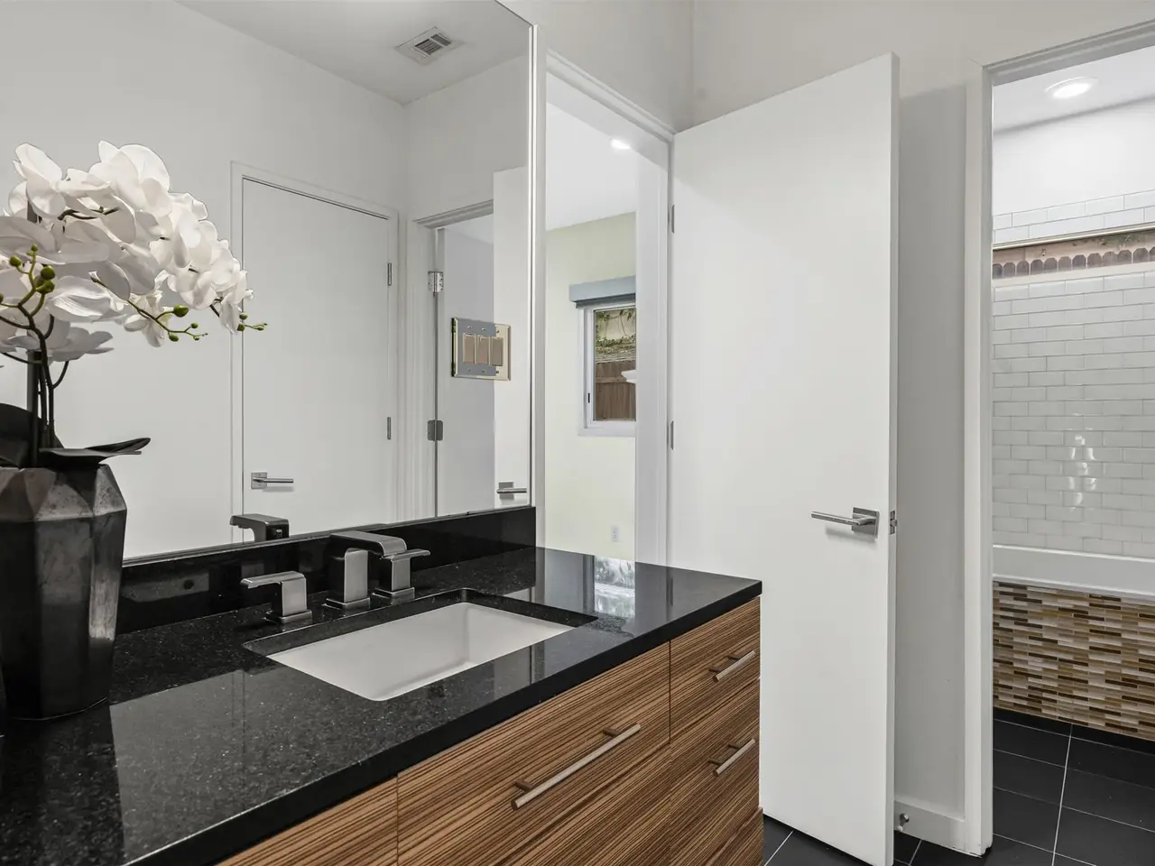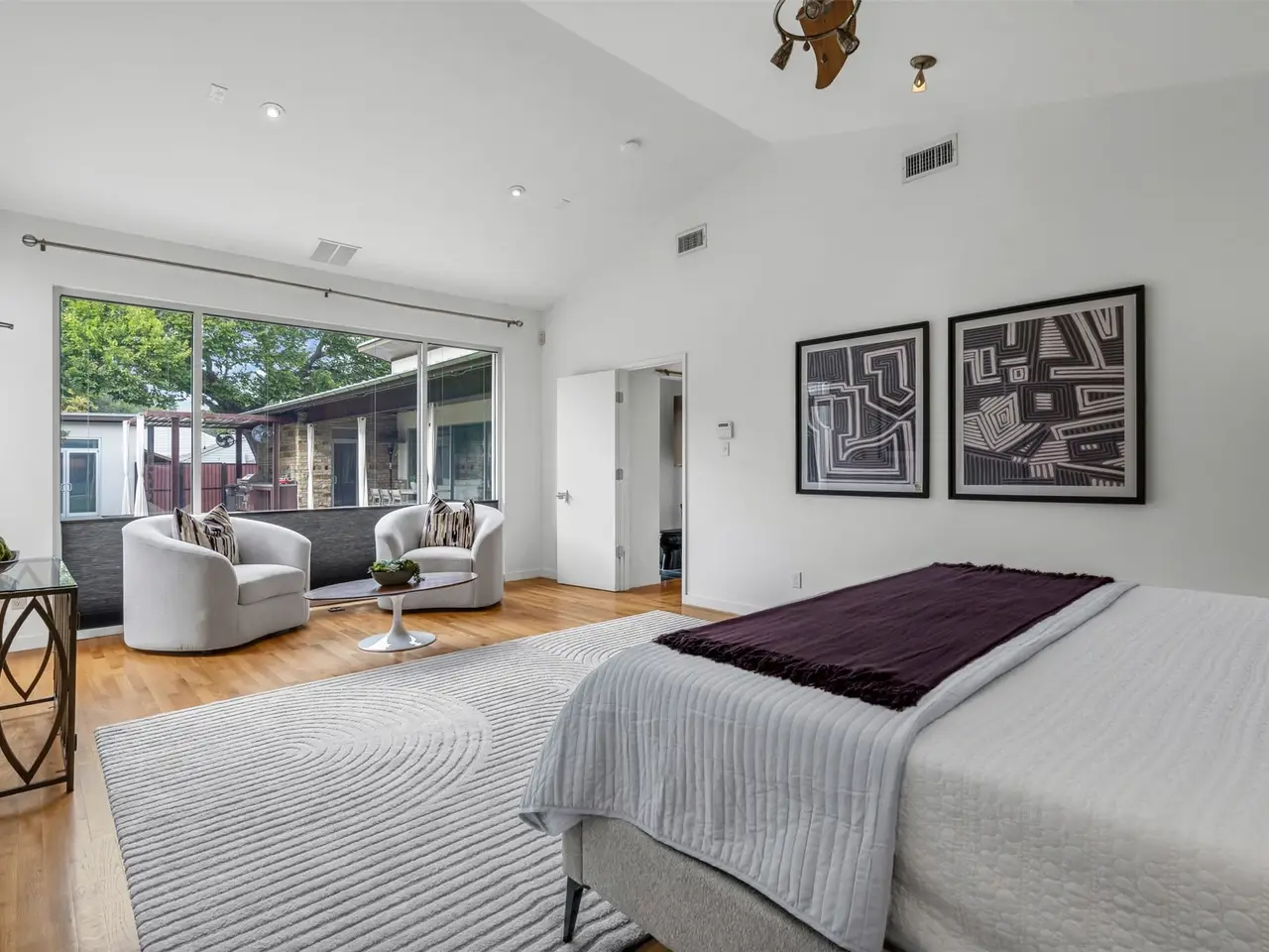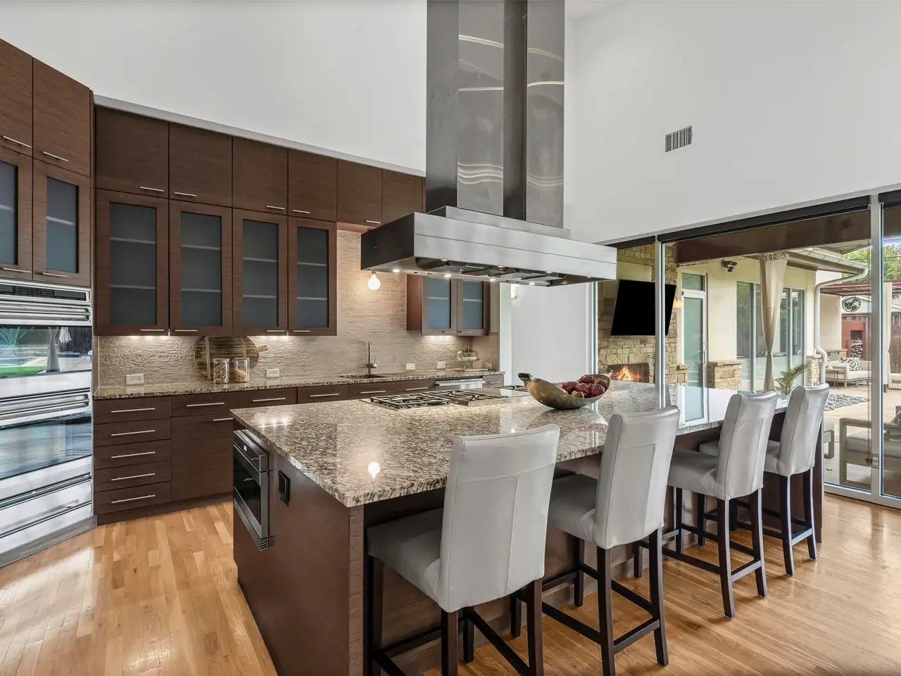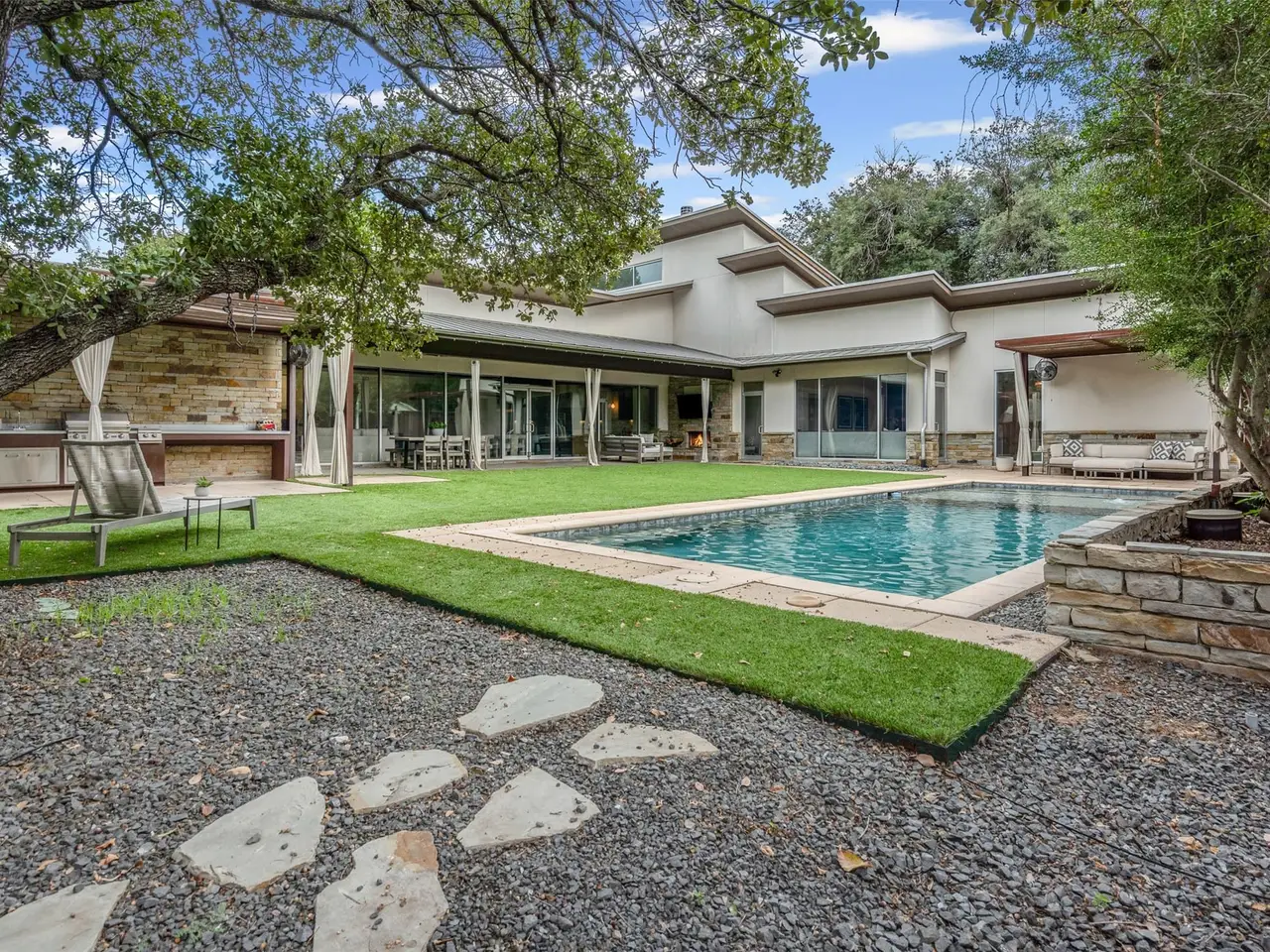 A must see. This beautiful contemporary home is just off the Trinity Trails in Crestwood! Exceptional custom built for todays lifestyle; this home has it all. Quality, great floor plan, perfect prestigious location and designed to impress. A wow entry leads into a great open living area, with soaring ceilings and a wall of glass showcasing the lovely backyard oasis. Chefs dream kitchen with commercial grade Wolfe appliances, built in fridge, indoor grill, pasta burner and more. An exposed 250 bottle wine closet has conditioned air and creates a beautiful wall of color. The generous primary ensuite has private access to the pool, tall ceilings, customized walk-in closet and a cedar closet. This beautiful primary bath has been reworked to include double shower with steam and top-of-the-line Calacatta marble. There are separate vanities, a soaking tub, great natural light with pool view. Two additional ensuite bedrooms plus a great flex room for second living space complete the first level. Bedrooms 4 and 5 are on the second level, with an additional jack and jill bath and an open study area with built-in cabinets and desks. Great personal space throughout this home. Designed for true outdoor living, the resort style backyard boasts a covered patio with fireplace, separate outdoor kitchen area, private lounging cabana just off the gorgeous pool and spa; bordered by artificial turf. The wood floors on level one are timeless. There are electric shades, exterior doors are commercial grade and style, tankless water heaters, smart home features, standing seam metal roof and foam encapsulation for efficiency. There is an additional 2 car garage and extended driveway for additional parking. All 3 garage floors are epoxy finished.