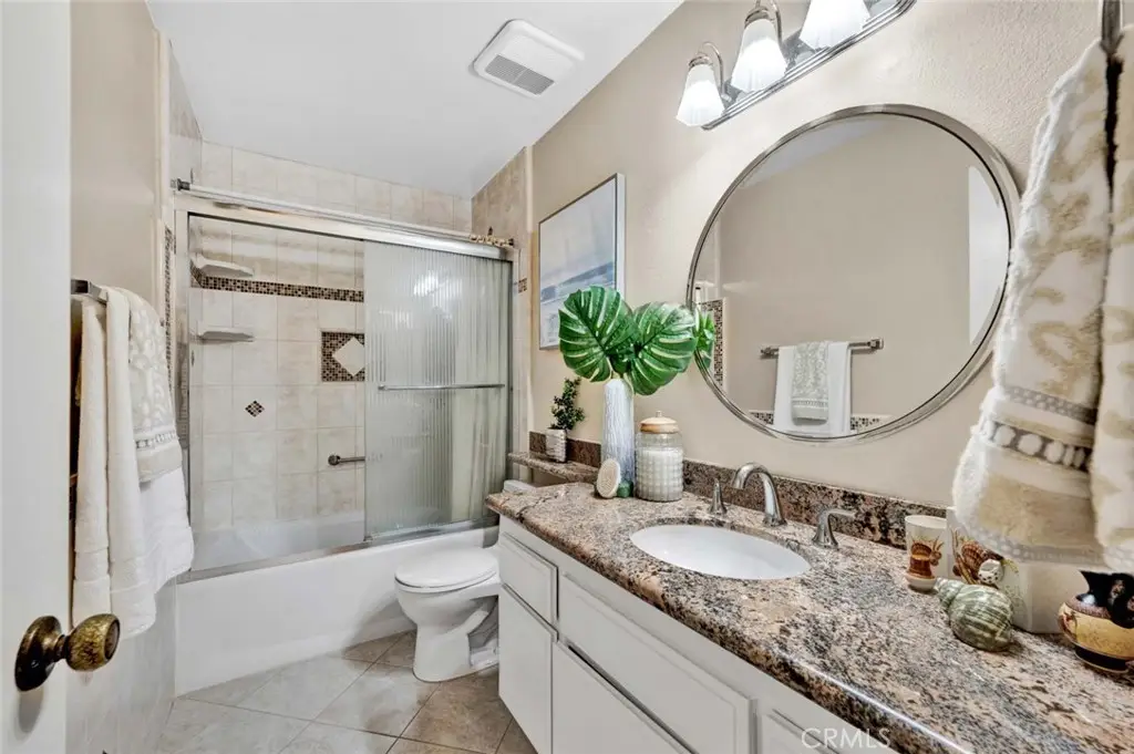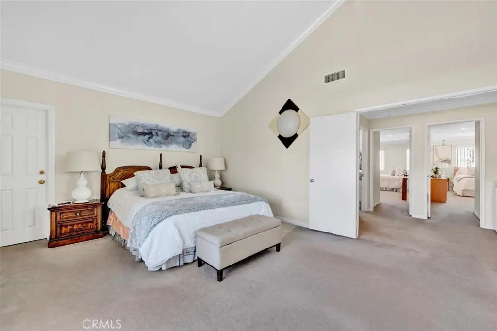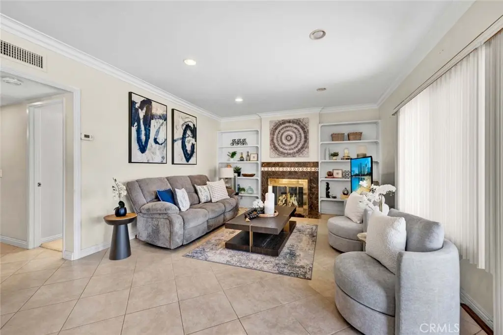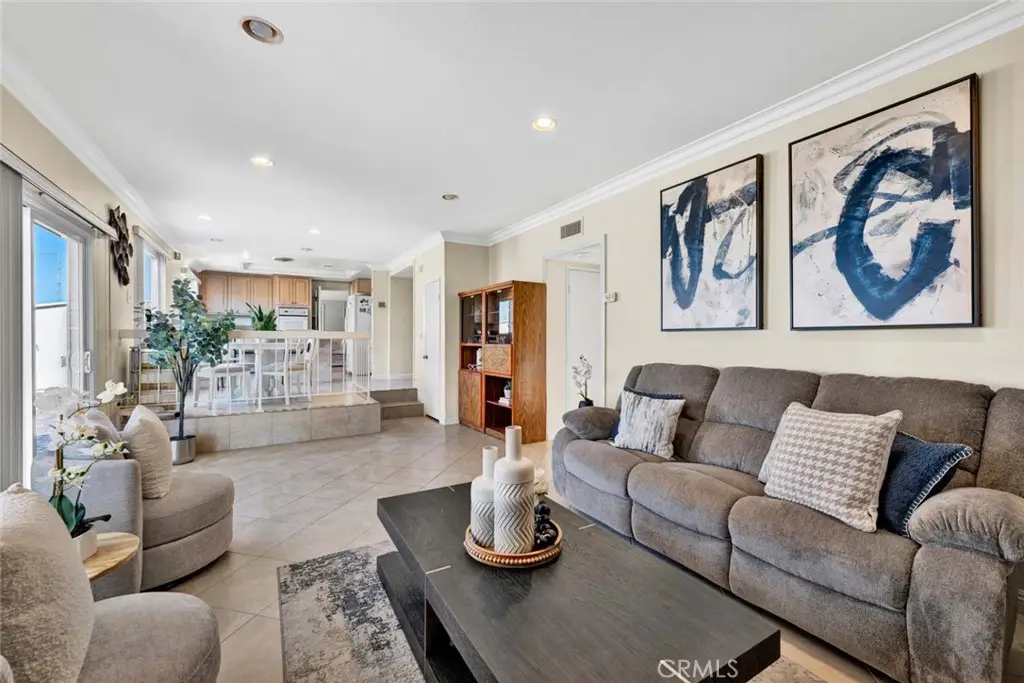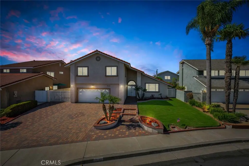 This meticulously maintained Award Estates home--on the market for the first time in 46 years--is located near the end of a quiet cul-de-sac in one of Fountain Valley's premier neighborhoods, just steps to the park and close to top-rated schools. It offers full double-gated RV parking and an oversized 2.5-car epoxy-finished garage plus 3-car driveway. The desirable floorplan includes a downstairs bedroom and bath, while two of the upstairs secondary bedrooms have been dramatically expanded with spacious retreat areas--one featuring a custom-organized walk-in closet and the other with dual full-size mirrored closets. The picture-perfect interior showcases vaulted ceilings, central A/C, newer furnace, dual pane windows, recessed lighting, mirrored closets, and extensive crown molding throughout. Exceptional curb appeal includes lush landscaping, tropical foliage, raised planters with lighting, Spanish title roof, and a beautifully patterned interlocking paver driveway and walkway with lighting leading to double entry doors with a Palladian transom window. Step into the grand tiled foyer with a soaring two-story ceiling and medallion inlay, then into the elegant formal living and dining rooms, enhanced by a custom mirrored wall. The remodeled kitchen is a chef's dream, featuring clean Corian countertops, breakfast bar, coffered ceiling, tile flooring, double ovens, gas cooktop, natural wood cabinetry with some pull-outs & large pantry, plus a secondary walk-in pantry cleverly built from the space under the staircase. The kitchen flows into a casual dining area that overlooks a striking family room with a fireplace, built-in shelving, and a wall of sliding glass doors leading to a serene backyard oasis. Enjoy the private outdoor retreat with interlocking paver patio, pristine artificial lawn, raised planters, tranquil fountain, and block wall fencing--perfect for entertaining or relaxing. Electricity has been added to both the front and rear yard for convenience. The luxurious primary suite offers a vaulted ceiling, retreat area, and two massive walk-in closets. All three bathrooms have been exquisitely remodeled with granite countertops, upgraded fixtures, and intricate tile work with inlays on the floors, walls, and full-height shower surrounds. The spa-like primary bath includes dual sinks, a sit-down vanity, and a tiled shower with a built-in bench. This exceptional, turnkey home truly has it all!