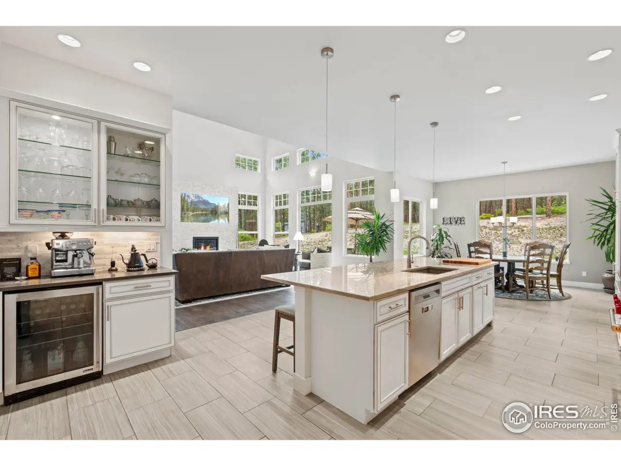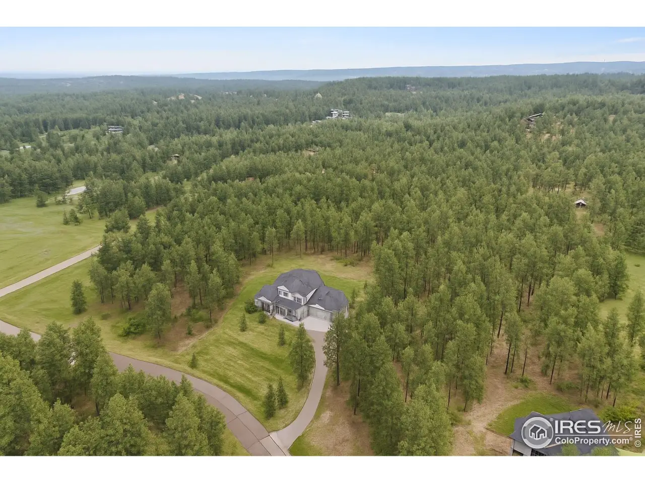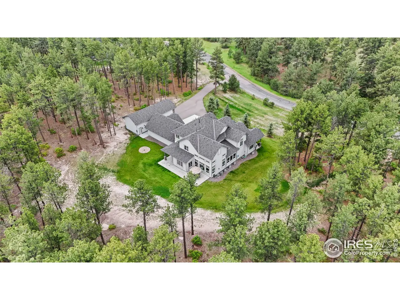 Experience Colorado living at its finest in this stunningly reimagined mountain-modern gem. This indoor-outdoor haven is tucked away on 3 private, wooded acres within the gated Deerfield Preserve. It's surrounded by towering pines, open space, & ample wildlife, including deer, wild turkeys, and serene tranquility. Yet, with swift access to I-25, Castle Rock, & southern Denver, you'll enjoy rural bliss without losing convenience. Step into a world of refined style where every detail caters to modern comforts. The main-floor primary suite is a haven, featuring a fireside sitting nook, a luxurious freestanding tub, a dual-head shower, sleek quartz finishes, & a spacious walk-in closet seamlessly connected to the laundry. Three generously appointed bedrooms with en-suite baths & a versatile loft complement each other. Hand-troweled walls add charm, while three HVAC zones ensure year-round comfort. The gourmet kitchen, a culinary dream, features quartz countertops, a marble backsplash, soft-close cabinetry, illuminated glass shelving, & a walk-in pantry. Dual laundry rooms simplify daily tasks, & a custom Morningstar elevator provides connectivity throughout all levels. A new roof, installed in 2024, adding peace of mind. The vast 3,000-sq-ft finished basement, with soaring 10-ft ceilings, offers endless possibilities: a fifth bedroom with en-suite bath, a built-in bunk room, & ample space for a home theater, gym, or game room. Outside, a covered patio opens to a strikingly landscaped, irrigated yard, where Colorado's lively seasons unfold. Storage & utility are unmatched, with a heated four-car attached garage & a separate heated 50' deep RV garage/outbuilding-complete with 50-amp service-ideal for adventure gear or hobbies. Move-in ready & exceptionally rare, this 3-acre estate blends unparalleled artistry, luxurious upgrades, & natural splendor. Seize the opportunity to claim this serene retreat, just moments from Castle Rock's premier dining, shopping, golf, & parks.