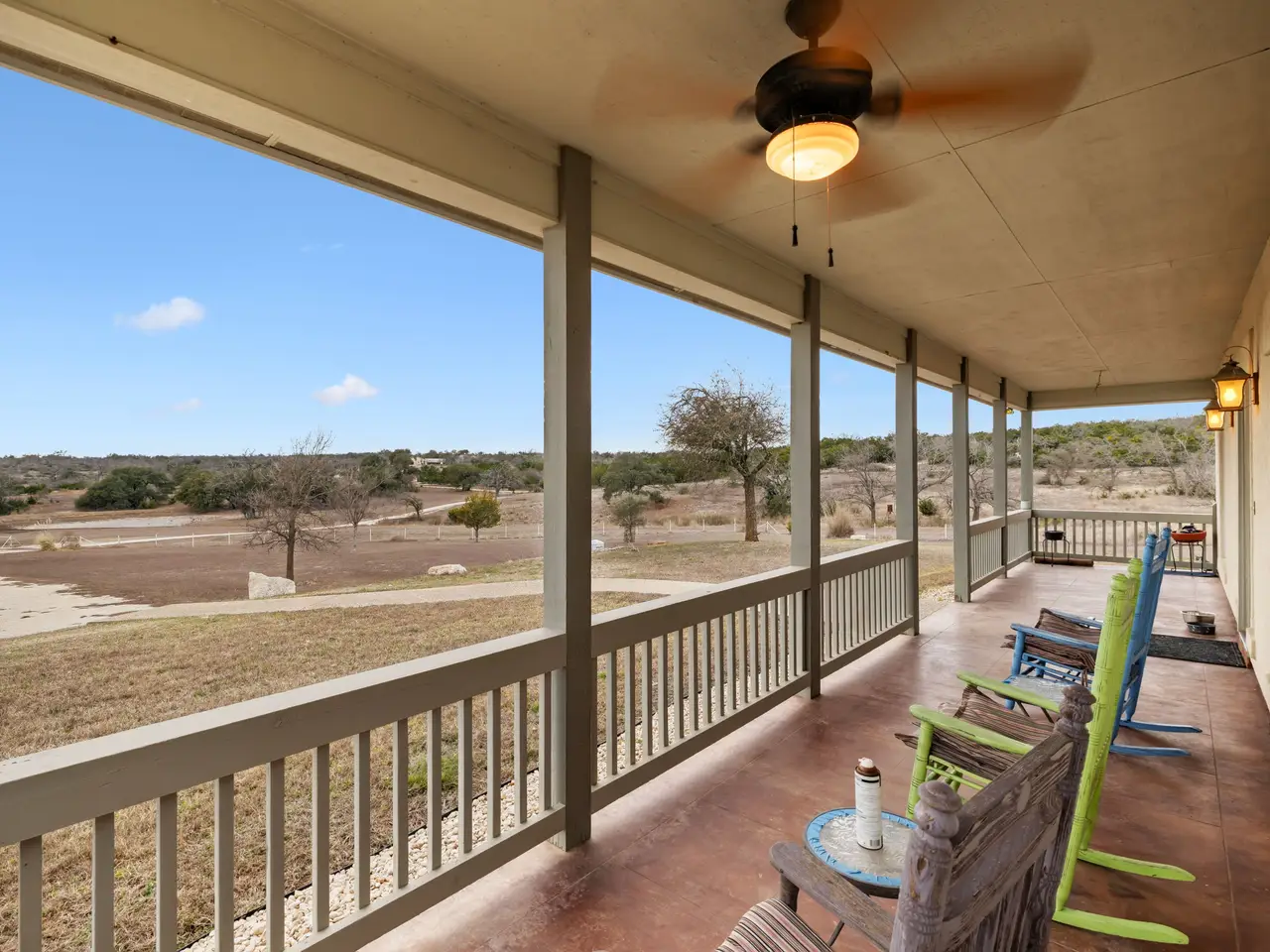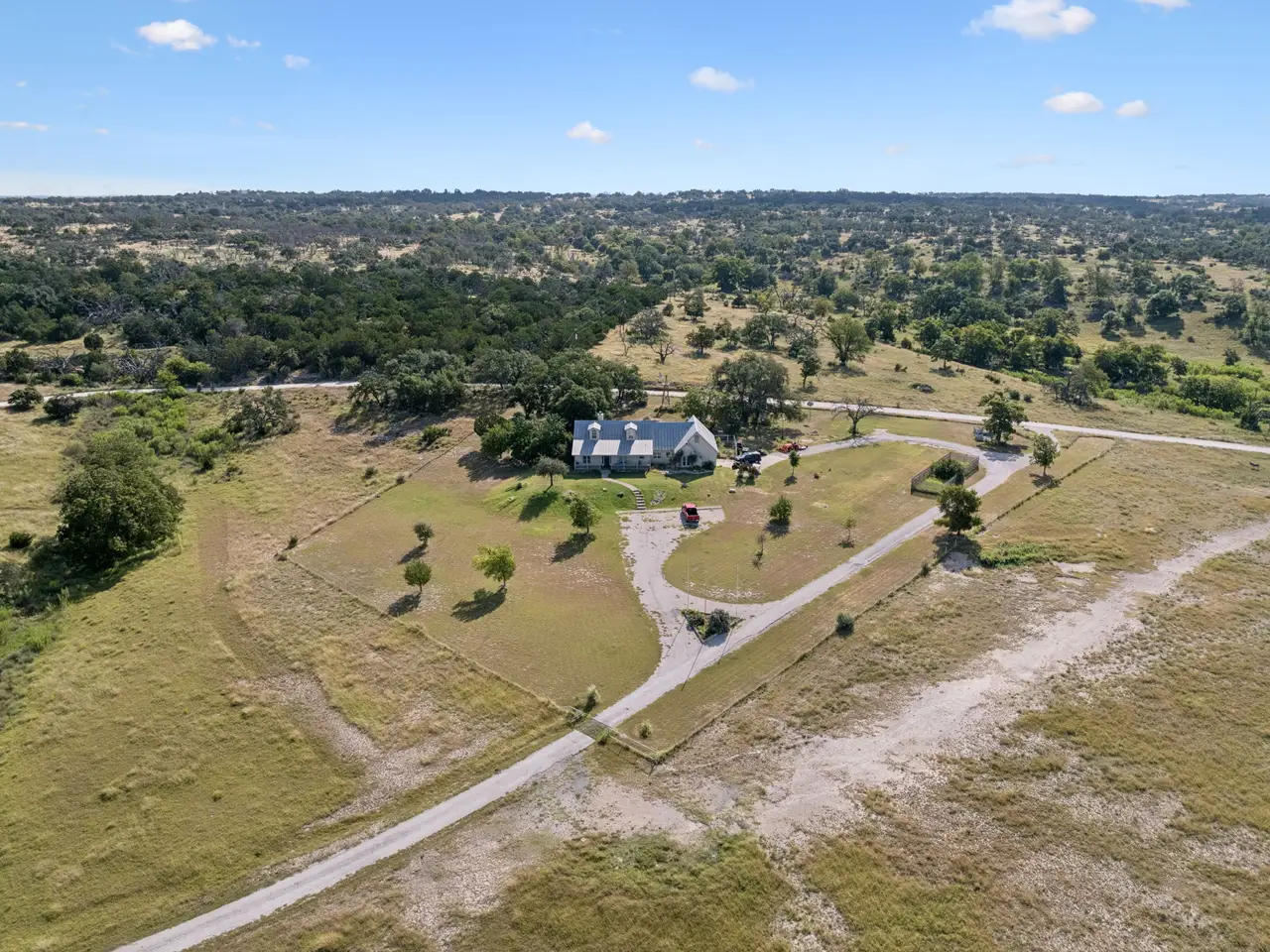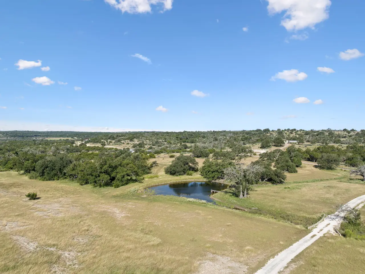 Nestled on 39 acres of gently rolling Hill Country terrain, this exceptional 4-bedroom, 2-bathroom home offers both comfort and functionality. The thoughtfully designed split floor plan includes a dedicated office, formal dining room, and a spacious living area with soaring ceilings and a cozy fireplace. The heart of the home is a chef's dream kitchen featuring stunning quartzite countertops, a large island, and two oversized pantries for ample storage. A mudroom off the two-car garage adds convenience. Retreat to the primary suite, where two oversized walk-in closets provide plenty of space. Step outside to enjoy the expansive screened-in porch - perfect for soaking in the peaceful surroundings. The property is fully fenced and cross-fenced, complete with a barn, two wells, and a spring-fed pond with a beautiful water feature. Ideal for those seeking privacy, space, and the beauty of the Hill Country, this property is a rare find!