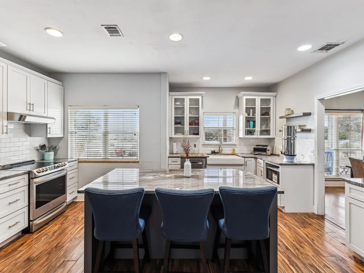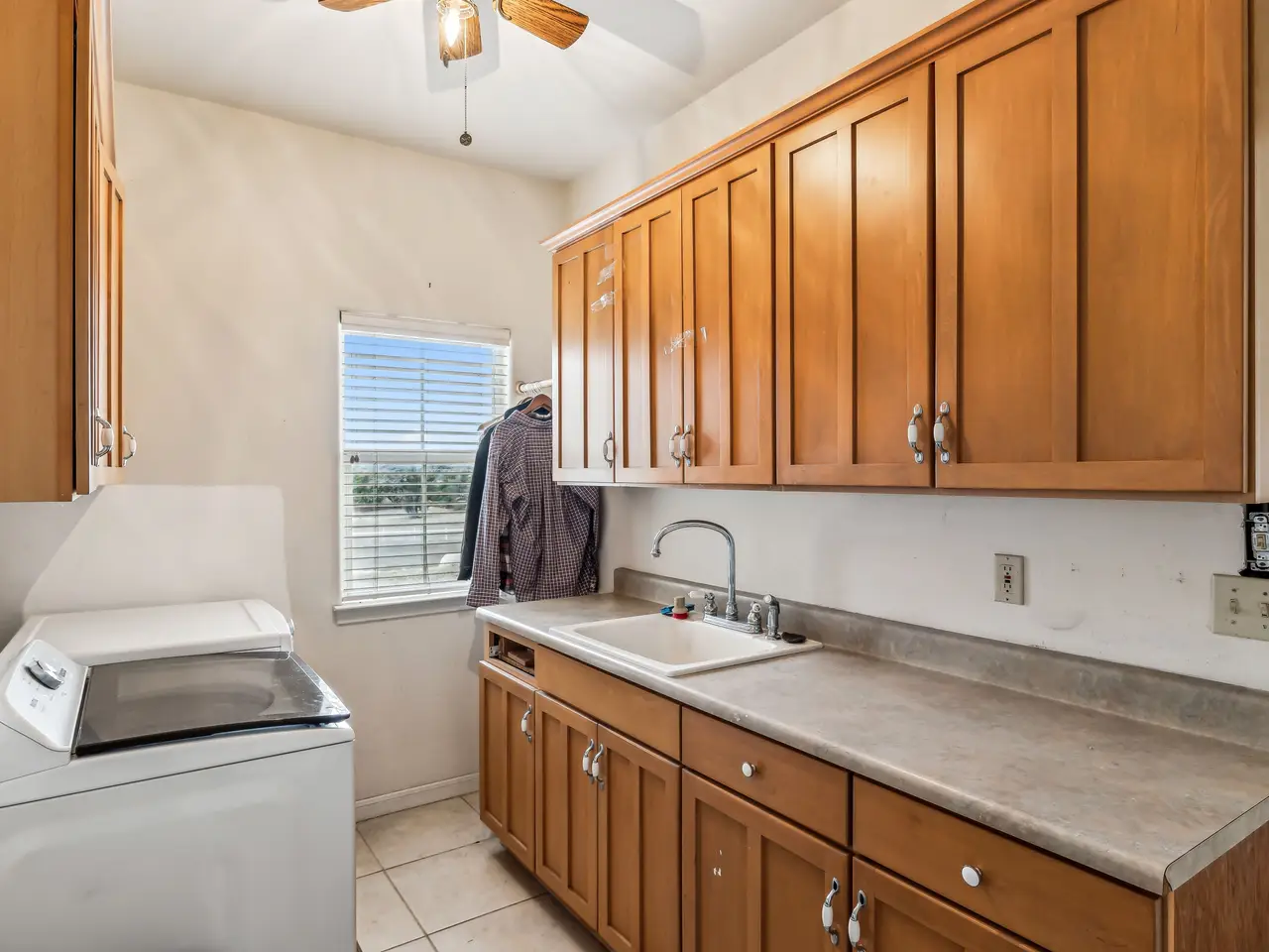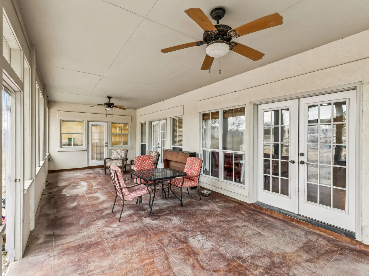 Nestled on 39 acres of gently rolling Hill Country terrain, this exceptional 4-bedroom, 2-bathroom home offers both comfort and functionality. The thoughtfully designed split floor plan includes a dedicated office, formal dining room, and a spacious living area with soaring ceilings and a cozy fireplace. The heart of the home is a chef's dream kitchen featuring stunning quartzite countertops, a large island, and two oversized pantries for ample storage. A mudroom off the two-car garage adds convenience. Retreat to the primary suite, where two oversized walk-in closets provide plenty of space. Step outside to enjoy the expansive screened-in porch - perfect for soaking in the peaceful surroundings. The property is fully fenced and cross-fenced, complete with a barn, two wells, and a spring-fed pond with a beautiful water feature. Ideal for those seeking privacy, space, and the beauty of the Hill Country, this property is a rare find!