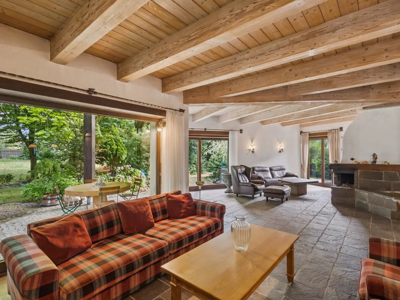 This high-quality detached house impresses with its spacious layout, classic country house architecture and versatile usage options - ideal for discerning buyers looking for an elegant yet future-proof home. The entrance area opens onto a clearly structured floor plan with flowing transitions between the living areas. Generous window areas create bright, light-flooded rooms and create a harmonious connection to the spacious outdoor area. A fireplace in the living area sets an architectural accent and provides additional comfort on cooler days. On the upper floor, there are three rooms that can be used flexibly - ideal as bedrooms, children's rooms or workspaces. One of the rooms is equipped with an integrated dressing area. A well-kept daylight bathroom and three balconies with different orientations underline the high-quality living situation. A special feature of the house is the separate granny apartment with its own entrance. It is ideal for guests, adult family members, au pairs, care workers or for commercial use - and offers a high degree of privacy and flexibility. The spacious plot opens up a wide range of design options - whether as a high-quality landscaped garden, a family-friendly play area or a quiet retreat. Due to its size, there is also potential for dividing the plot or building on it, which makes the property particularly interesting for investors or families with expansion plans. In terms of design, this property offers numerous prospects: whether stylish modernization or further development in keeping with the existing country house style - it offers a solid architectural basis for individual concepts. A spacious double garage rounds off the offer and provides comfortable space for vehicles, bicycles and other possible uses.