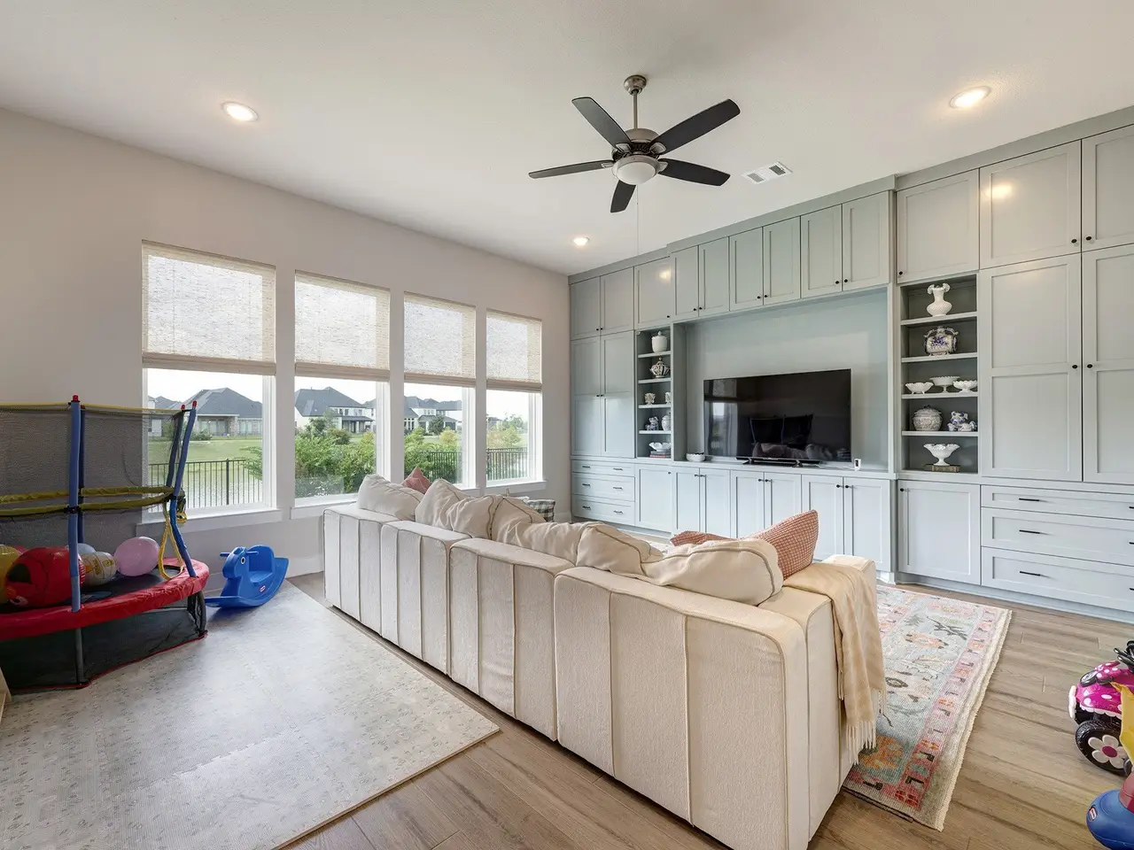 MUST-SEE LUXURY WATERFRONT HOME w/4 bedrooms, 3.5 baths, and designer upgrades throughout. The formal dining room and private study w/French doors and built-ins provide spaces for both entertaining and productivity, while the open-concept family room impresses w/high ceilings, walls of windows, and abundant natural light. The chef’s kitchen is a true showpiece with its oversized island, high-end appliances, and spacious walk-in pantry, designed for both everyday living and hosting gatherings. The primary suite is a private retreat, featuring a spa-like bath, oversized walk-in closet, and serene waterfront views. Just off the kitchen, a versatile game or media room offers the perfect setting for movie/game nights. Outdoors, a covered patio with automatic screens overlooks the water creating an ideal space for relaxation or entertaining guests. BONUS: Whole house Kohler generator and water filtration + softener system. Per Sellers