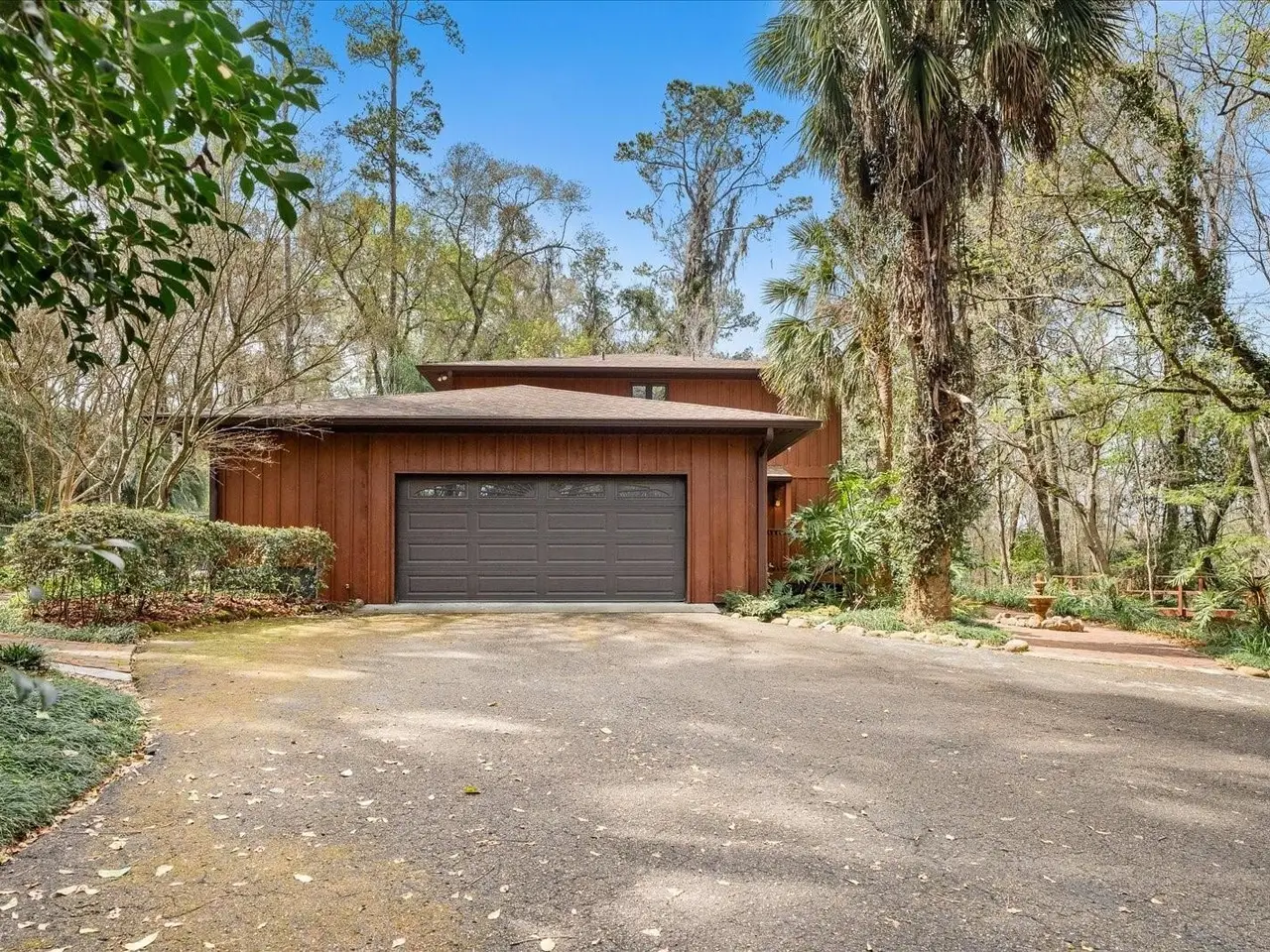 Nestled in Shands Woods, one of Gainesville’s best-kept secrets, this custom-built John Van Mills home sits on over 2.5 acres, seamlessly blending privacy, nature, and convenience—all less than a mile from the University of Florida. Overlooking Hogtown Creek on a secluded lot, this home is a true retreat. Inside, the breathtaking two-story family room features soaring cedar batten and board walls, evoking the warmth of a mountain lodge. A wood-burning Spade stone fireplace serves as the heart of the space, perfect for cozy gatherings or quiet relaxation. The first floor also boasts a formal living room with bay windows overlooking Hogtown Creek, a formal dining room with built-in cabinetry and picturesque outdoor views, a spacious kitchen, and the primary suite. The kitchen includes a double oven, cooktop, center island, and a generous eat-in dining area that opens through French doors to the pool. The first-floor primary suite is a peaceful retreat with views of the wooded yard and pool. Its spa-like bathroom features a soaking tub, walk-in shower, split vanities, and a unique terrarium that brings nature indoors. Upstairs, you'll find five spacious bedrooms, a large office, and a dedicated game room. Two bedrooms have private en suite baths, while the remaining three share a well-sized bath with dual vanities and a shower/jetted tub. One bedroom and the game room open onto a private deck overlooking the pool, while the others enjoy scenic views of the creek and preserve. A spiral staircase from the game room leads to the laundry room. The game room also offers versatility, serving as a potential seventh bedroom, playroom, hobby space, or quiet retreat. Outside, your private oasis awaits—a 30,000-gallon pool surrounded by lush landscaping and total seclusion. A staircase leads to Hogtown Creek, where protected wetlands ensure lifelong privacy—you’ll never have front-door neighbors. This home has been meticulously maintained and thoughtfully updated, featuring new flooring, fresh interior and exterior paint, a new roof (2024), and water heaters (2022). Completely move-in ready, it offers both timeless charm and modern upgrades. Located in the sought-after, no-HOA enclave of Shands Woods, this home offers the best of both worlds—a serene, natural setting just minutes from UF, downtown, Shands, and the VA. Experience the beauty, tranquility, and uniqueness of this exceptional home. Schedule your showing today!