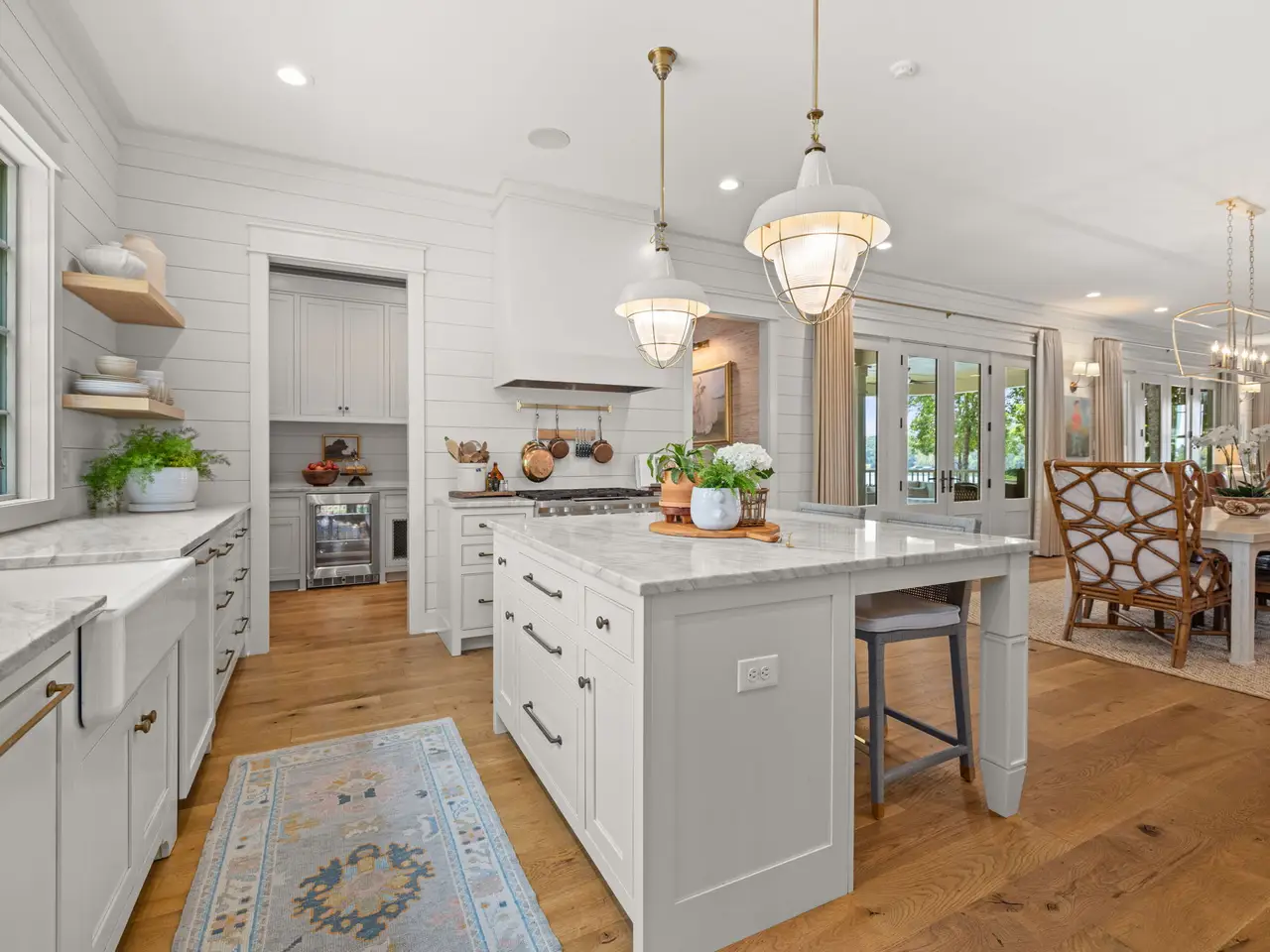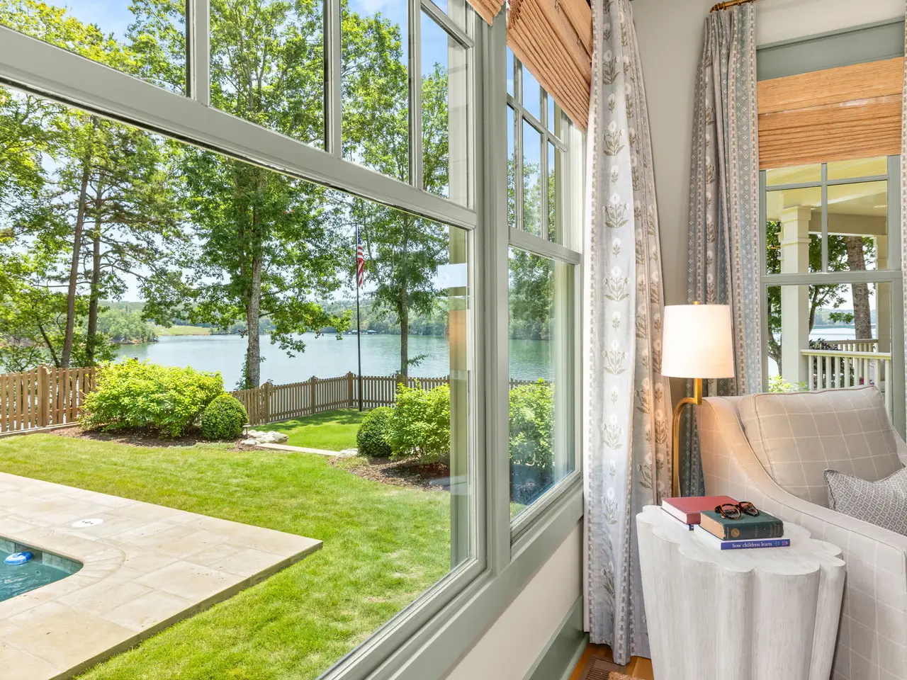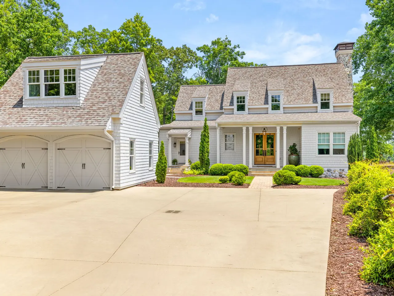 Southern coastal charm meets Lake Lanier luxury in this exceptional custom-designed estate, perfectly positioned on a private point lot surrounded by water and breathtaking lake views. Tucked away behind private gates and down a long, secluded driveway, this stunning home offers the ultimate in resort-style living, just minutes from the Chattahoochee Country Club and its private marina. Designed by renowned architect Stephen Fuller, this four-bedroom, four and a half bath residence blends timeless architecture with modern luxury. The home features a hardy shake and river rock exterior, beautifully landscaped shoreline with river rock detailing, and year-round views from nearly every room. A heated pool, level fenced backyard, covered back porch, and two detached two-car garages complete the outdoor oasis. Inside, the open-concept layout is filled with natural light and framed by walls of glass, maximizing the lake views. The two-story foyer opens into a vaulted great room with a stone fireplace and an elegant dining space. The gourmet kitchen is a chef's dream, with quartzite countertops, a large island, custom cabinetry, stainless steel appliances including a six-burner gas range, and a spacious prep pantry that doubles as a bar and entertaining space. The main-level primary suite is a serene retreat with views of the pool and lake, and a spa-inspired bath featuring a soaking tub, dual vanities, custom shower, and two walk-in closets. A second main-level bedroom and full bath offer flexibility for guests or a home office. Upstairs, a central gathering area leads to two generous en-suite bedrooms with custom closets. Additional highlights include a welcoming office area off the kitchen, a large laundry room, and an unfinished daylight terrace level with approximately 2168 square feet ready to be customized. Modern conveniences abound, with a whole-house generator, natural gas for cooking, fireplaces, heating, and pool, plus an irrigation system, professional landscaping, and outdoor lighting. This home is a rare opportunity to enjoy the best of lakefront living, thoughtfully designed for both everyday comfort and exceptional entertaining.
