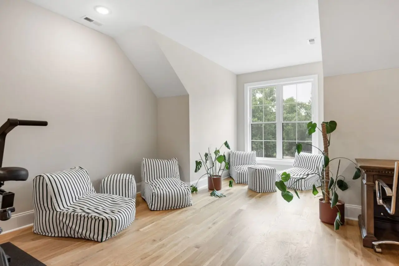 Perfect for those seeking Space, Privacy, and a connection to nature, this 5.1 acres features a Historic Stone Wall and CREEK RUNNING THE ENTIRE LENGTH - Ideal for Recreation, Relaxation, and added Seclusion. With possible room to expand, the land across the creek offers potential for an Accessory Dwelling Unit (ADU) with separate perk site. Inside, the soaring 14' Ceilings and an open floor plan create an airy, inviting space. Custom Cabinetry and lightly stained hardwood floors flow throughout complementing the clean, modern aesthetics. A Wood Burning Fireplace, easy conversion to gas if desired, anchors the main living area. All bedrooms located on main level, along with a designated office. Upstairs find a large Bonus Room with Wet Bar and an additional bonus area could be for media room or hobby room, currently being used as a home spa-gym.