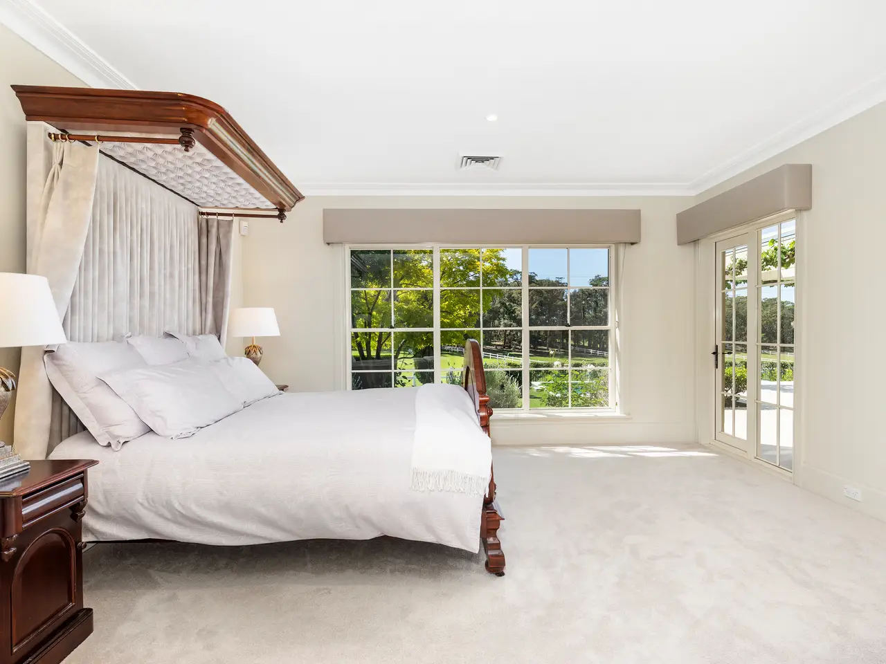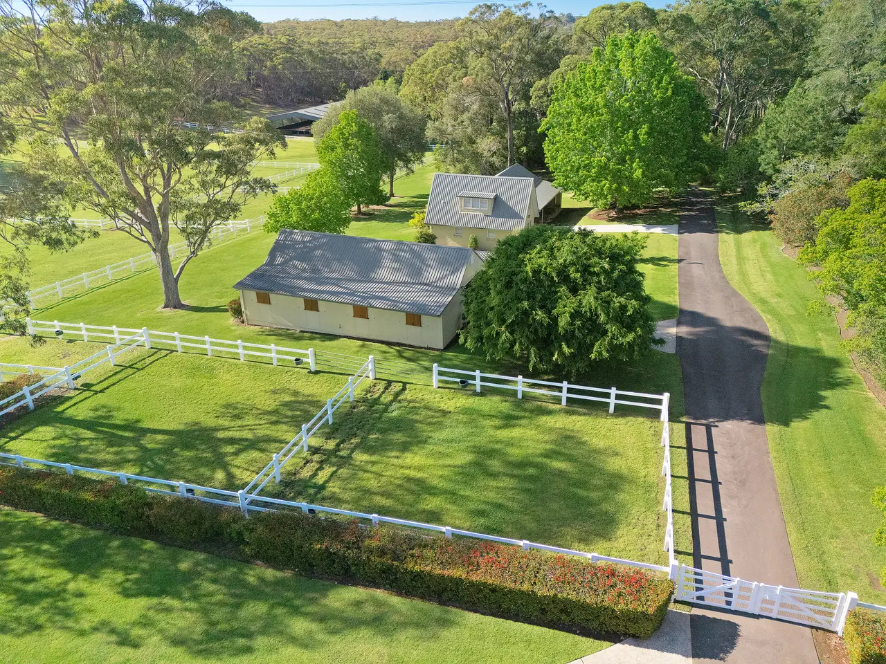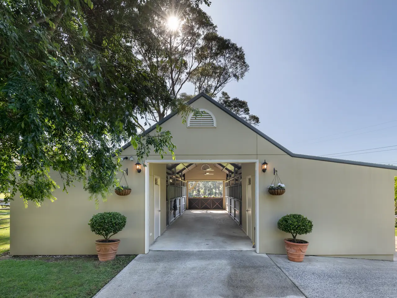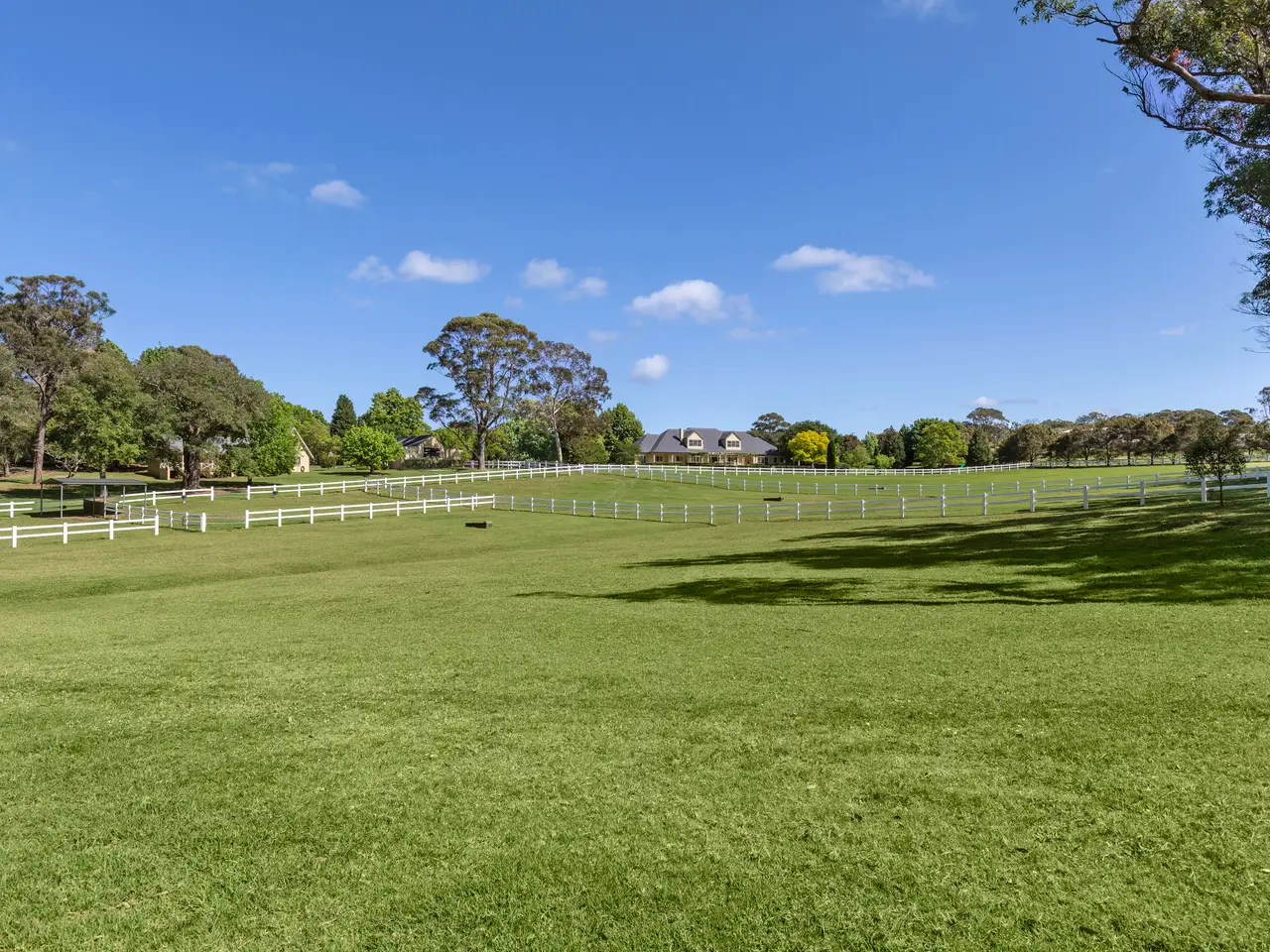 Come home to your own personal paradise with this grand executive property, providing a blue-chip lifestyle in a setting as flawless as its finish. Nestled along a private road, and surrounded by glorious green views over the grounds, it offers contemporary comfort beyond reproach – boasting a beautiful family residence complete with sunlit poolside entertaining, a magnificent full-sized equestrian arena plus a stable block, and a secluded guest cottage or groom's quarters – while everything you need from the outside world is only minutes away. – Elegant and idyllic on a fully fenced 15-acre (6.07ha) parcel – Gated intercom entry to driveway flanked by white rose gardens – Spacious c.2000 home bathed in morning sunshine – just one owner – Four bedrooms plus oversized study, formal rooms, family zone – Huge additional games/media room upstairs with projector and screen – French doors to all-seasons rear patio set above the saltwater pool – Undercover equestrian arena designed for elite level training – Six-horse stable block, feed + tack rooms and paddocks in addition – Impressive light-filled marble kitchen with Miele appliances throughout – King-sized master quarters with dressing room and couple's ensuite – Family bathroom featuring a shower, twin basins and spa bath – Stunning high ceilings, ducted air-conditioning, back-to-base alarm – Mud room plus dedicated dogs' room, wine cellar, double garage – One-bedroom secondary accommodation located alongside stables – Two water tanks, bore water, second DLUG/workshop, three-bay shed – Rare and exclusive opportunity less than 1km from Galston village – Just 1.8km to Galston Public School, 2.6m to Galston High School – Approx. 12km to Hornsby station and 13km to Cherrybrook Metro