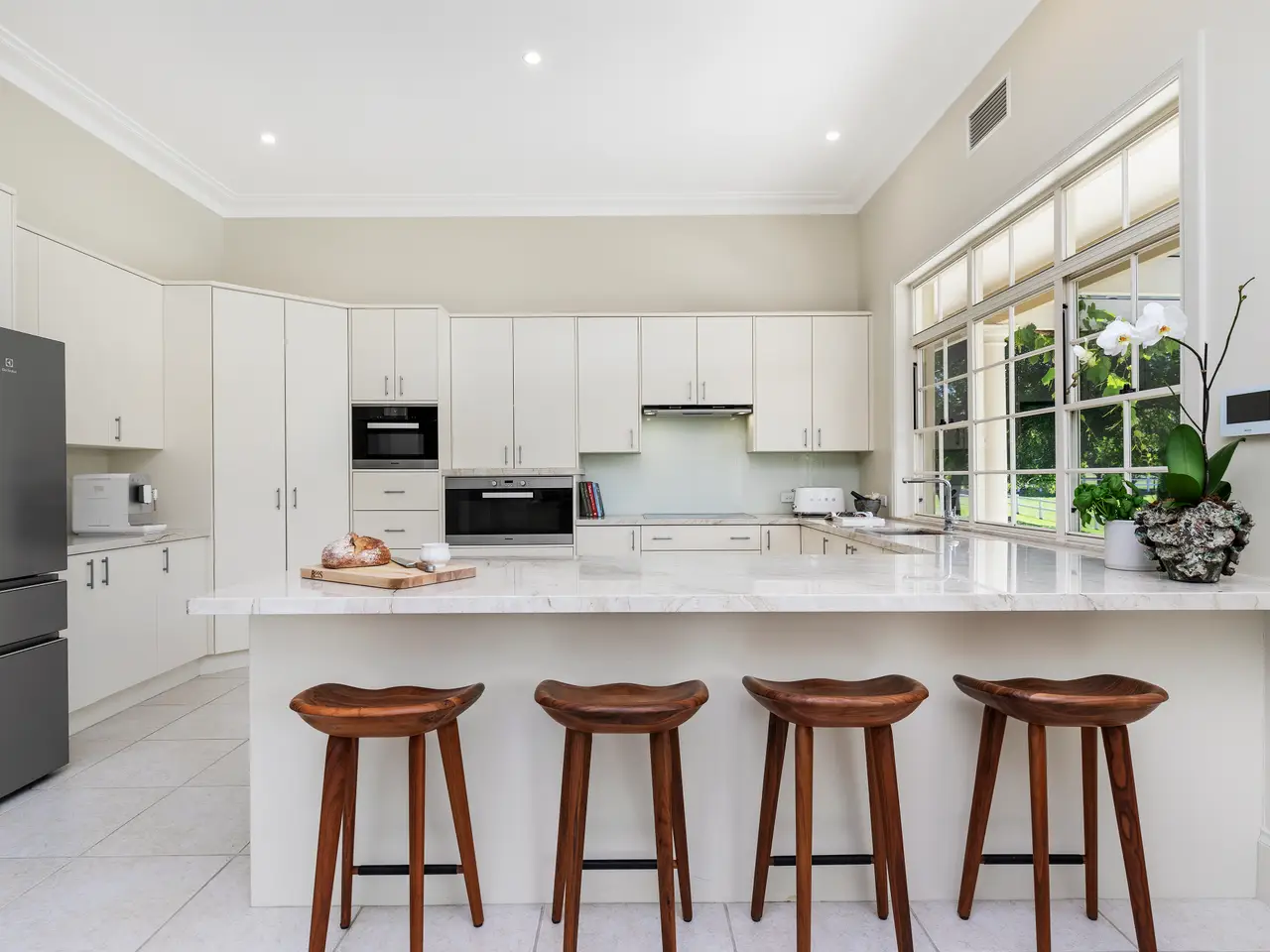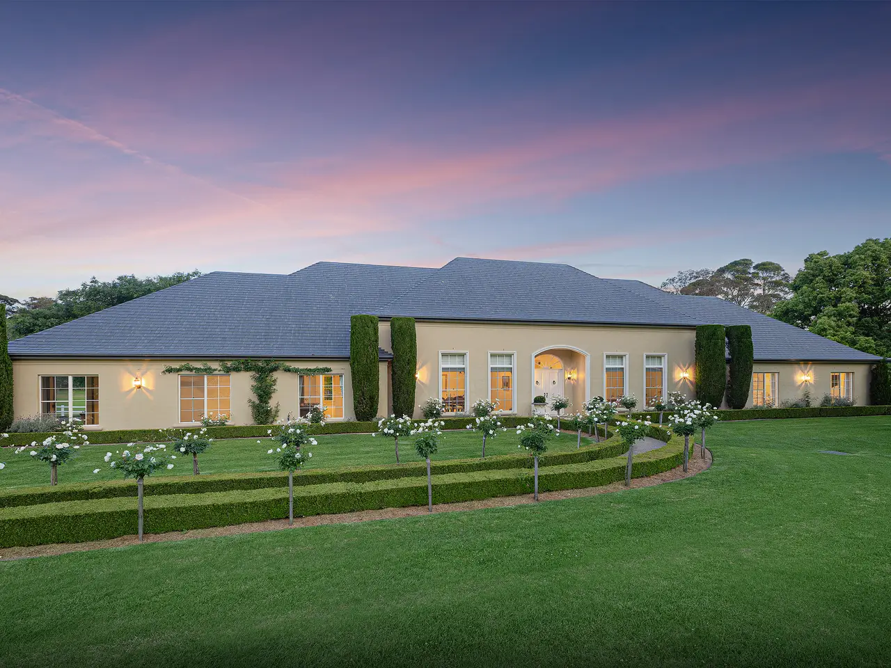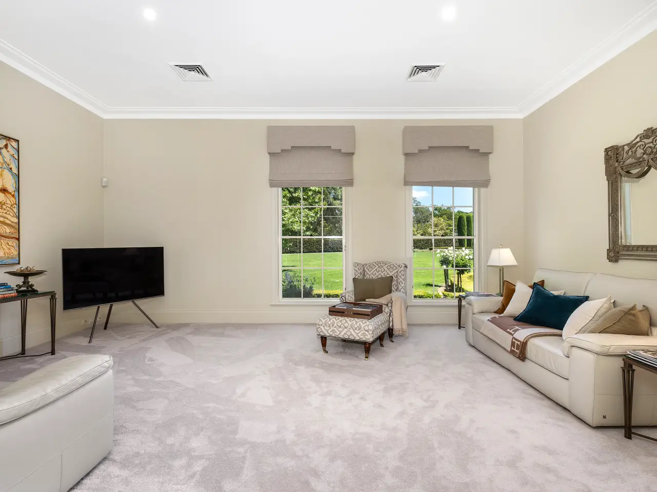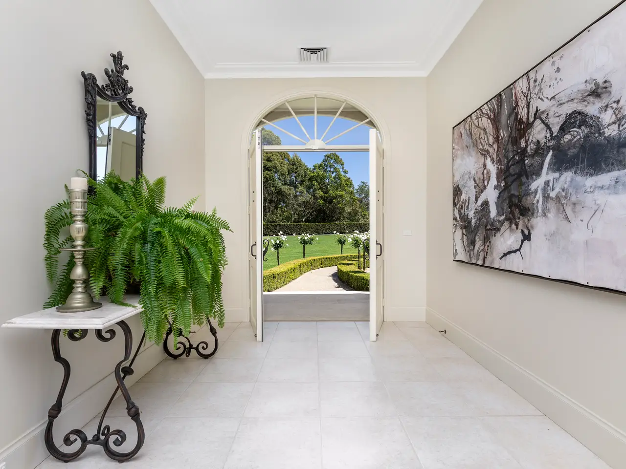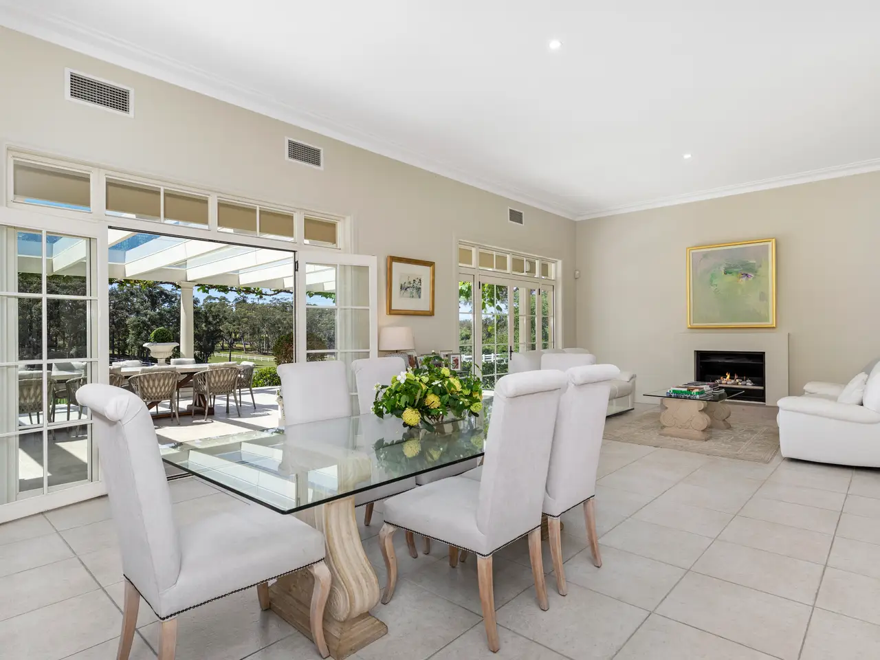 Come home to your own personal paradise with this grand executive property, providing a blue-chip lifestyle in a setting as flawless as its finish. Nestled along a private road, and surrounded by glorious green views over the grounds, it offers contemporary comfort beyond reproach – boasting a beautiful family residence complete with sunlit poolside entertaining, a magnificent full-sized equestrian arena plus a stable block, and a secluded guest cottage or groom's quarters – while everything you need from the outside world is only minutes away. – Elegant and idyllic on a fully fenced 15-acre (6.07ha) parcel – Gated intercom entry to driveway flanked by white rose gardens – Spacious c.2000 home bathed in morning sunshine – just one owner – Four bedrooms plus oversized study, formal rooms, family zone – Huge additional games/media room upstairs with projector and screen – French doors to all-seasons rear patio set above the saltwater pool – Undercover equestrian arena designed for elite level training – Six-horse stable block, feed + tack rooms and paddocks in addition – Impressive light-filled marble kitchen with Miele appliances throughout – King-sized master quarters with dressing room and couple's ensuite – Family bathroom featuring a shower, twin basins and spa bath – Stunning high ceilings, ducted air-conditioning, back-to-base alarm – Mud room plus dedicated dogs' room, wine cellar, double garage – One-bedroom secondary accommodation located alongside stables – Two water tanks, bore water, second DLUG/workshop, three-bay shed – Rare and exclusive opportunity less than 1km from Galston village – Just 1.8km to Galston Public School, 2.6m to Galston High School – Approx. 12km to Hornsby station and 13km to Cherrybrook Metro