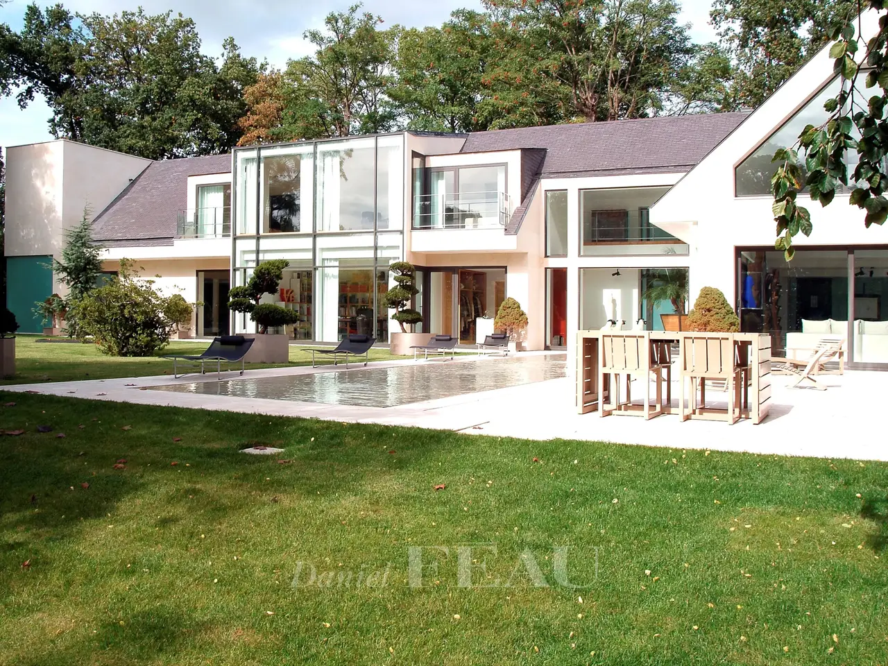 This exceptional architect-designed property bathed in sunshine is set in 3782 sqm of peaceful south-facing landscaped grounds near Saint-Cloud golf course. Offering about 800 sqm of superb living space, it includes a spacious garden-level living/reception room with a fireplace, a dining room, a generously proportioned equipped kitchen, a study (all opening onto a terrace and the garden), and an indoor swimming pool with a jacuzzi and a shower room. The upper floor comprises a recreation room or sitting room, a master suite with a bathroom opening onto a terrace, and three further bedrooms, two with bathrooms and opening onto balconies. On a basement with a home cinema, a utility room and technical premises. The property also benefits from a 4-car garage.