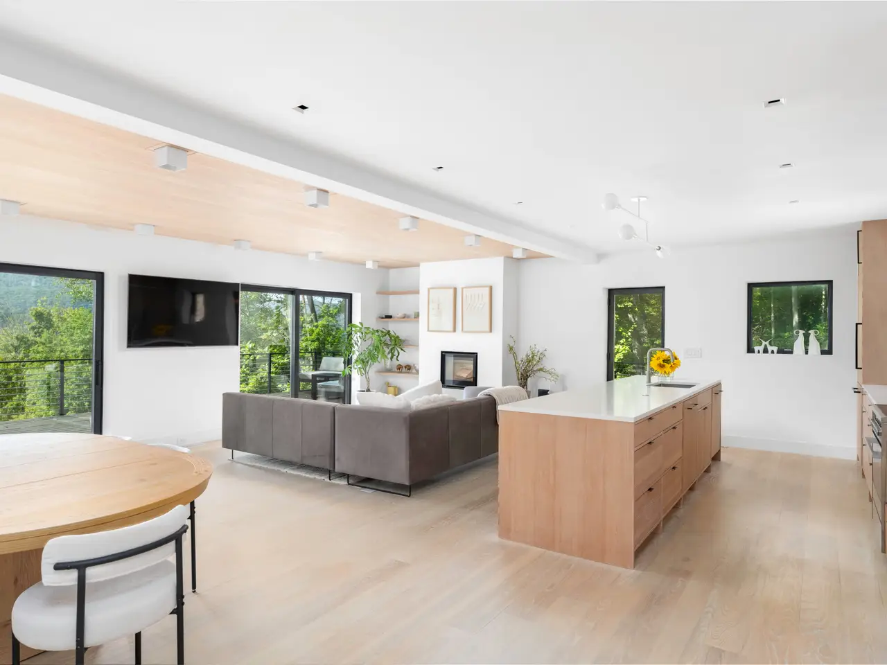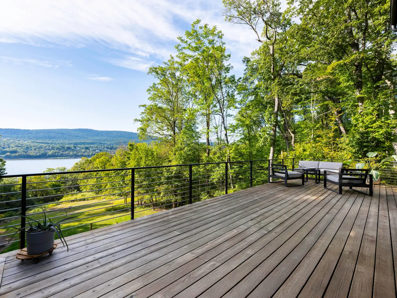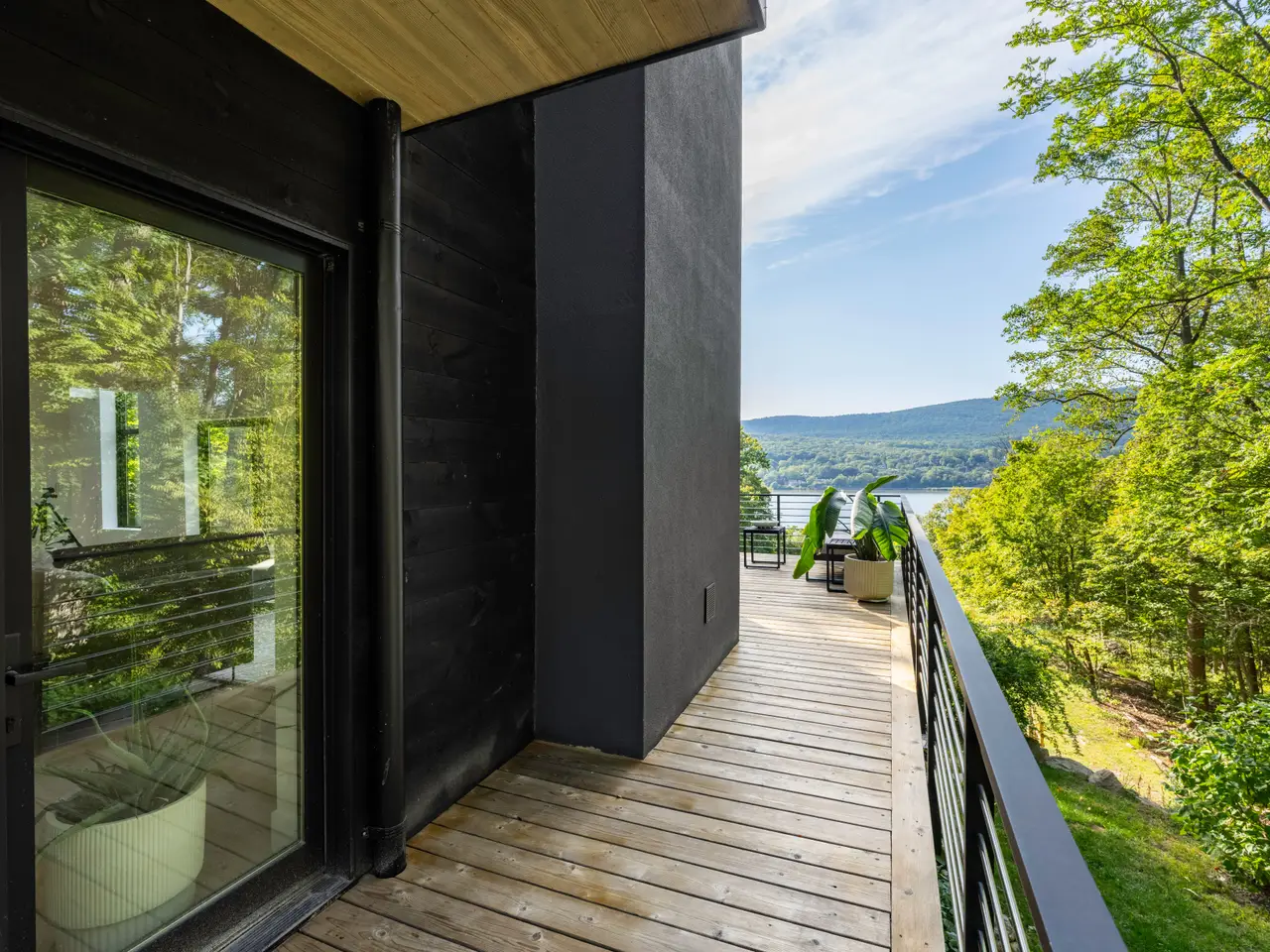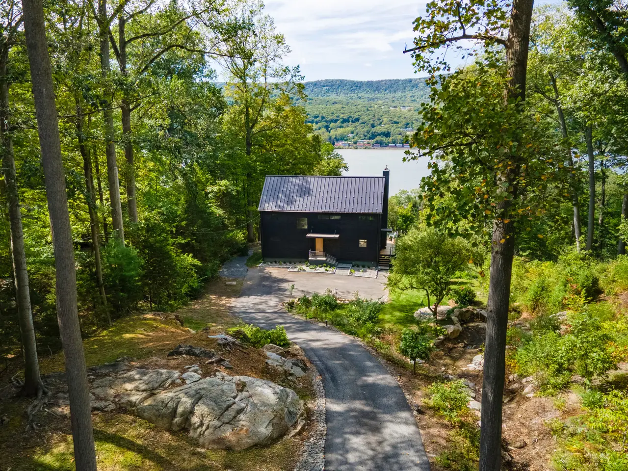 Welcome to this Hudson River view home that blends thoughtful design with exceptional quality. Scandinavian in inspiration, it balances form, function, and understated elegance. Warm natural finishes, and expansive glass walls create a residence that is both practical and beautiful.The open kitchen, dining, and living area are all oriented toward the river. Douglas fir custom cabinetry, ash wood floors, and a floating concrete fireplace underscore the simplicity and strength of the design.Upstairs, the primary suite includes a private dressing area, while two additional bedrooms all share the river view. A striking floating staircase connects all three levels, always keeping the Hudson River in view.The full-length deck extends the living space outdoors, while the lower level opens to a screened three-season porch. Terraced gardens with flowers and fruit trees shape the landscape, with ample room for a pool if desired.Just 70 minutes by train along the Hudson River, this home offers flexibility as a full-time residence or a weekend retreat close to hiking, dining, and the historic Village of Cold Spring.